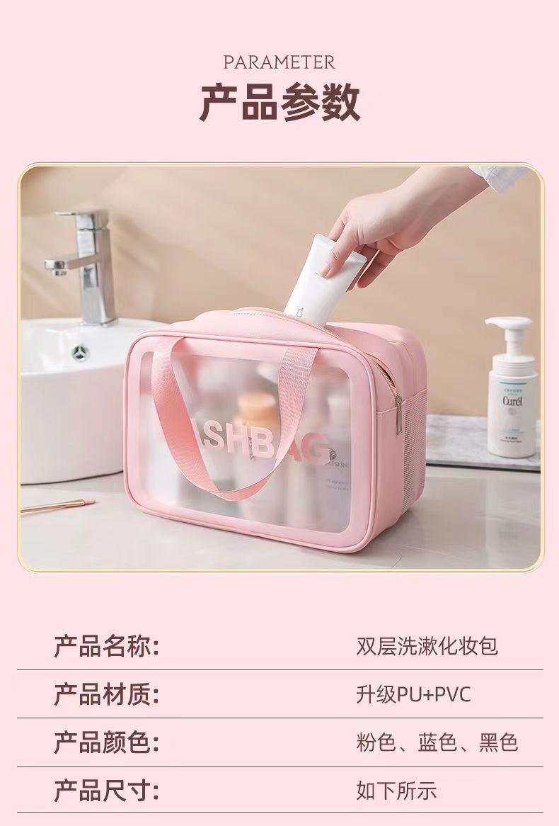 双层化妆包防水磨砂干湿分离大容量洗漱包韩式pu护肤品收纳包