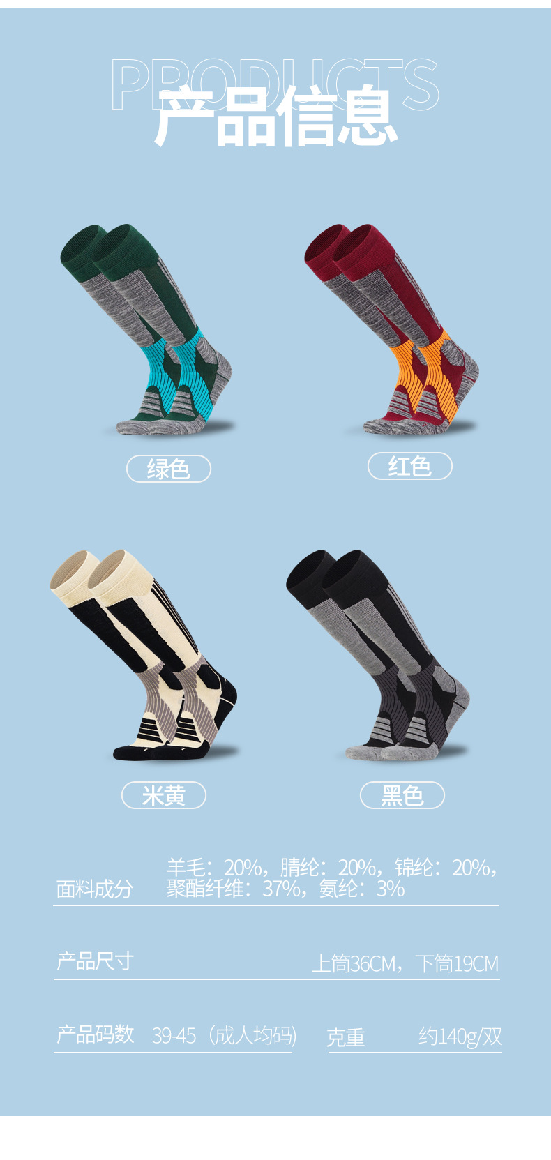 2023美利奴羊毛袜跨境保暖登山袜防滑减震运动袜加厚毛圈滑雪袜子