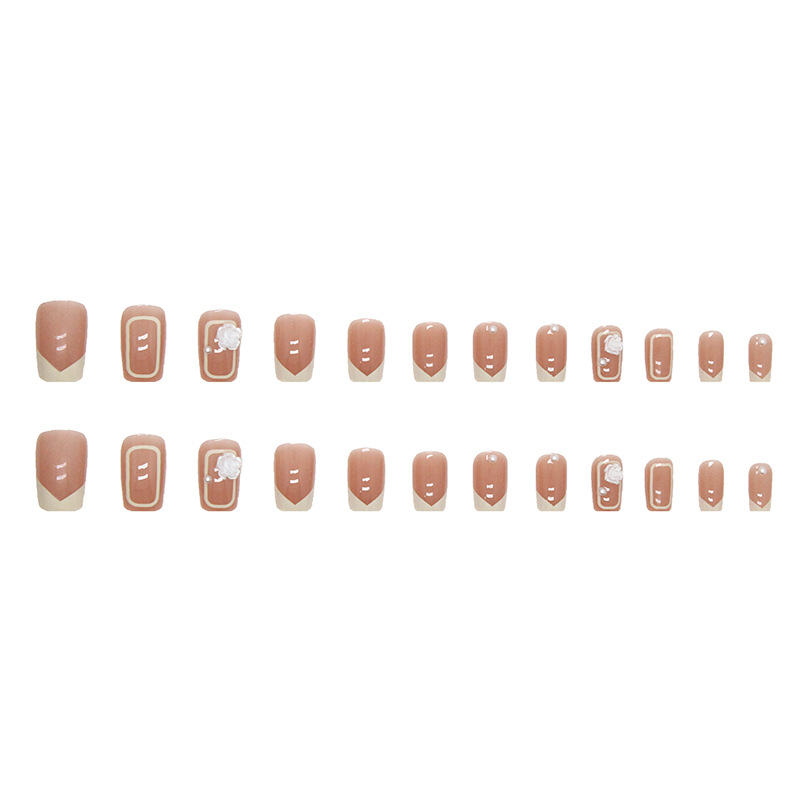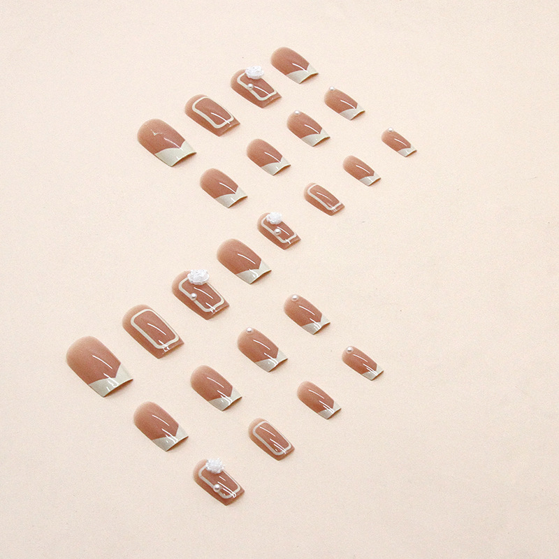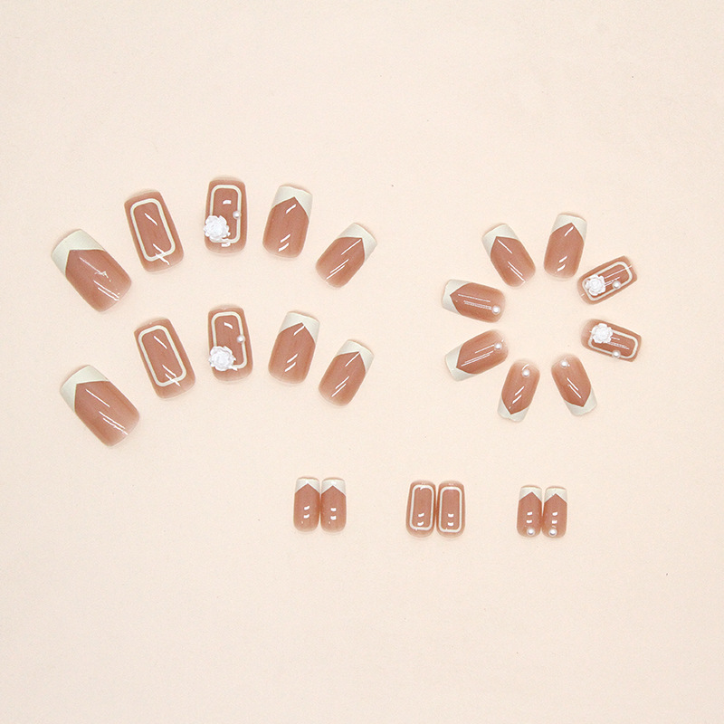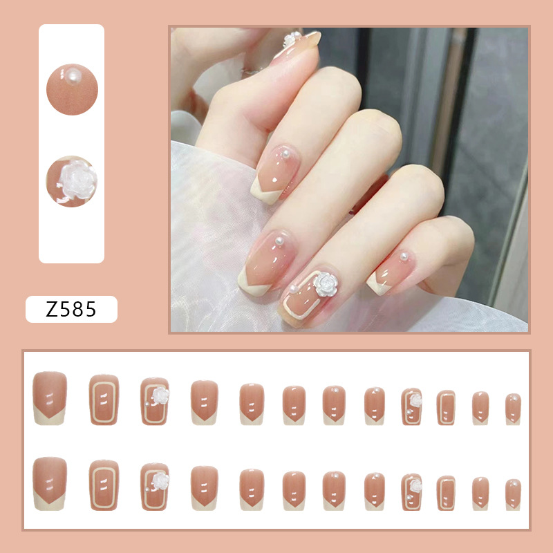 简约纯欲ins风法式珍珠山茶花美甲温柔甜美裸色系假指甲批发