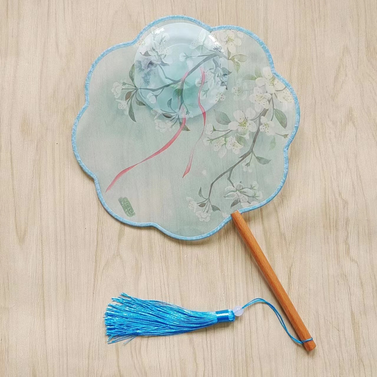 手工扇子半透明印花团扇中国风古风扇子汉服唐装道具扇子
