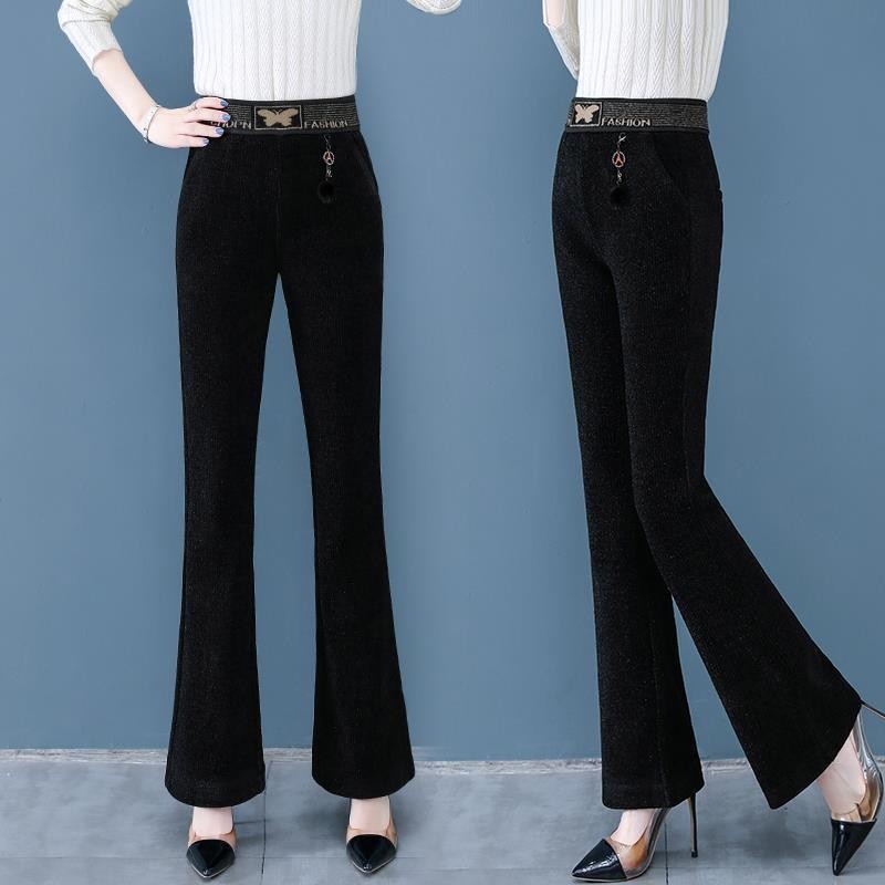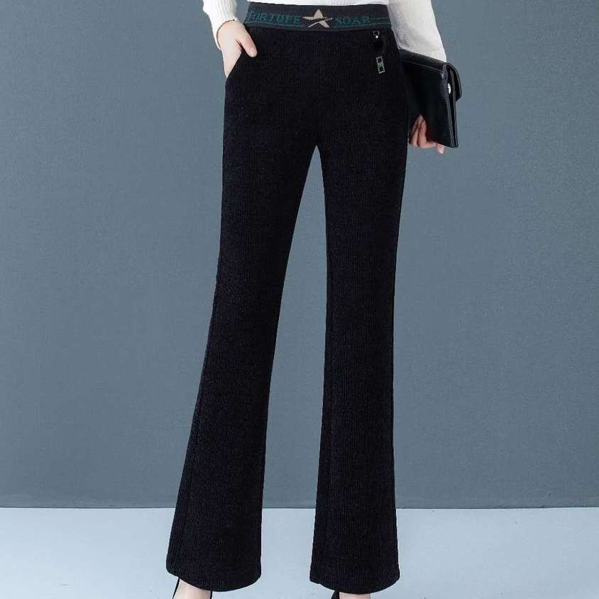 水貂绒微喇裤加厚垂坠感女2023秋冬新款高腰黑色显瘦保暖大脚长裤