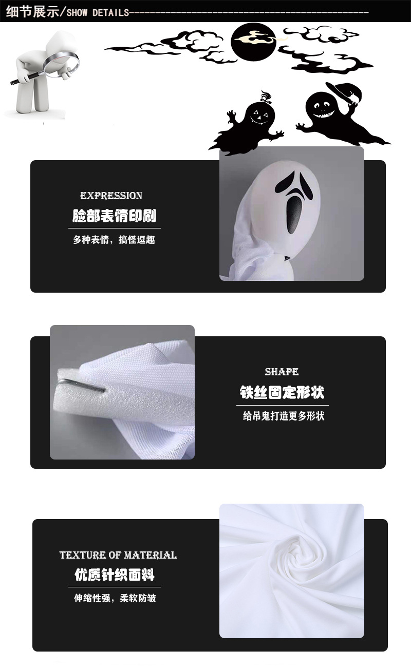 万圣节发光白色幽灵吊鬼恐怖装饰门挂鬼屋密室逃脱场景布置道具