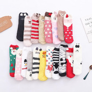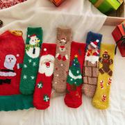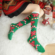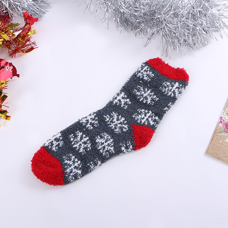 圣诞袜珊瑚绒地板袜半边绒圣诞袜毛巾袜