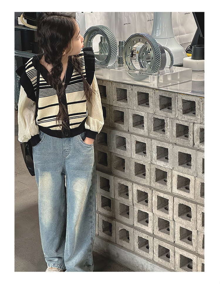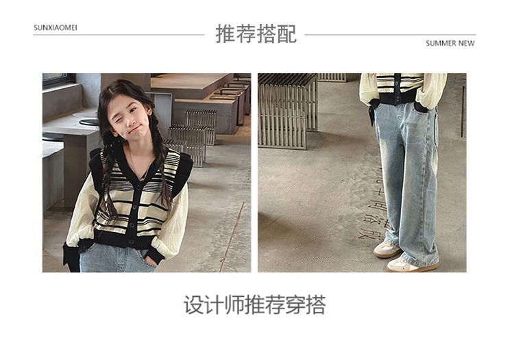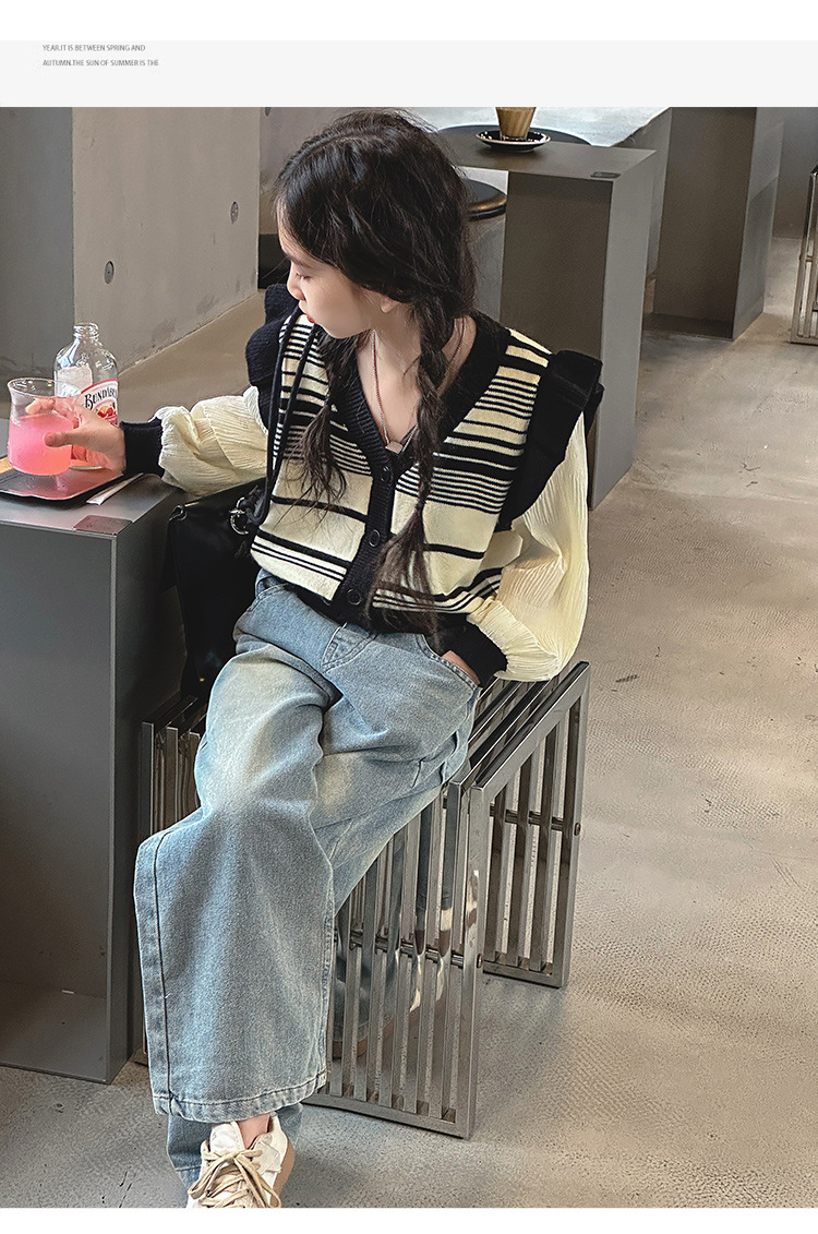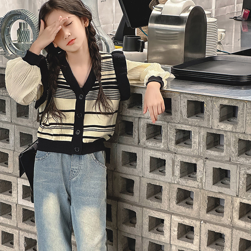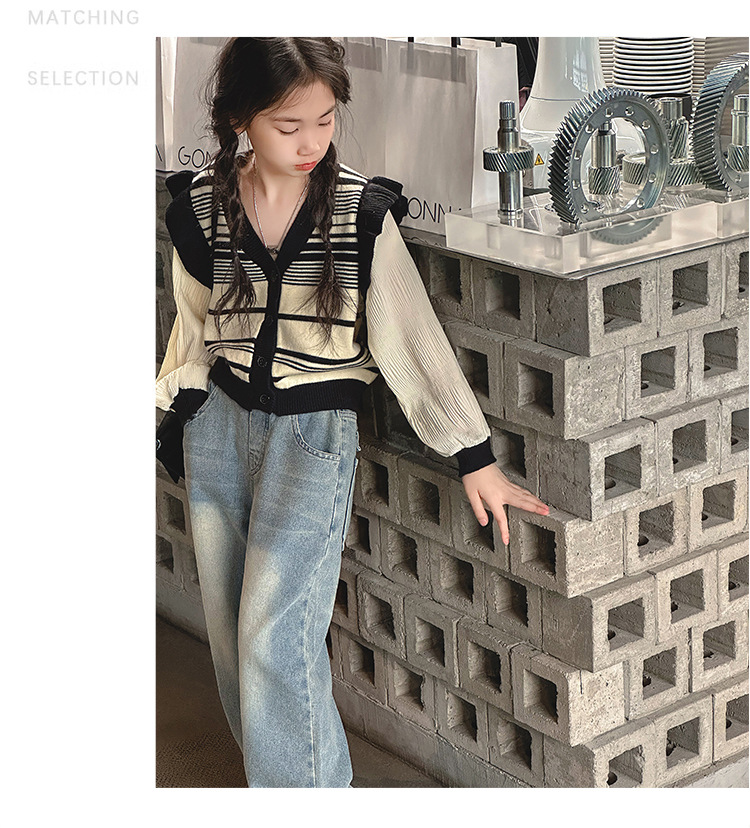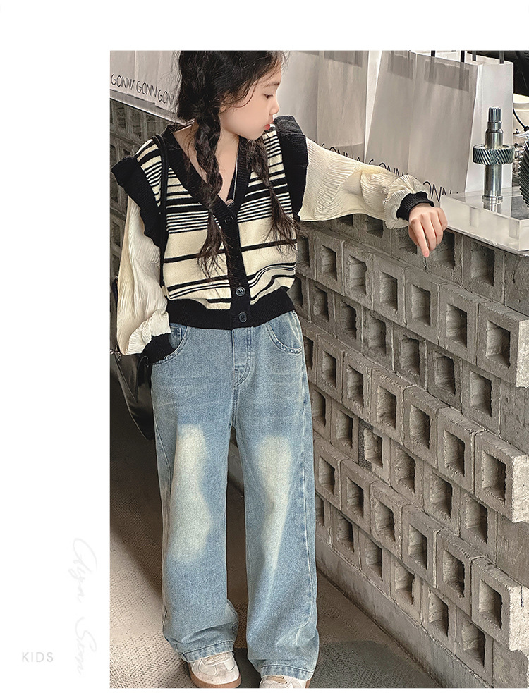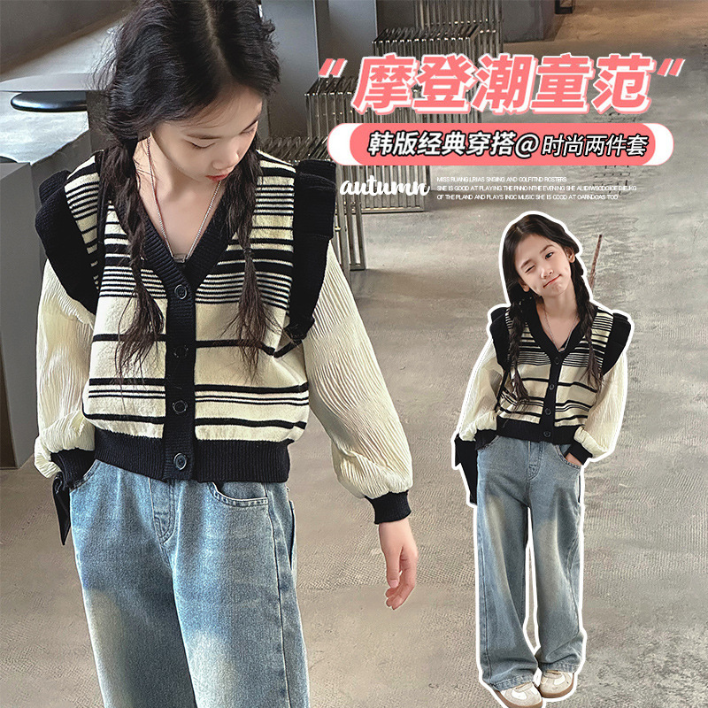 女童套装秋款新款2023儿童韩版针织衫外套休闲百搭女童牛仔裤洋气
