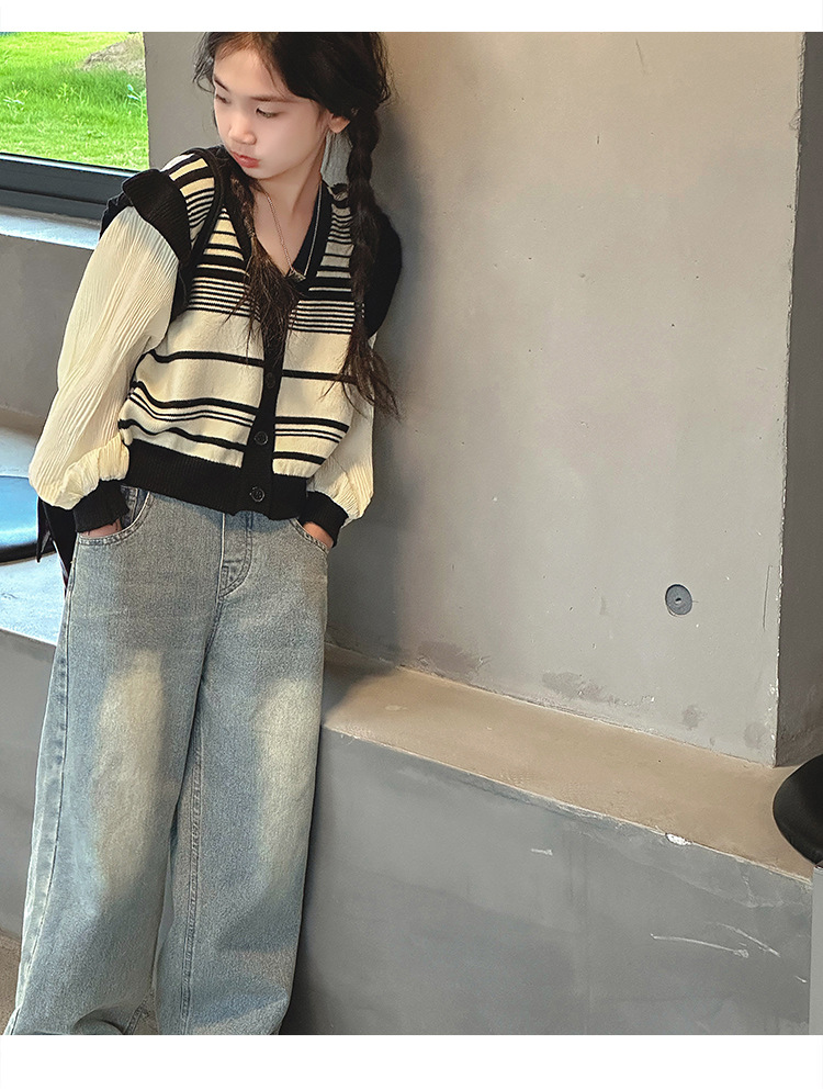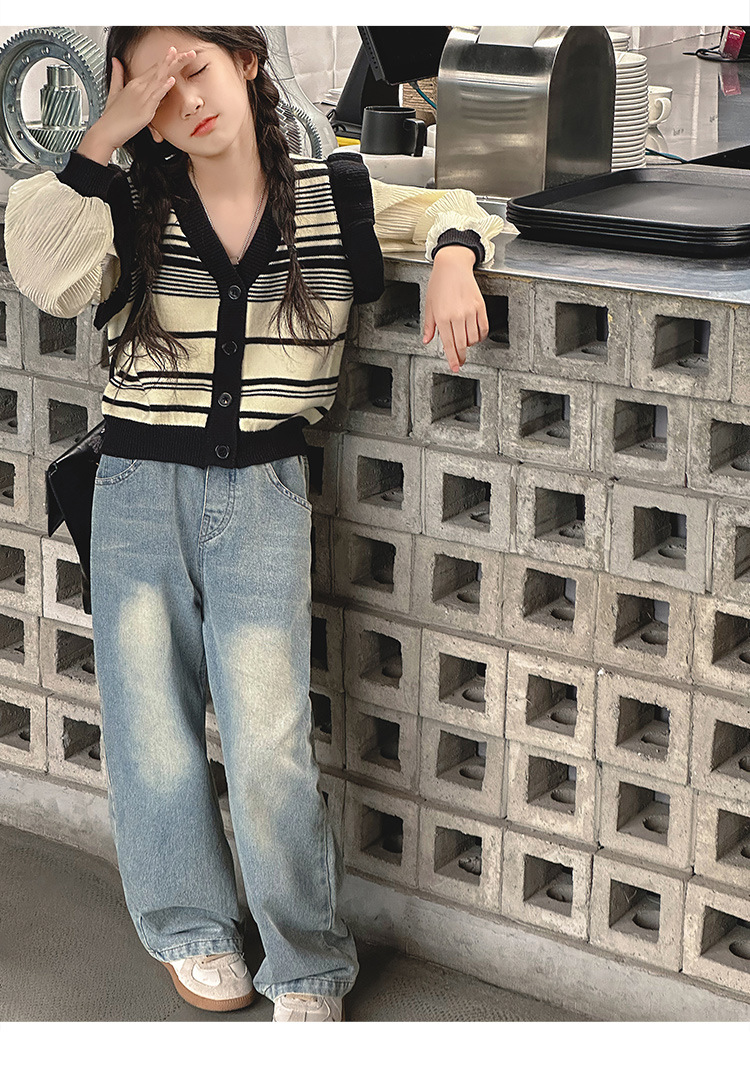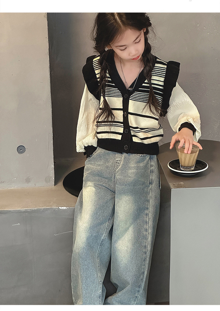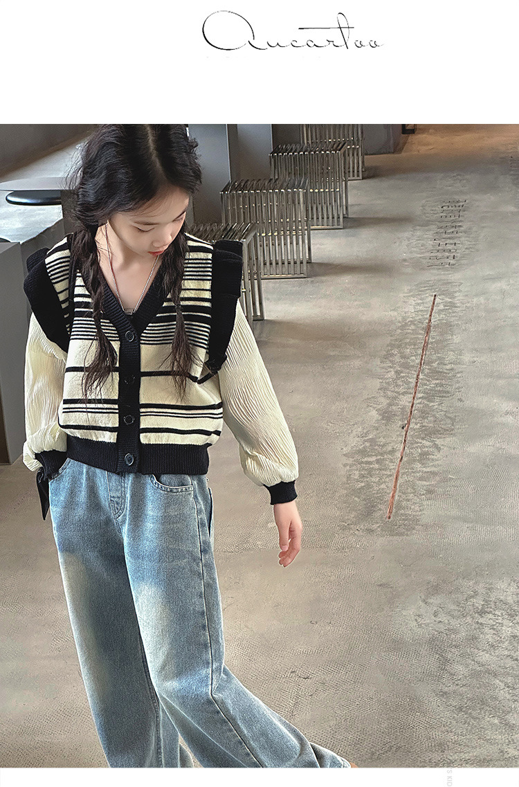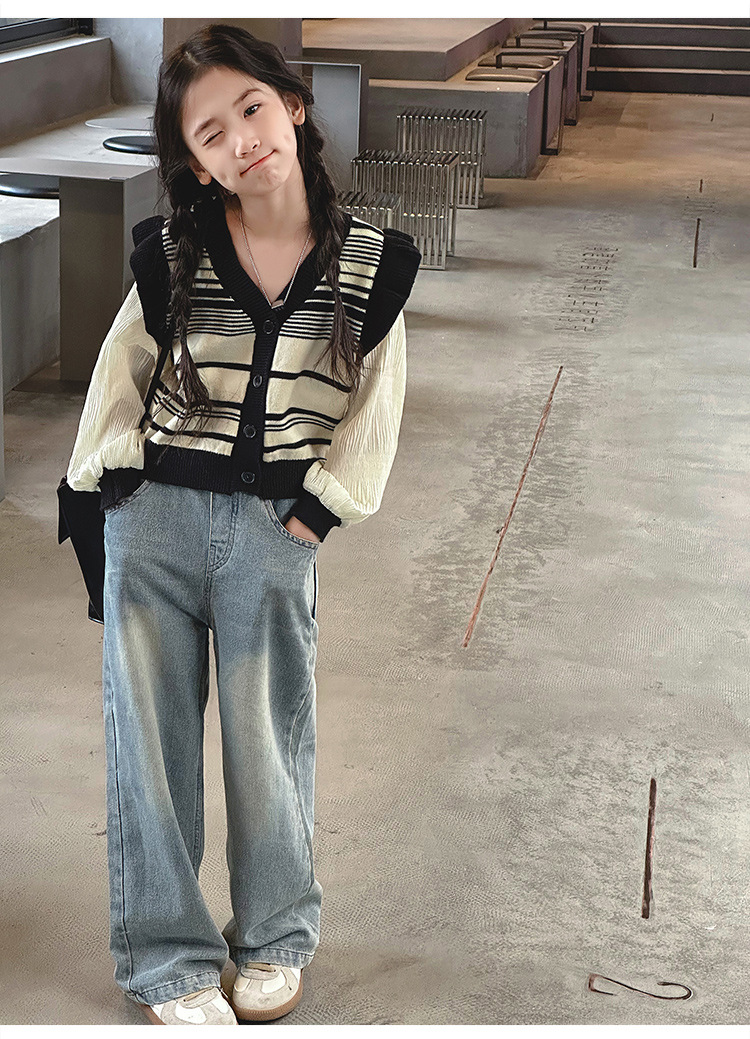 女童套装秋款新款2023儿童韩版针织衫外套休闲百搭女童牛仔裤洋气