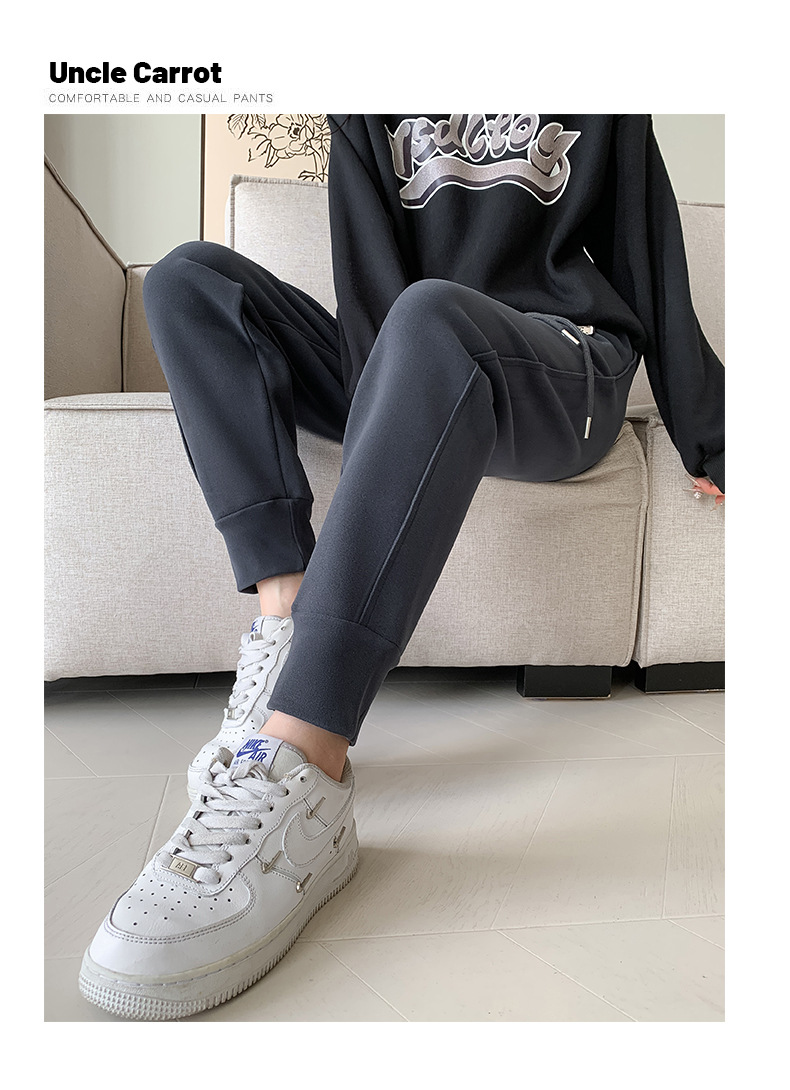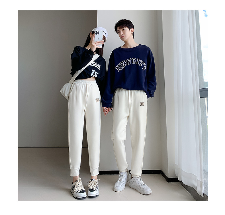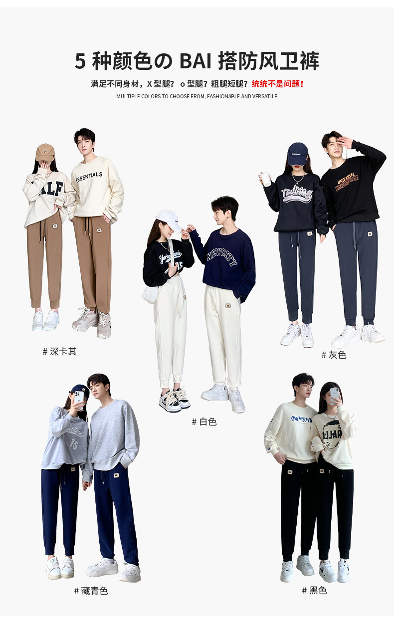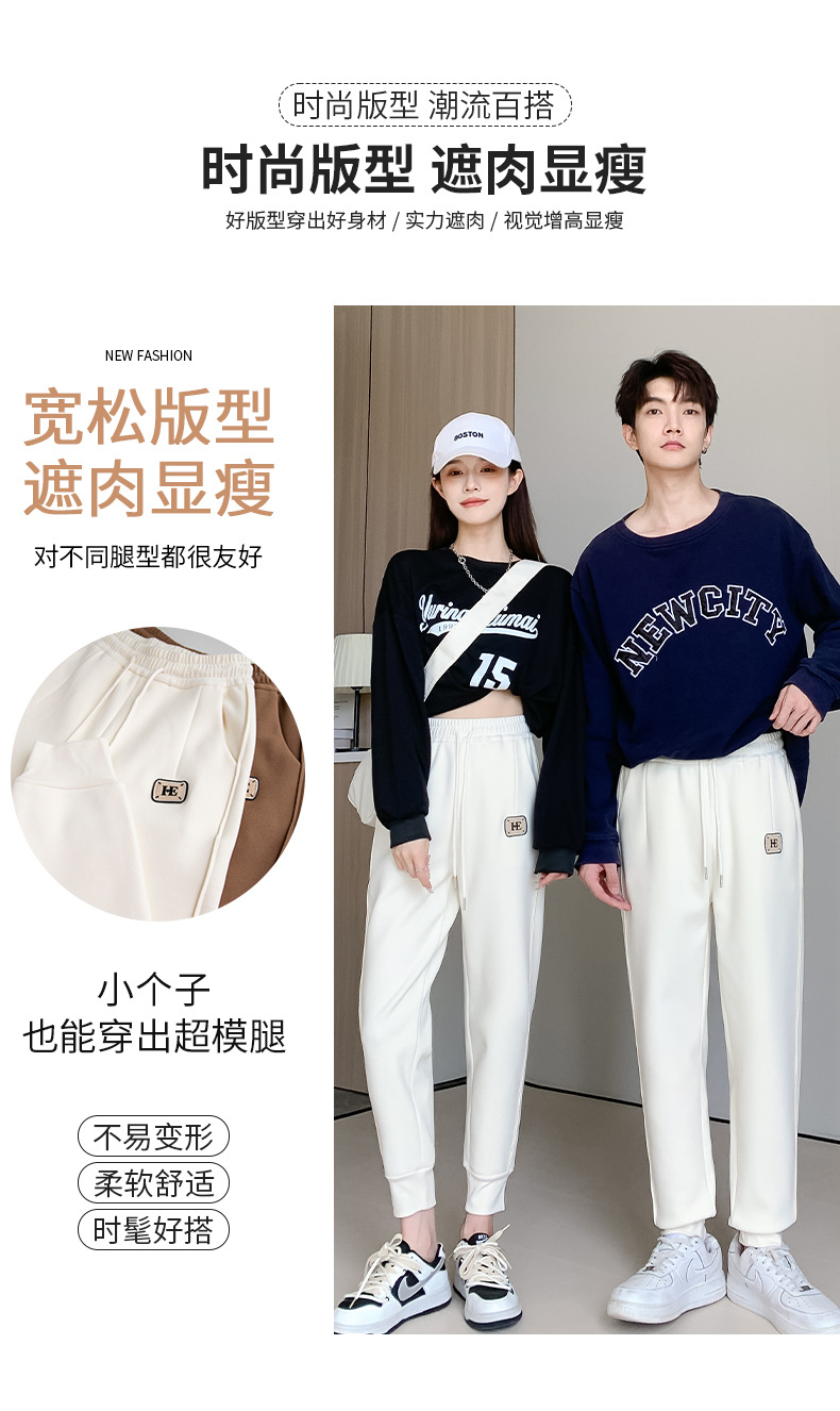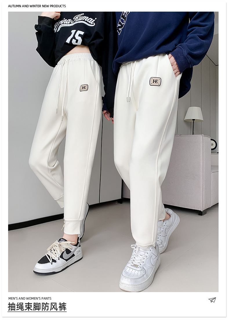 防风裤男女同款秋季新款卫裤高腰丝绒束脚休闲运动显瘦宽松哈伦裤