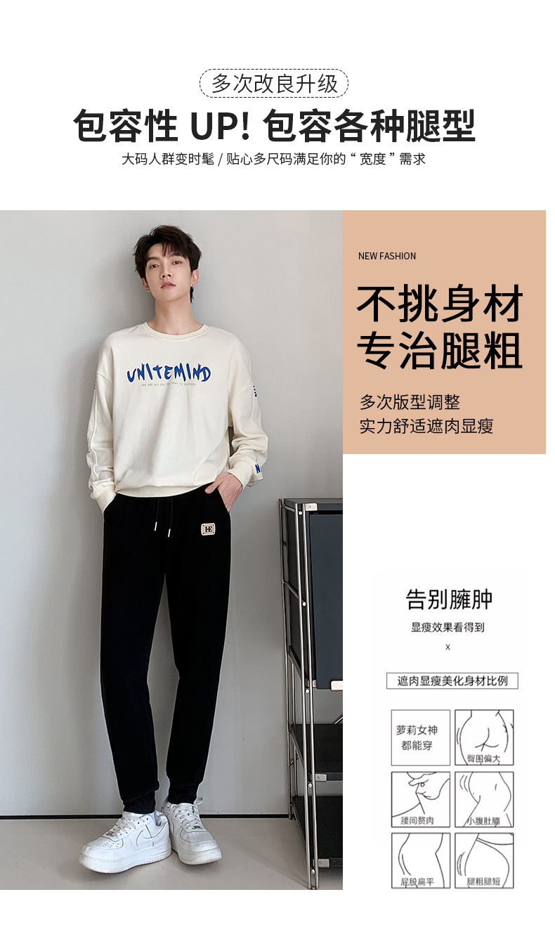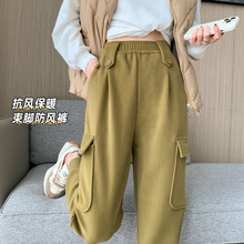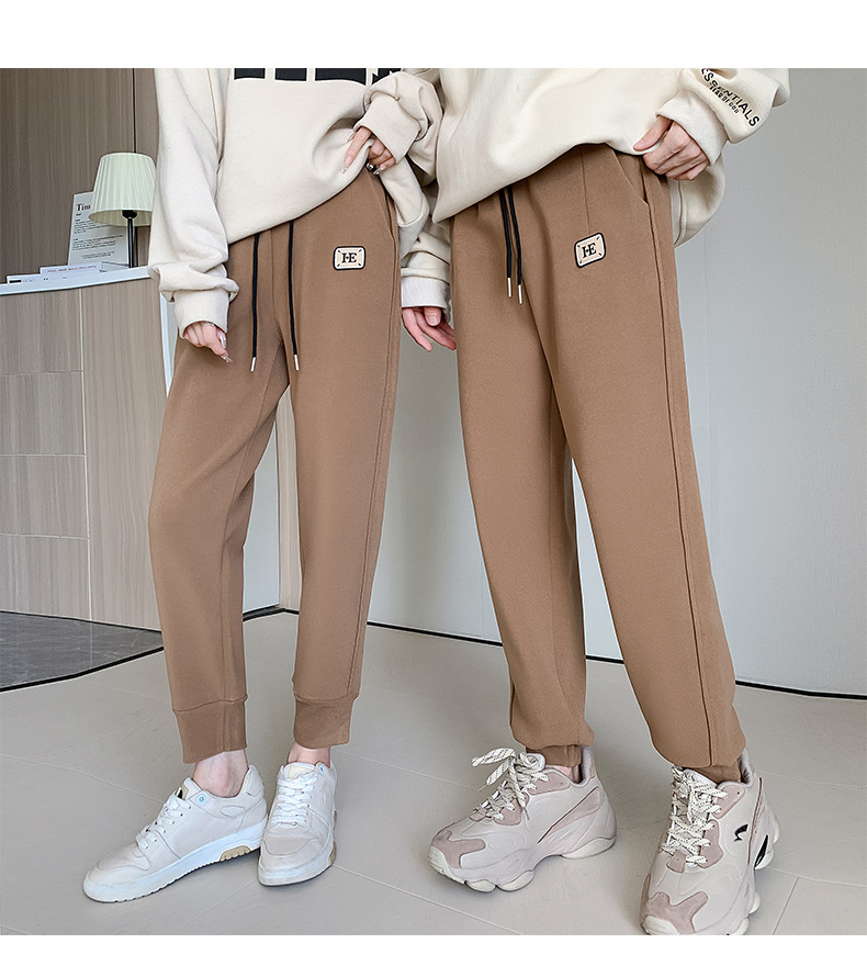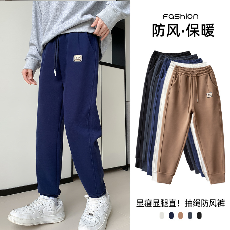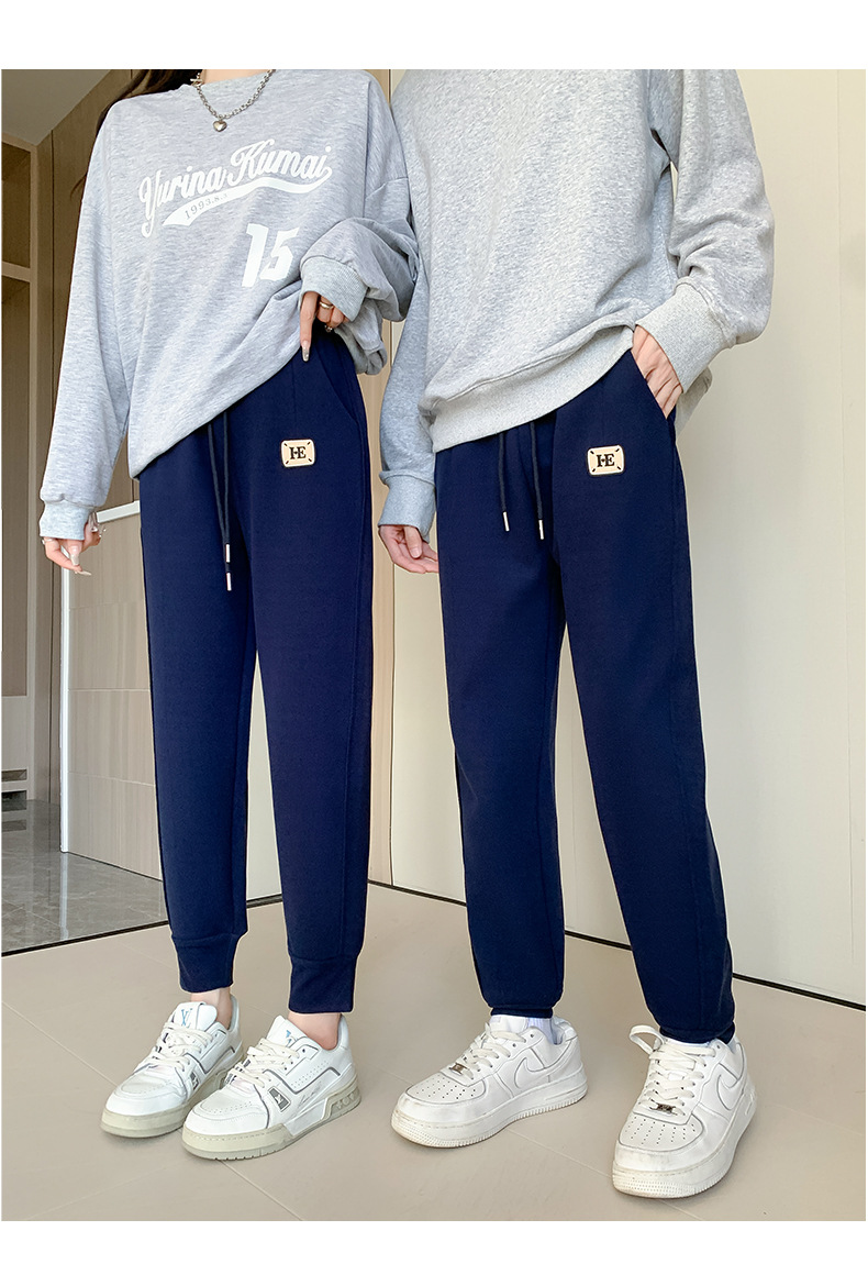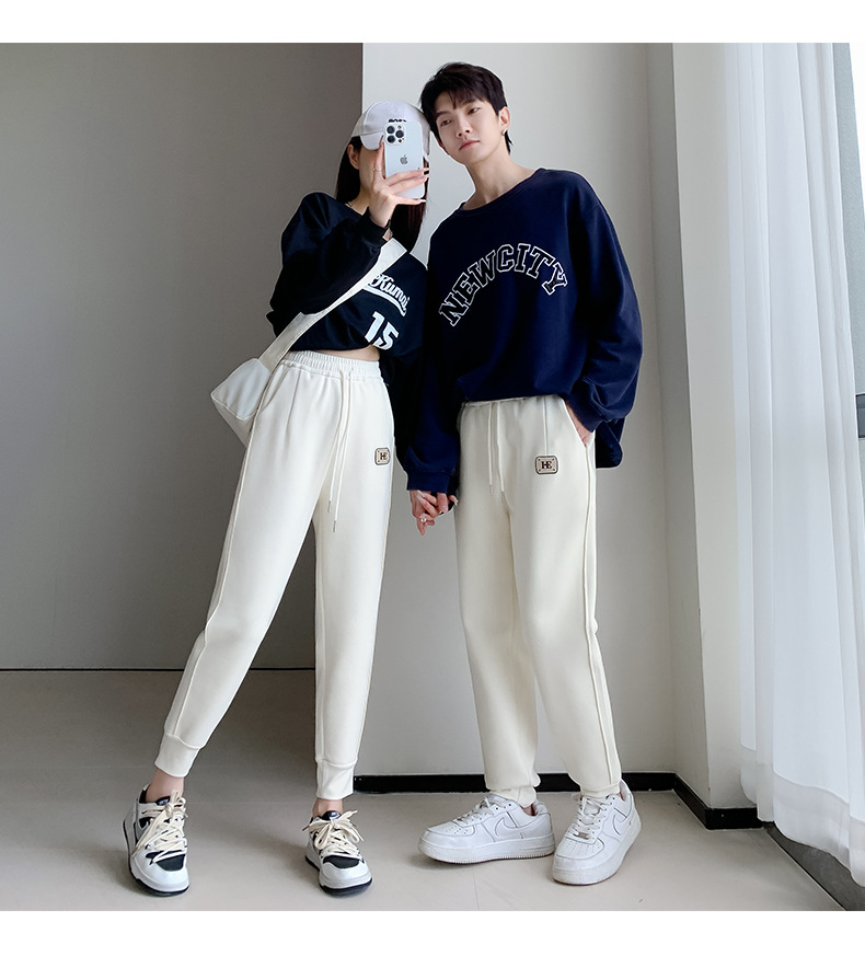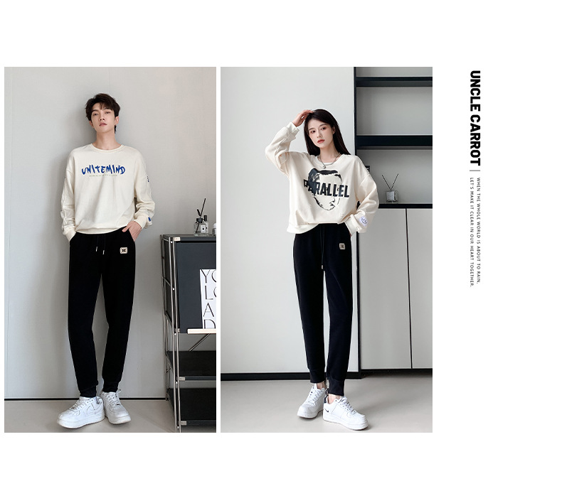 防风裤男女同款秋季新款卫裤高腰丝绒束脚休闲运动显瘦宽松哈伦裤