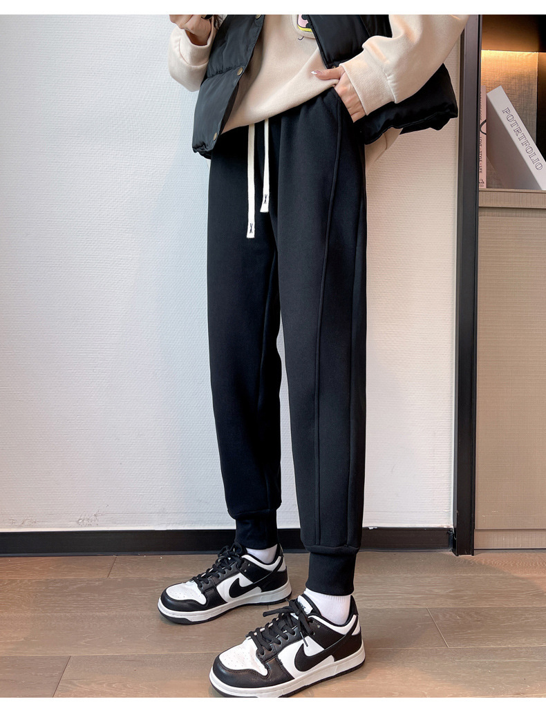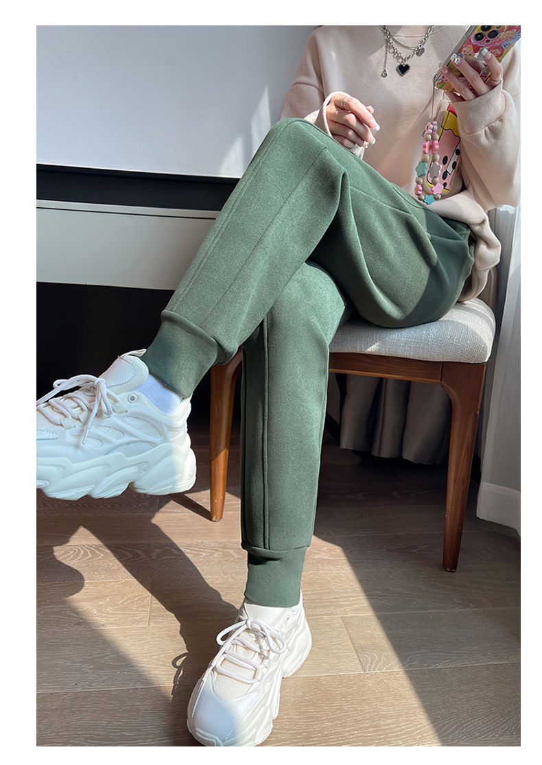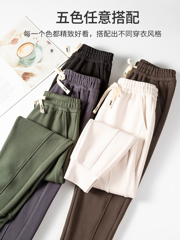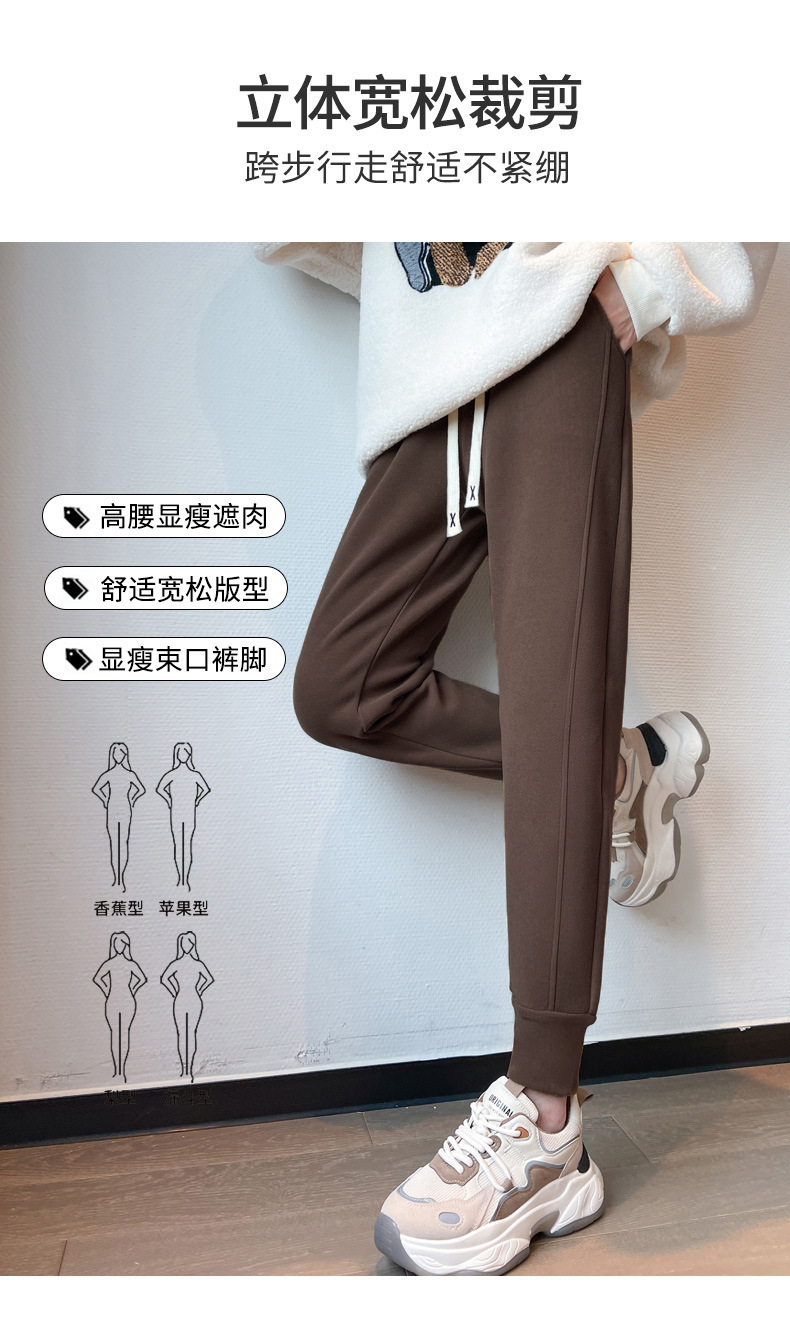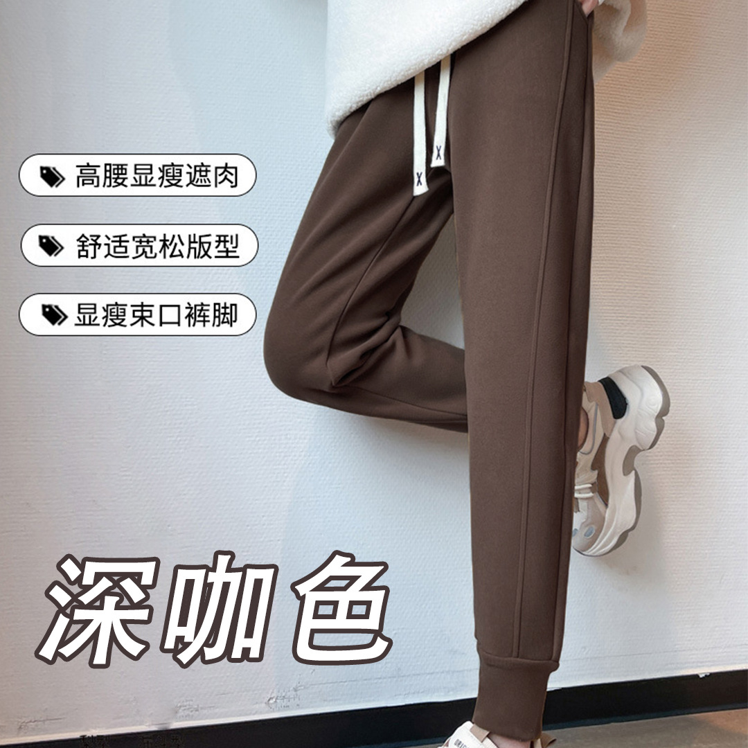 2023小个子运动裤女加绒防风裤束脚裤打底长裤休闲裤德绒卫裤女