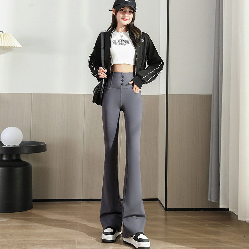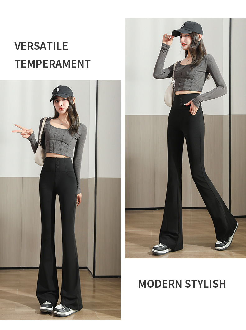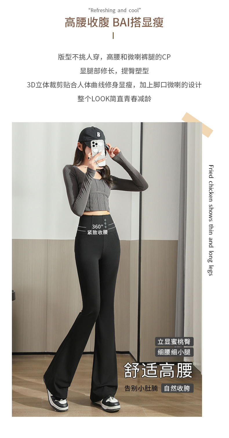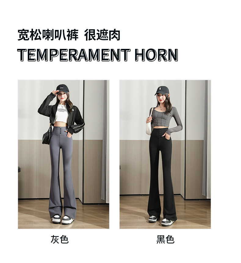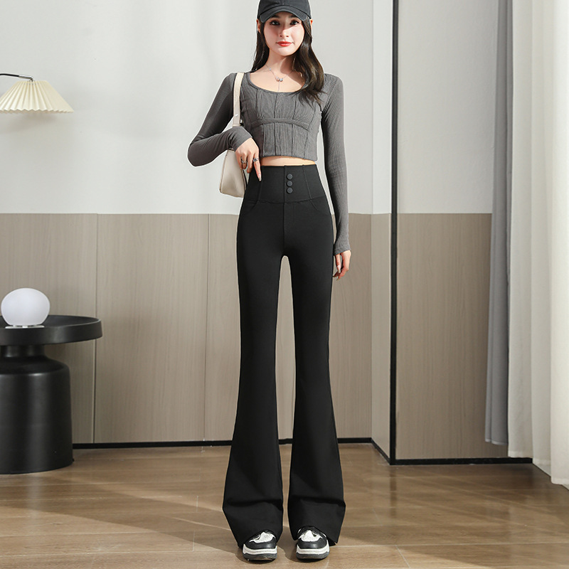 黑色微喇裤女高腰裤子加绒鲨鱼裤长裤拖地裤垂感宽松时尚春秋喇叭