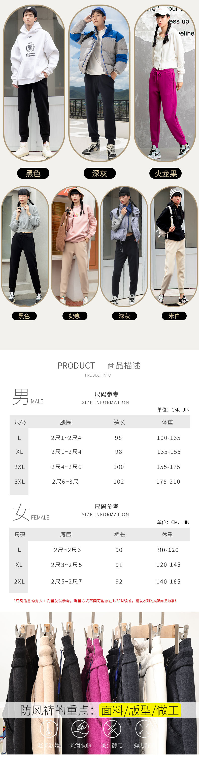 九级纳米防风裤女长款休闲裤双面磨绒防水工装卫裤束脚运动裤子男