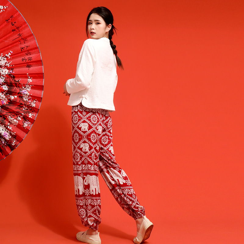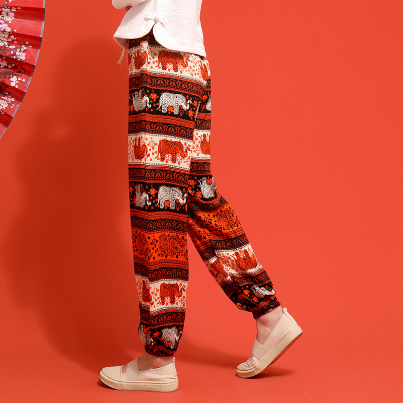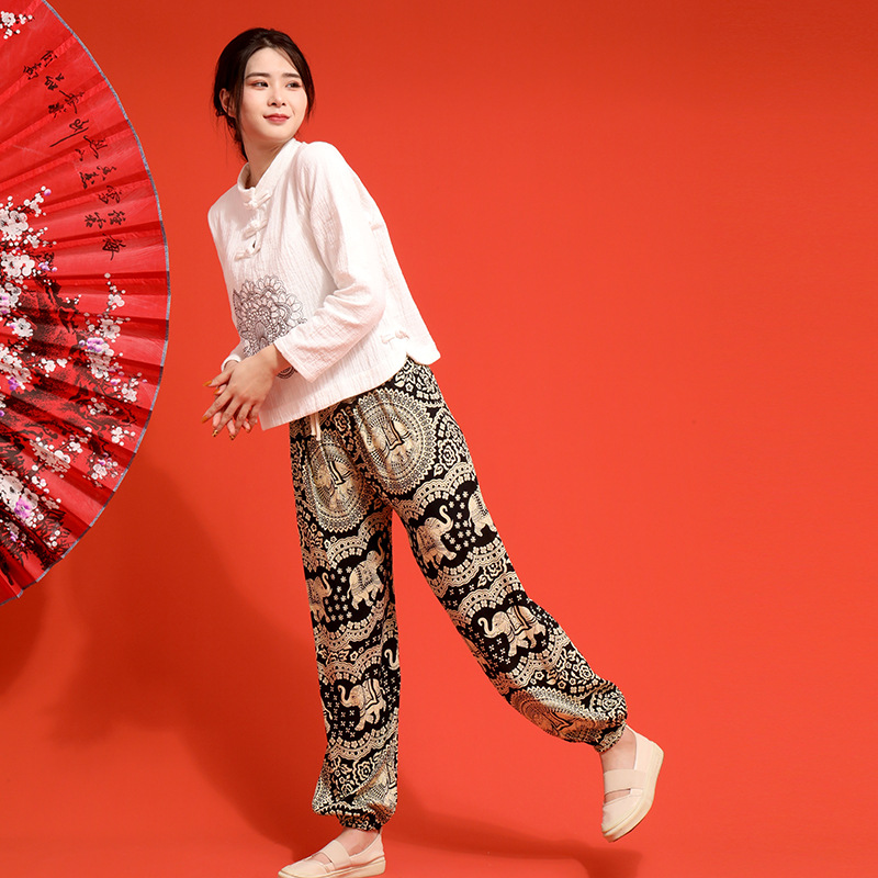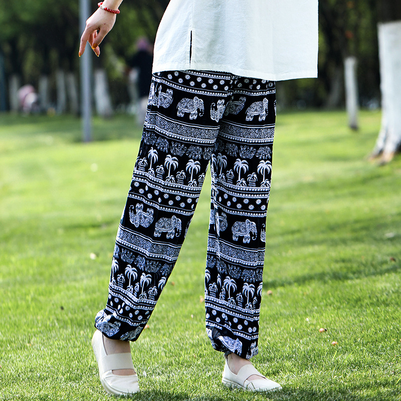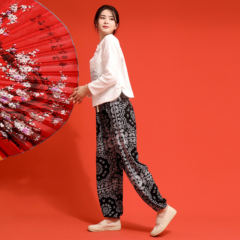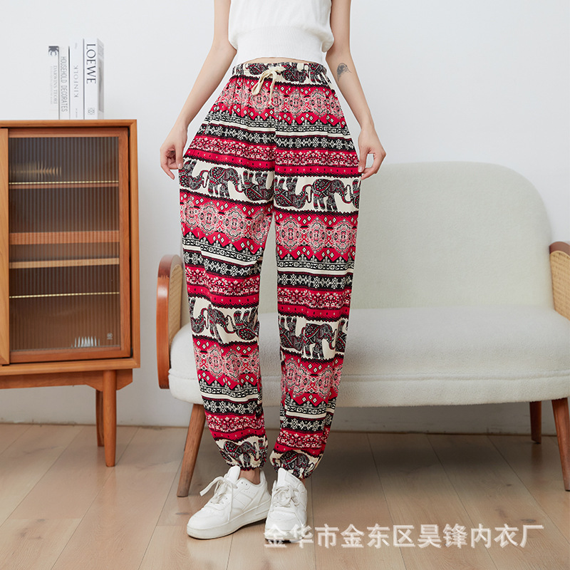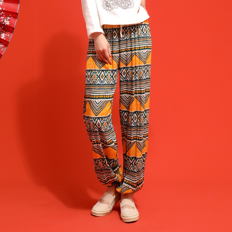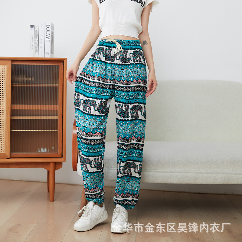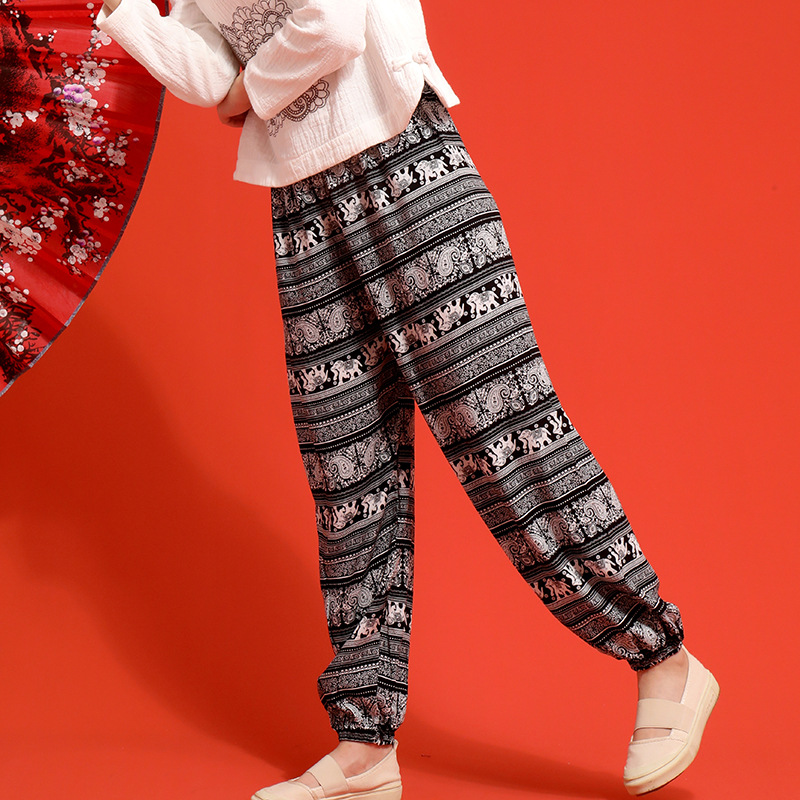花漫舞爆款绵绸裤女民族风棉绸裤人造棉绸灯笼裤加肥加大家居代发