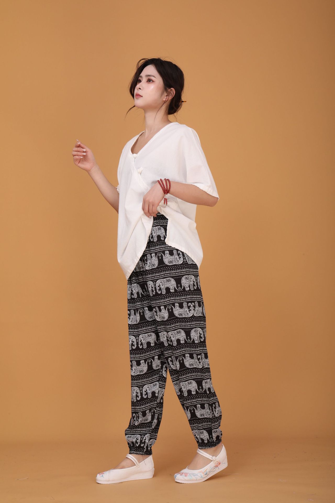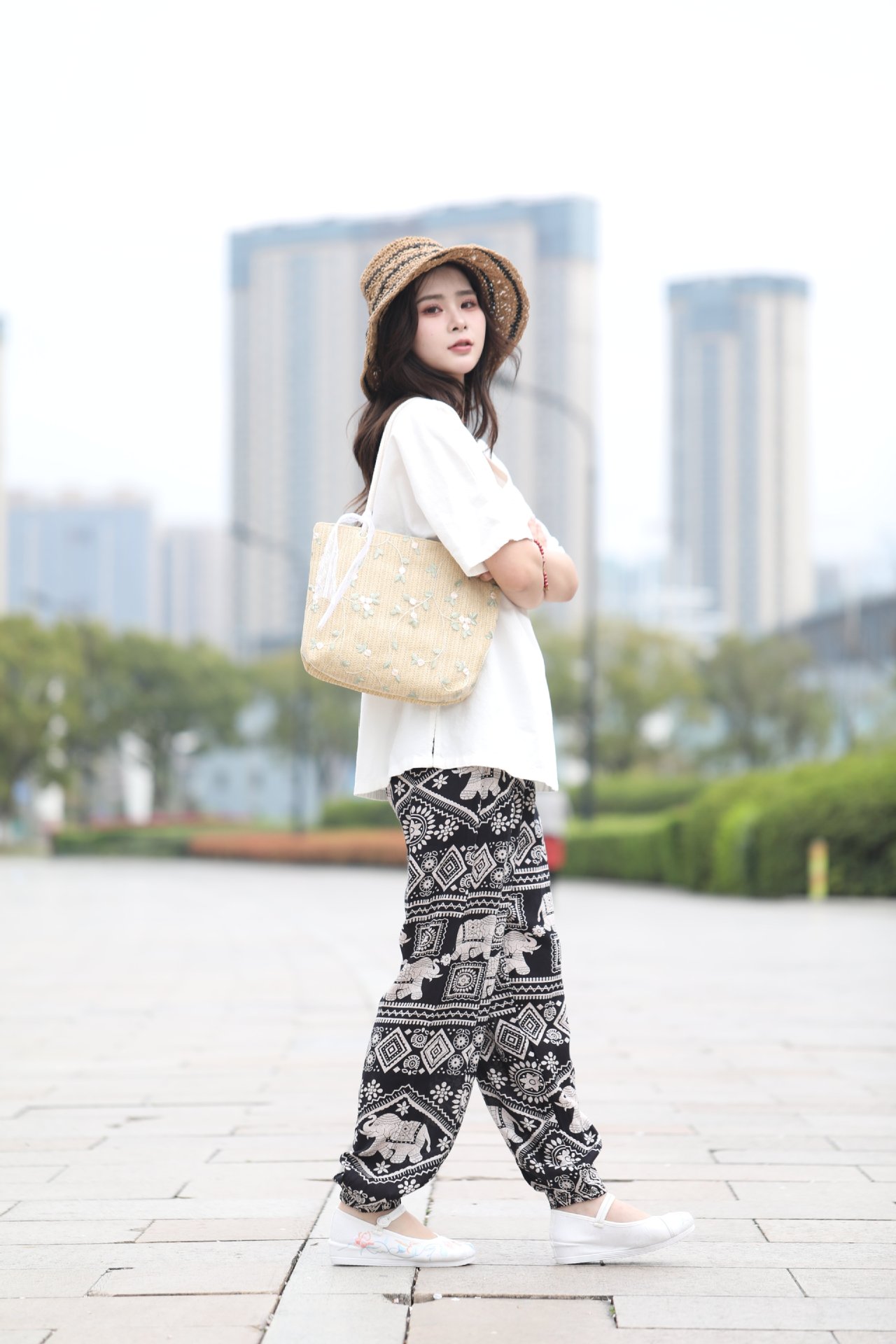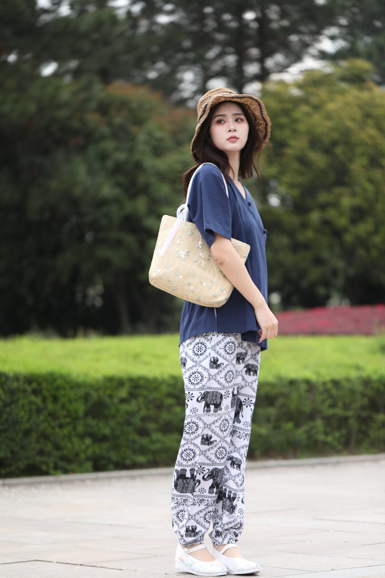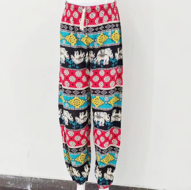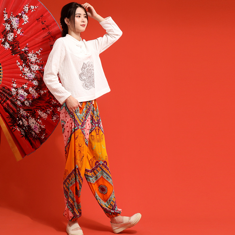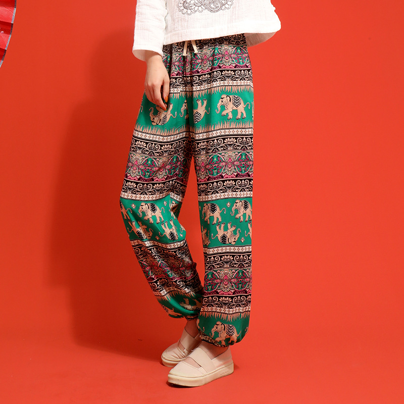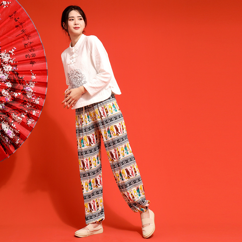 花漫舞爆款绵绸裤女民族风棉绸裤人造棉绸灯笼裤加肥加大家居代发