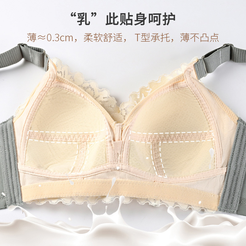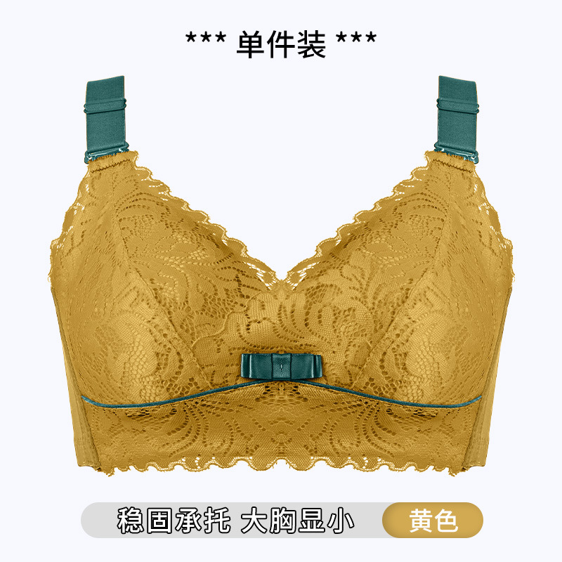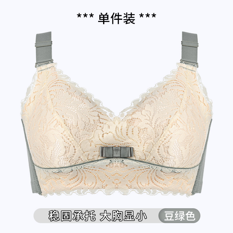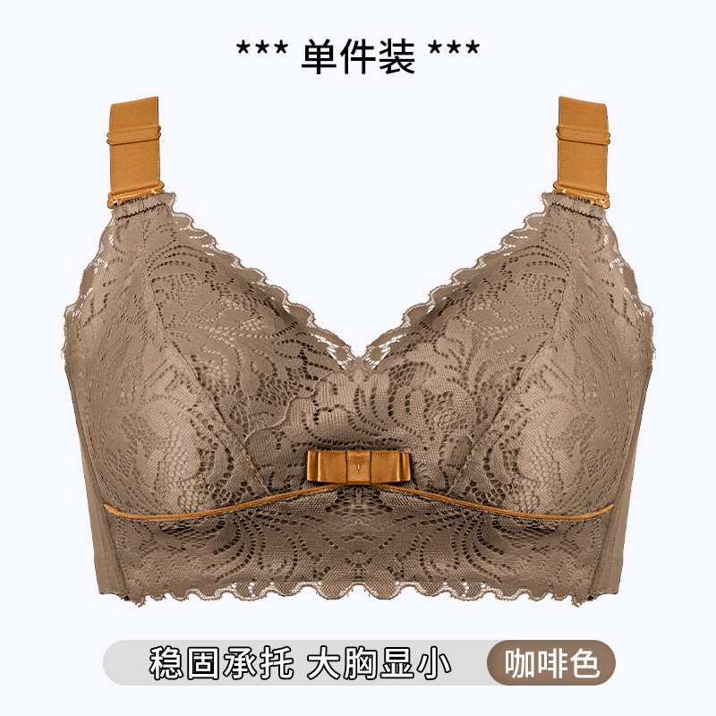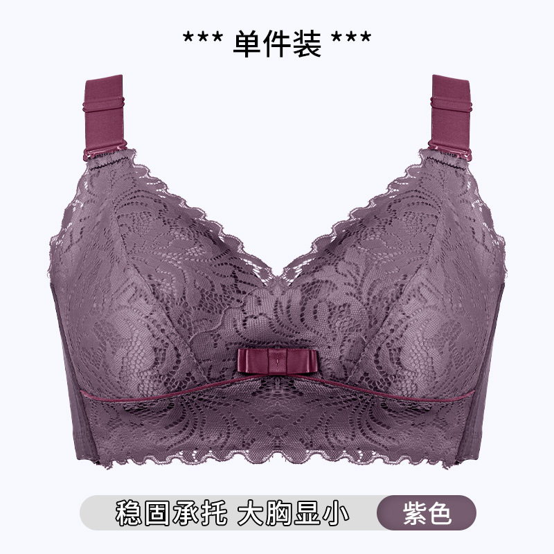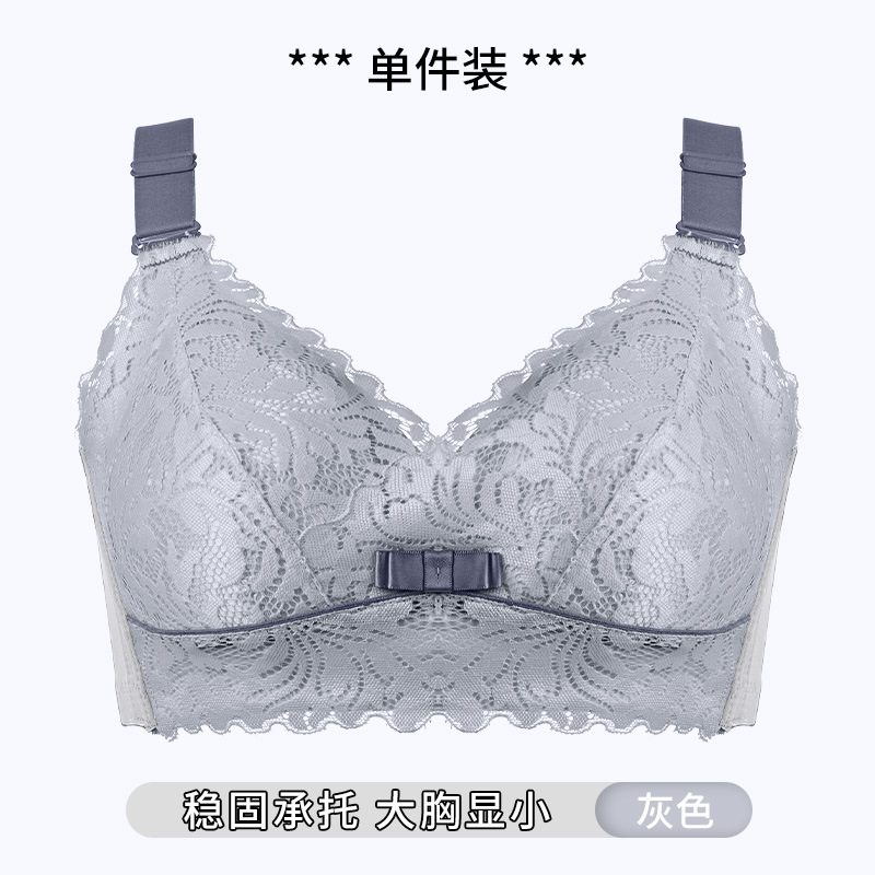 大胸显小文胸无钢圈聚拢防下垂全罩杯收副乳200斤大码内衣女薄款D