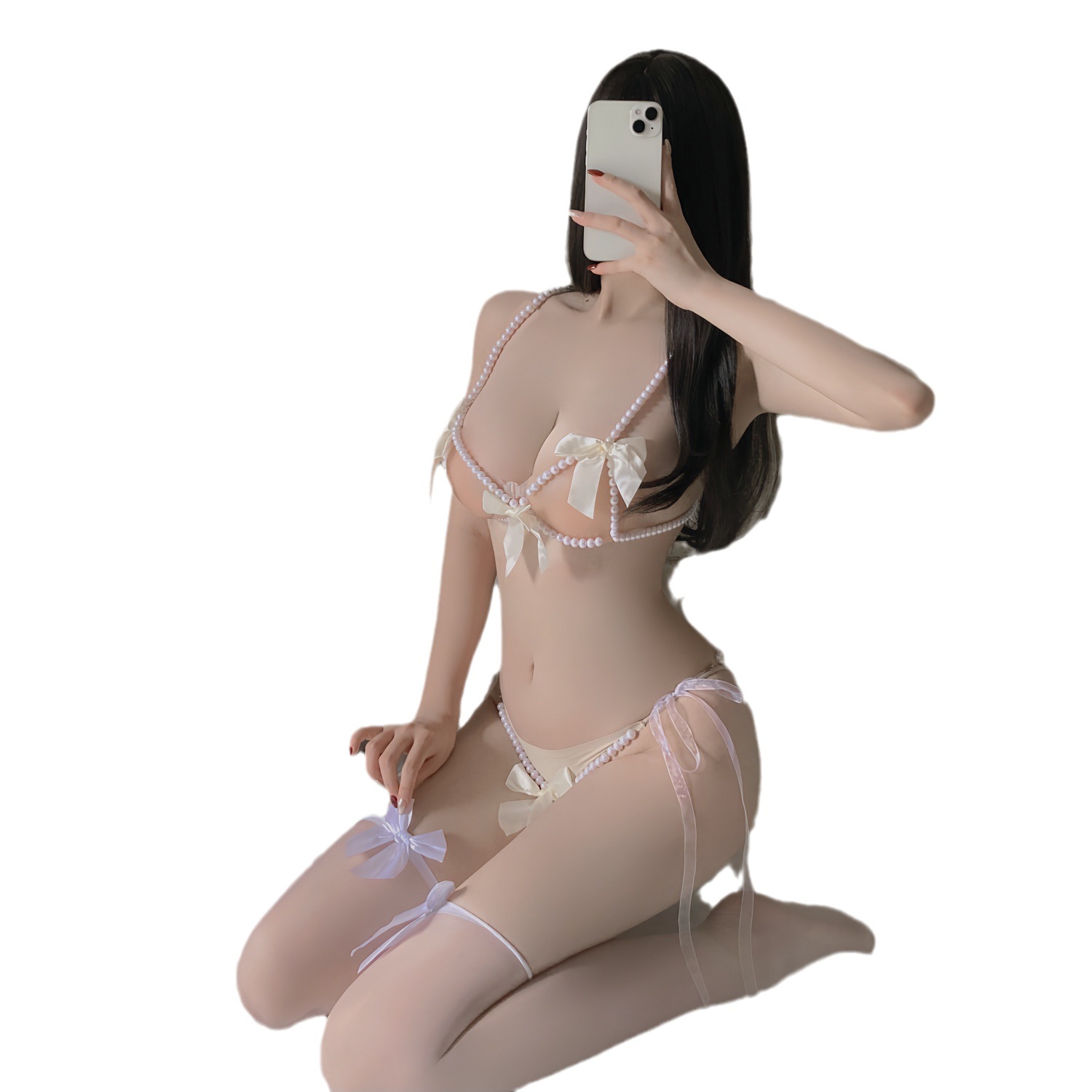 初蕊尔情趣内衣性感三点式诱惑漏乳开档激情床上免脱珍珠套装6153