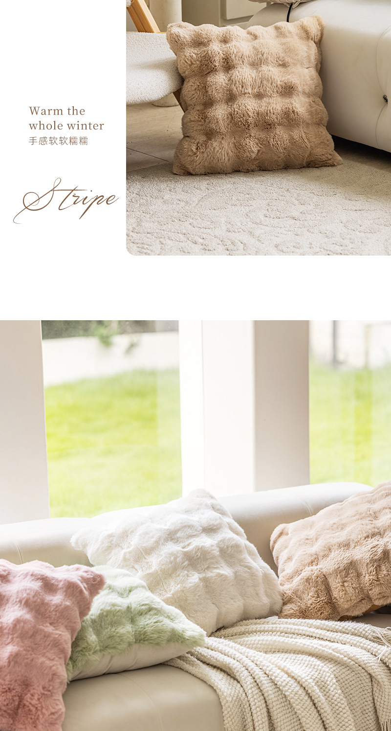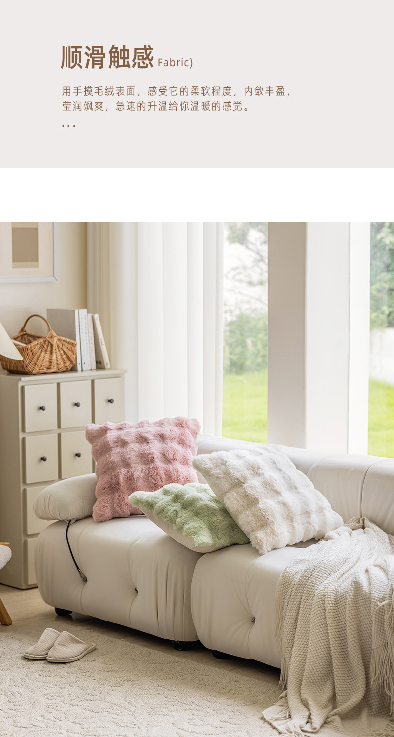 现代ins风网红皮草抱枕泡泡毛绒沙发卧室靠垫奶油北欧靠枕套批发