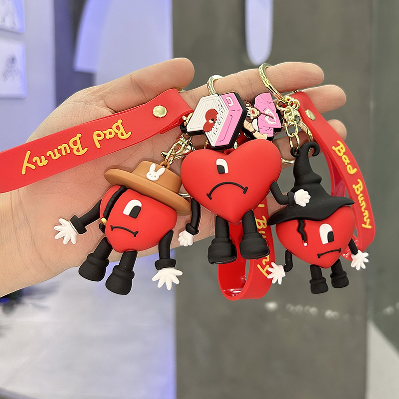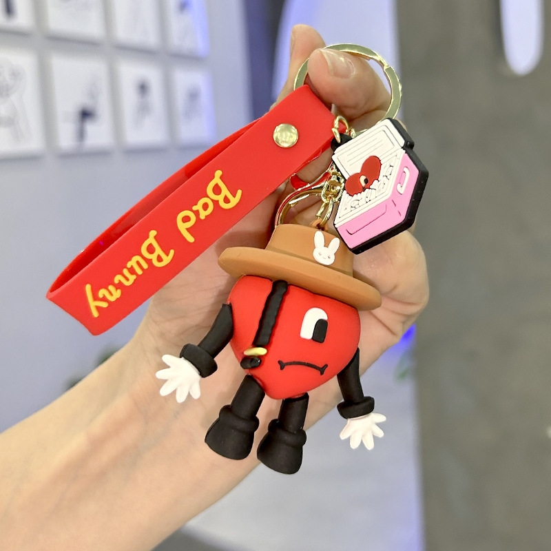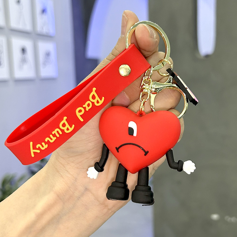 欧美bad bunny坏兔子钥匙扣可爱卡通爱心吊饰精美箱包diy配饰挂件