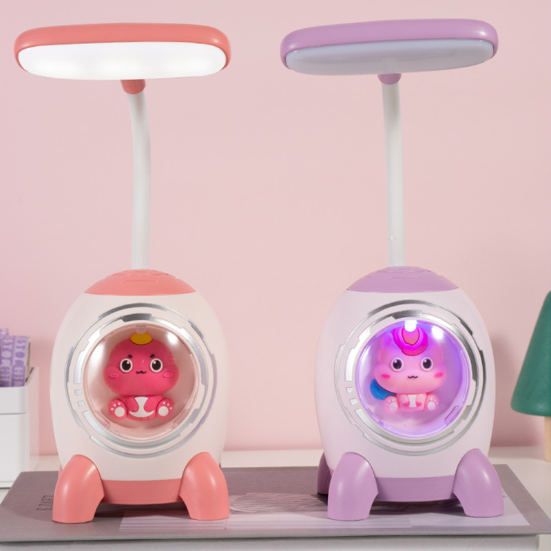 卡通太空火箭小台灯USB充电两档亮度儿童房护眼LED夜灯学习灯