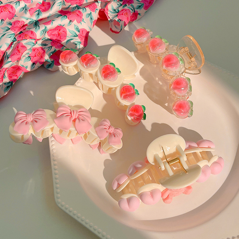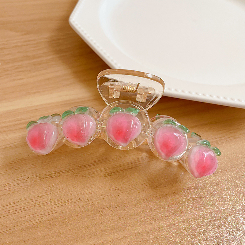 透明粉色水蜜桃抓夹春季新款软妹日系甜美发夹鲨鱼夹发饰