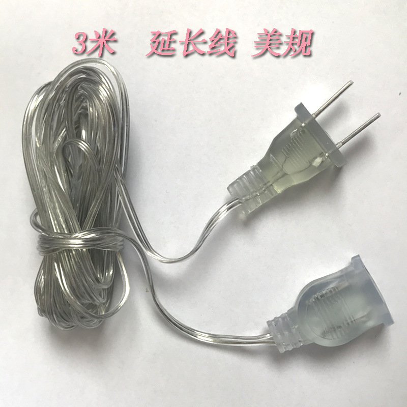 led彩灯带闪美规欧规3米5米插头延长线带开关挂窗帘灯串加长配件