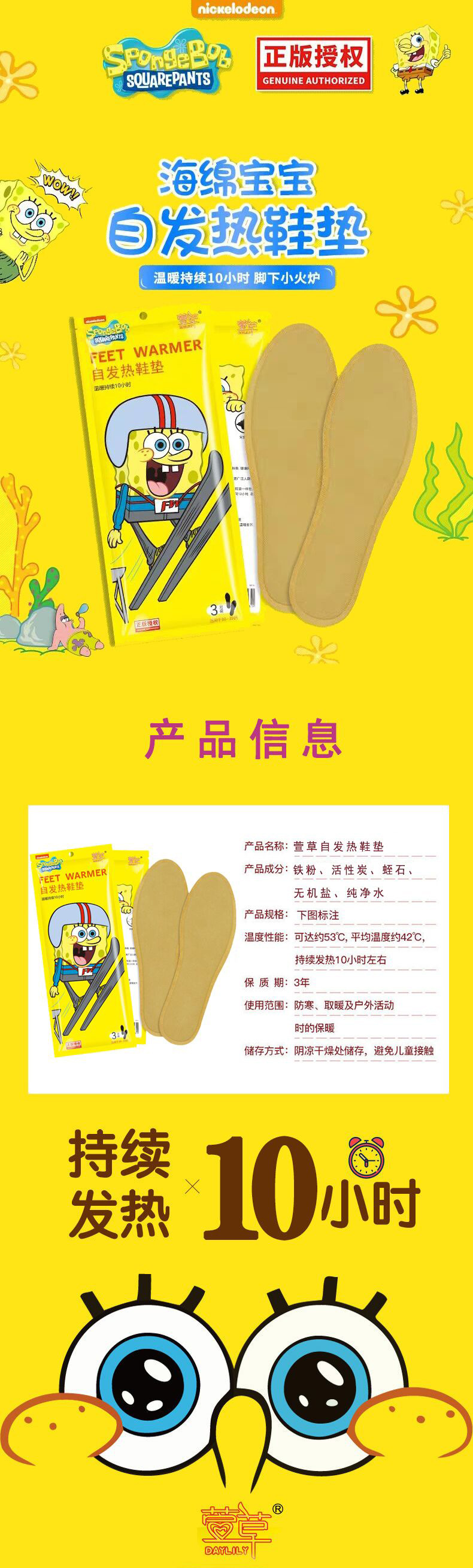 萱草发热鞋垫暖脚宝30-43码男女暖足贴一次性取暖10小时加热鞋垫