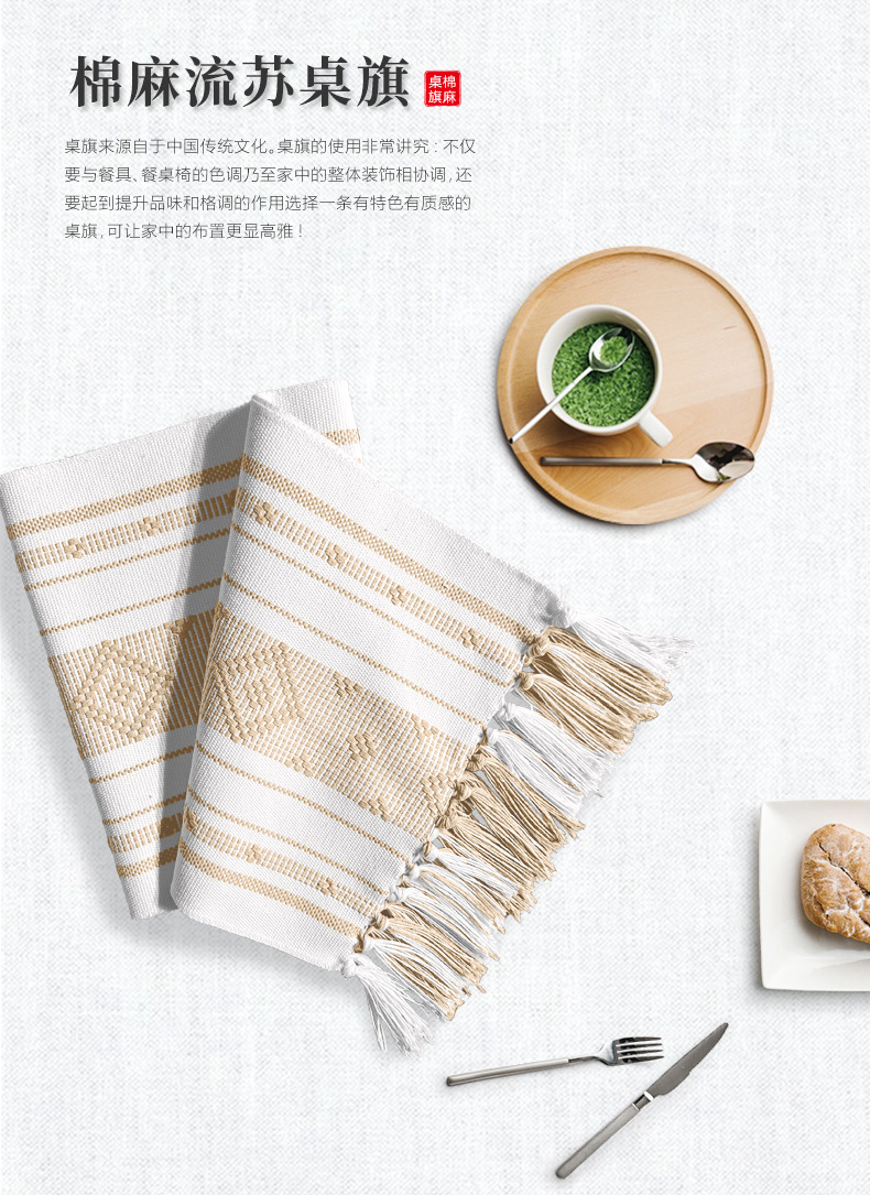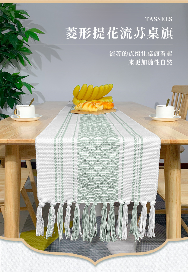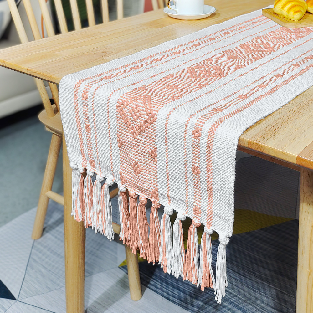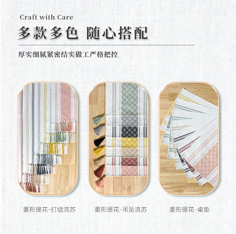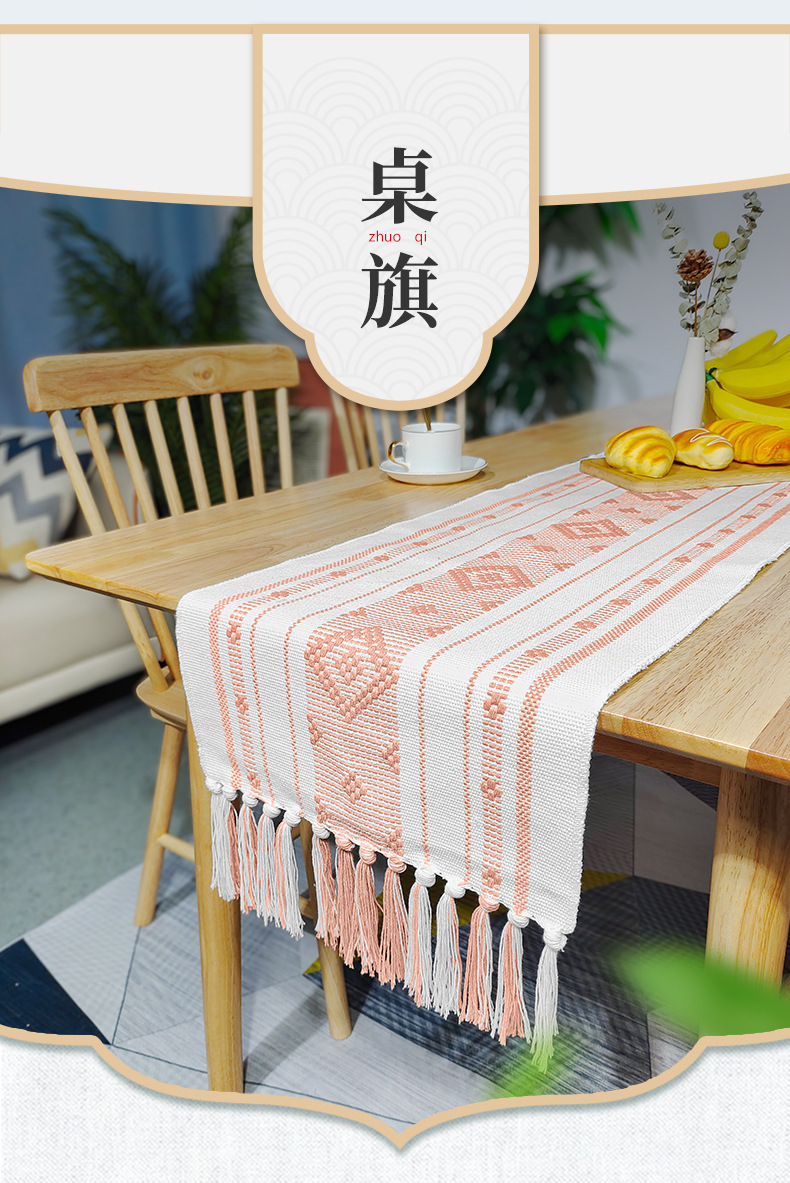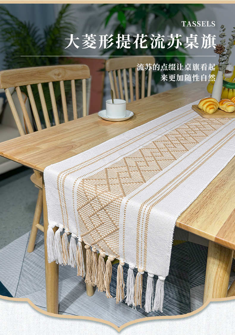 跨境提花棉麻桌旗桌布餐桌垫手工流苏床尾巾茶几柜盖巾茶巾新款