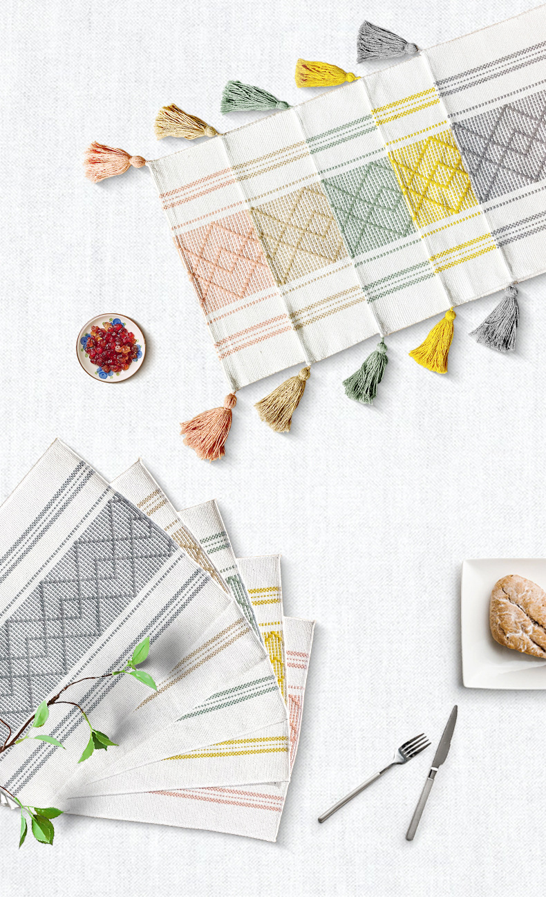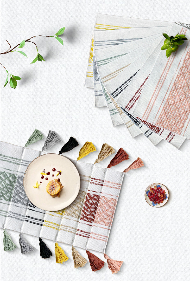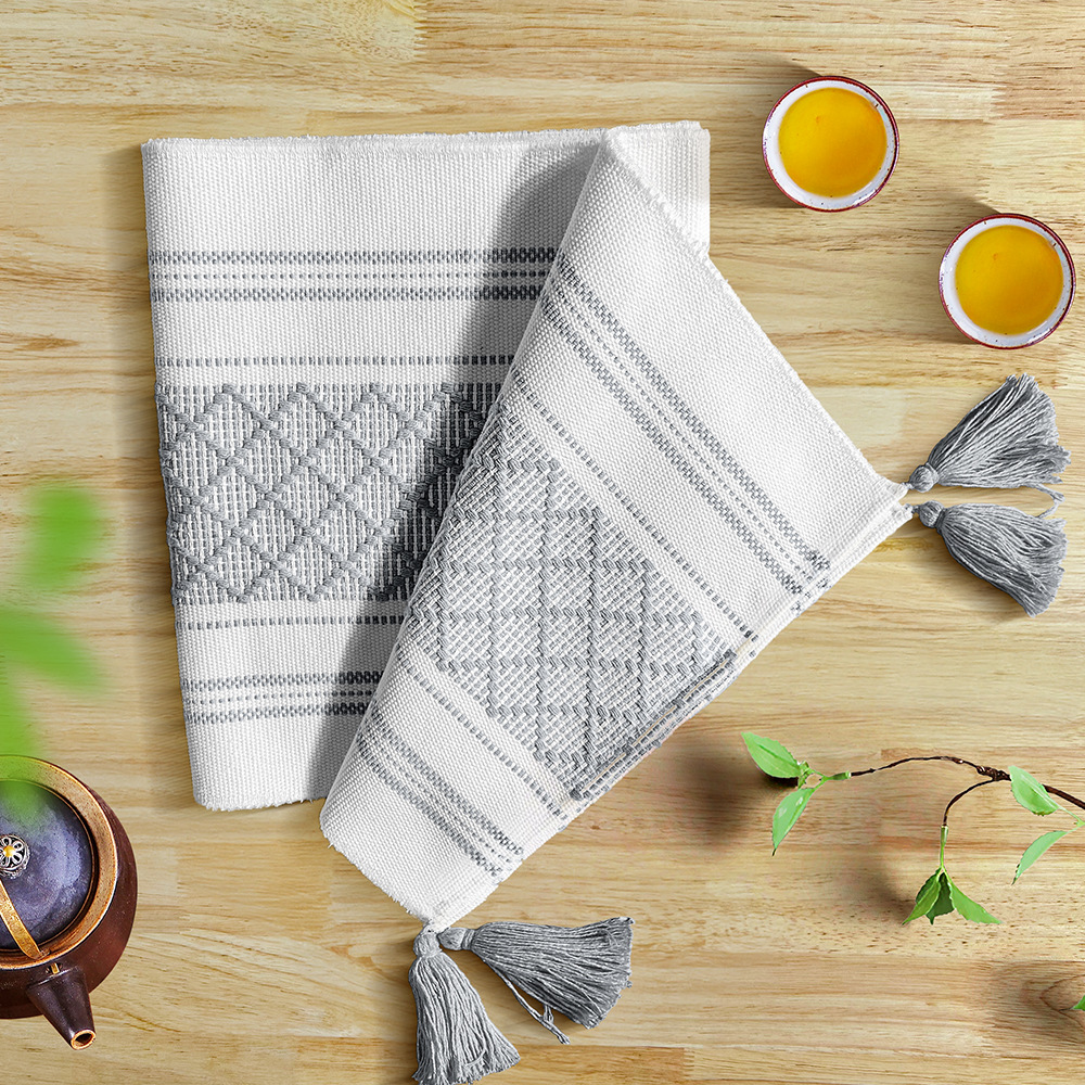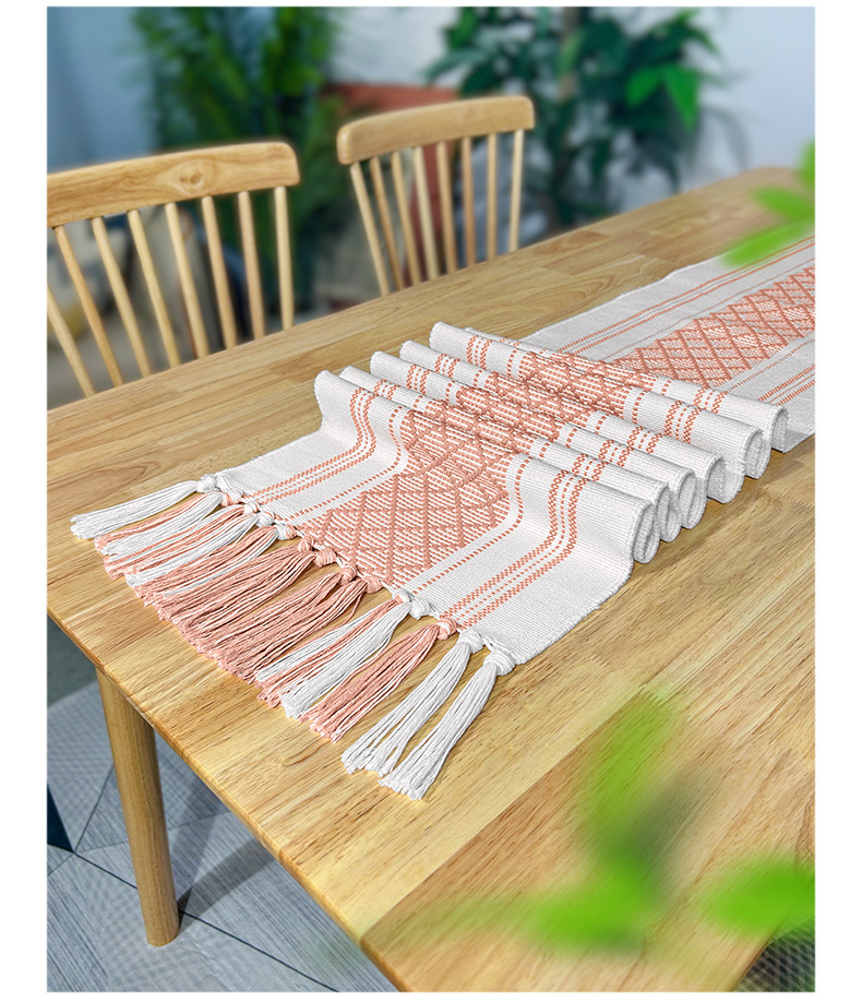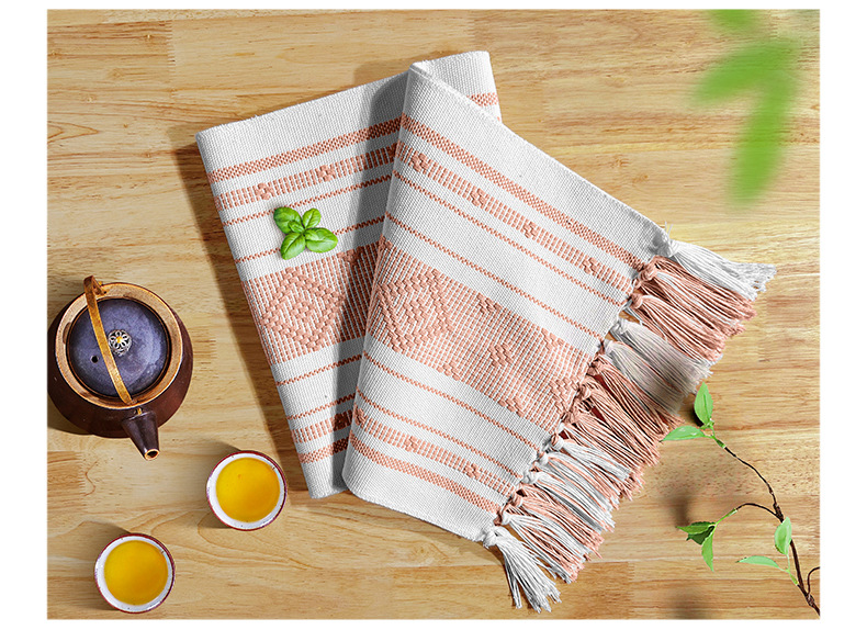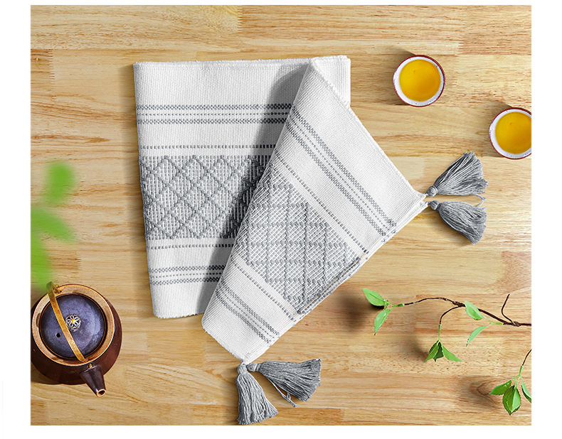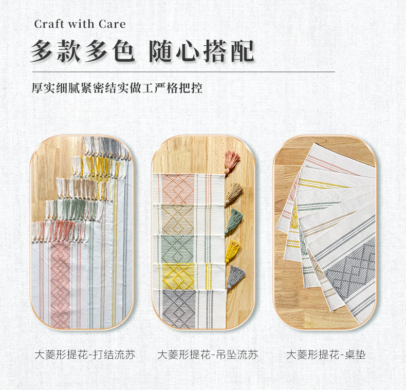 跨境提花棉麻桌旗桌布餐桌垫手工流苏床尾巾茶几柜盖巾茶巾新款