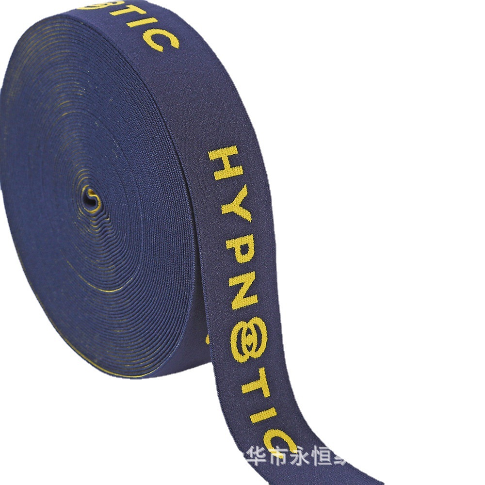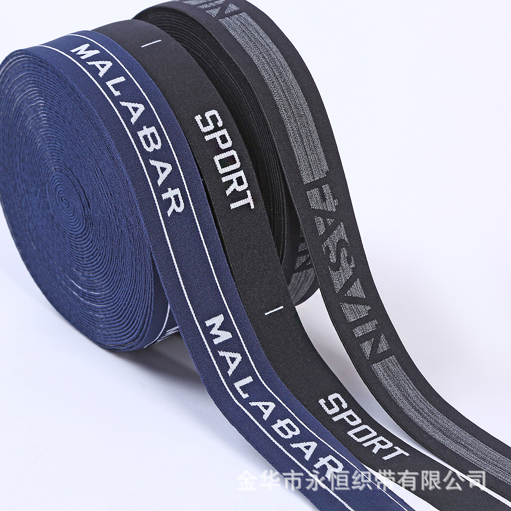 厂家直供LOGO涤纶提字松紧带 弹力松紧带 服饰帽子松紧 橡筋辅料