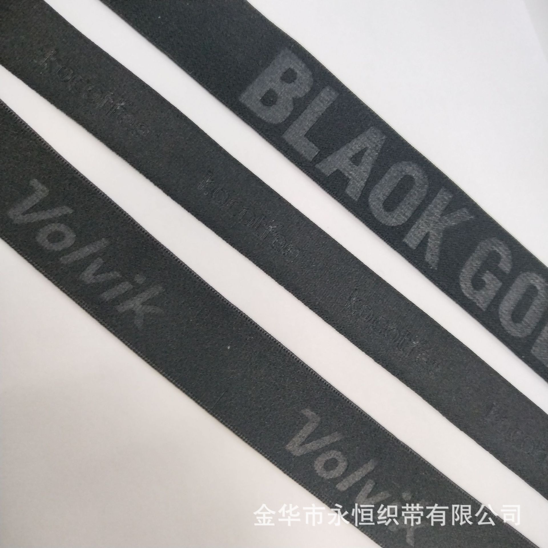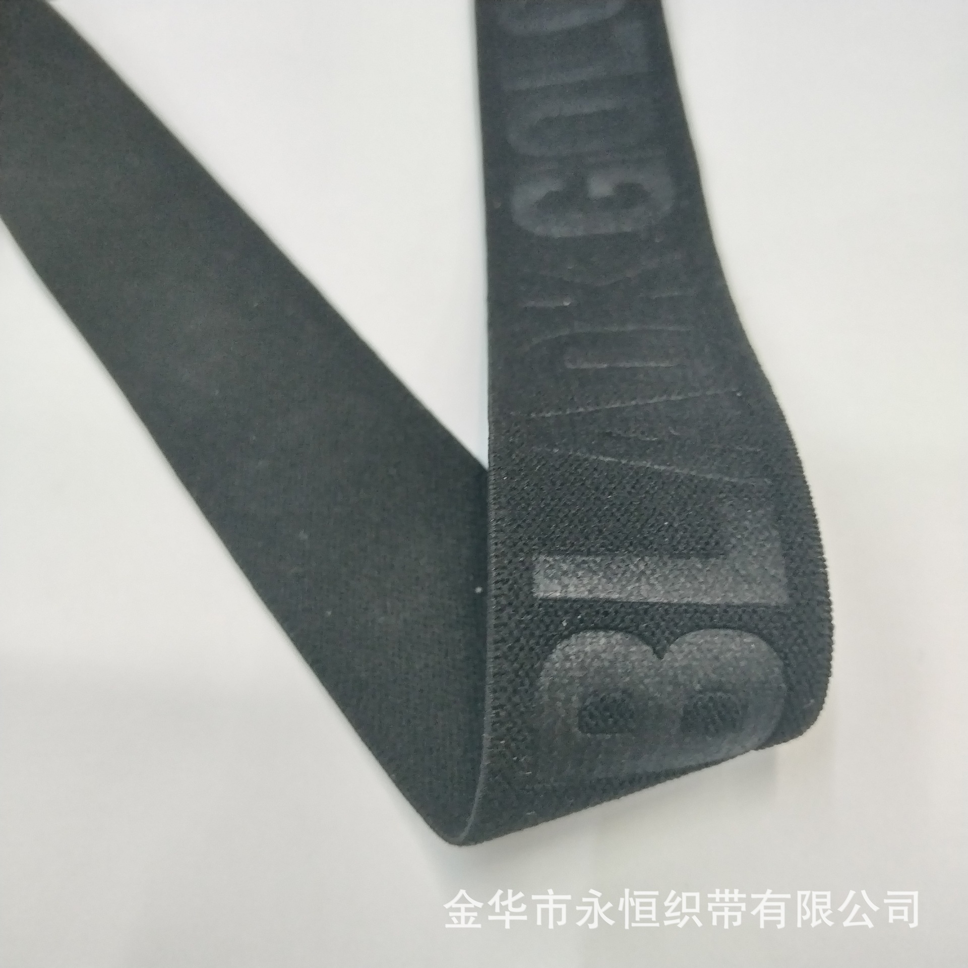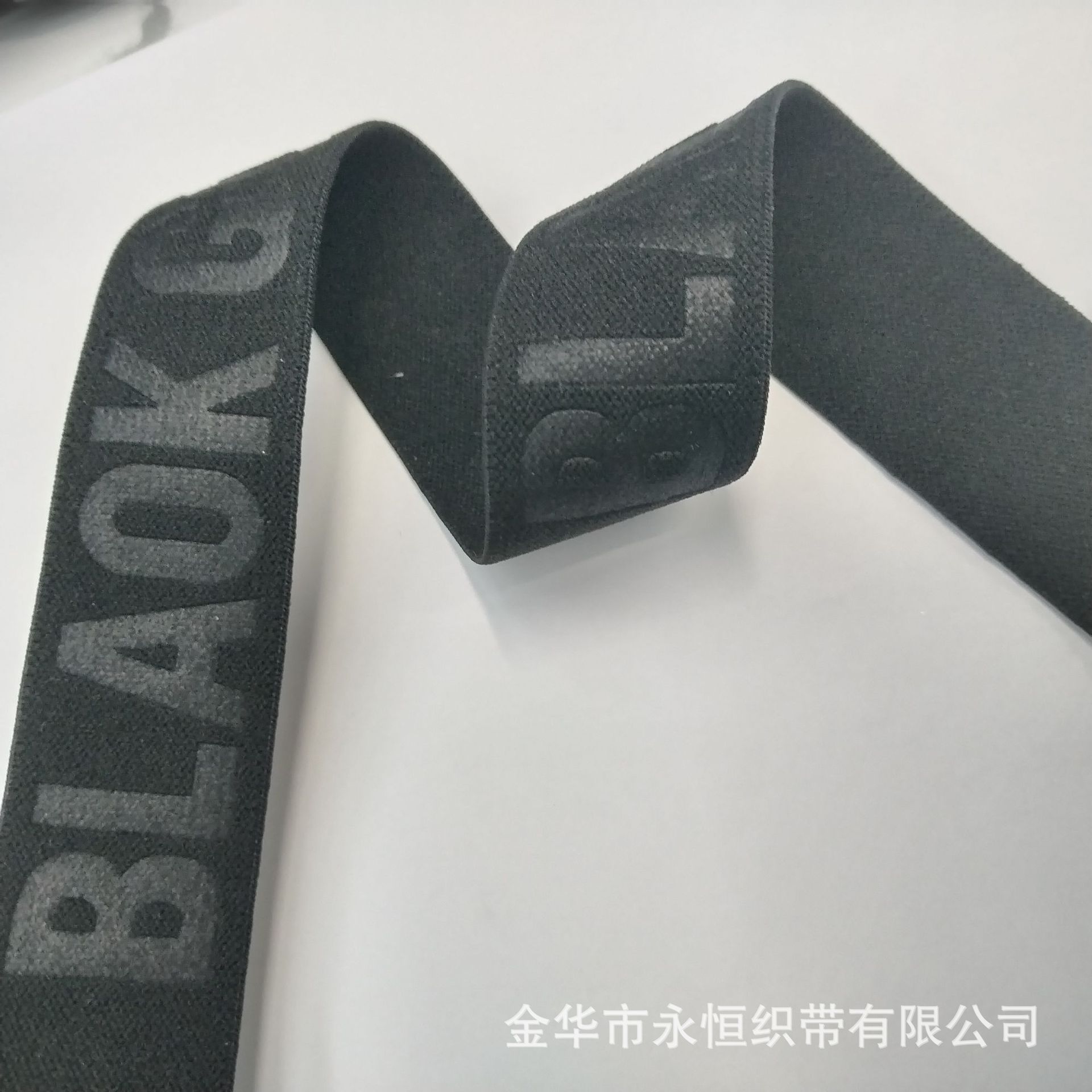 3.0CM英文字母压字松紧带 羽绒服弹力背带 黑色双面绒弹力织带