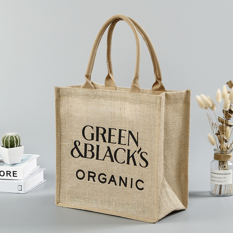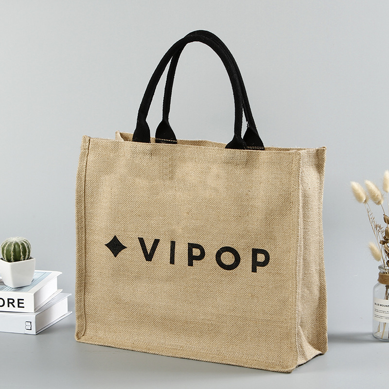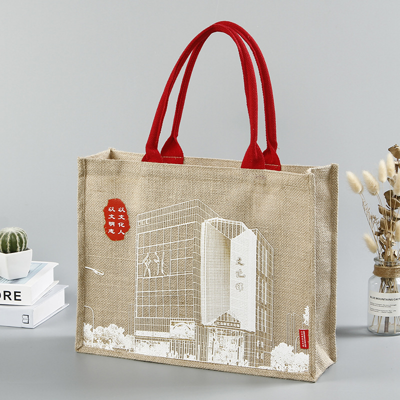 广告印花麻布袋时尚服装包装黄麻布购物袋竹节手提麻布包印刷logo