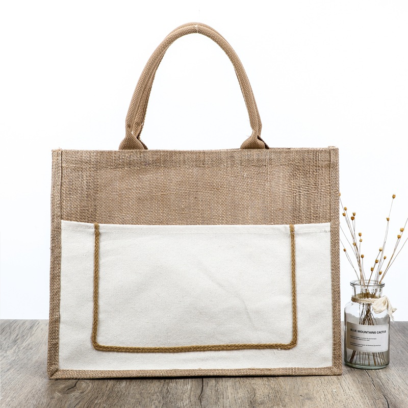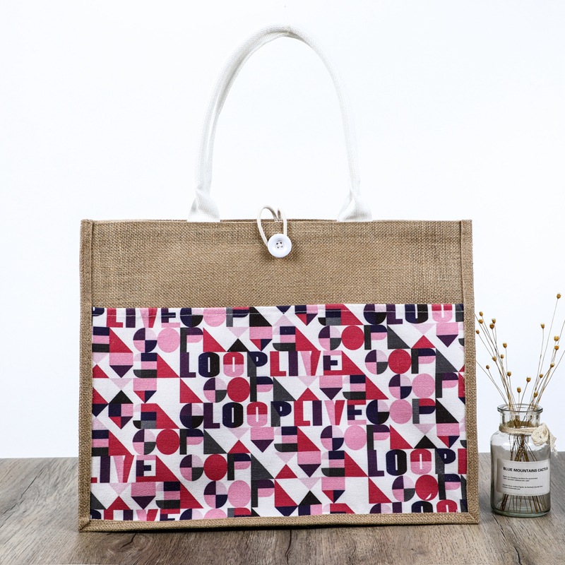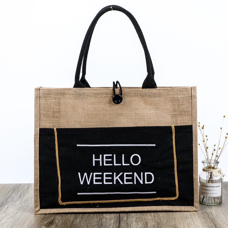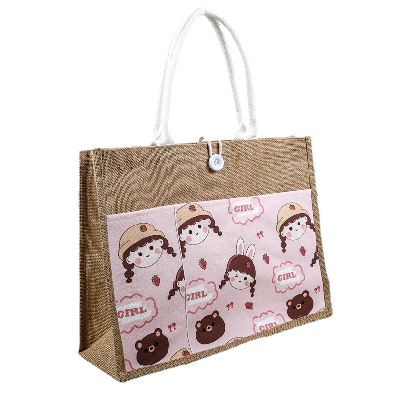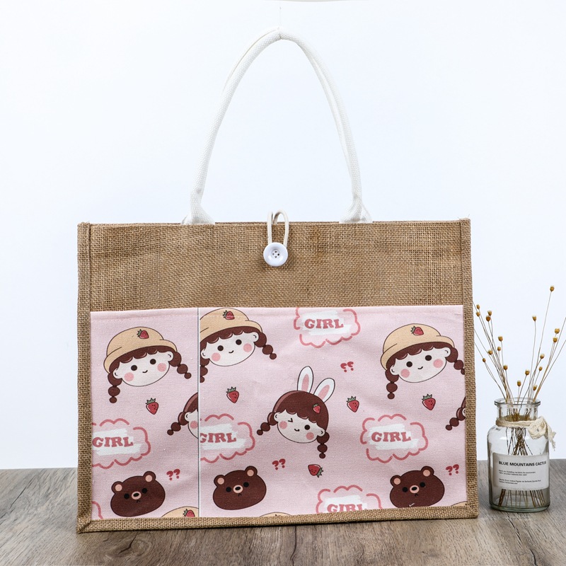 文艺亚麻手提袋卡通可爱手提购物麻布袋手绘亚麻布袋印花