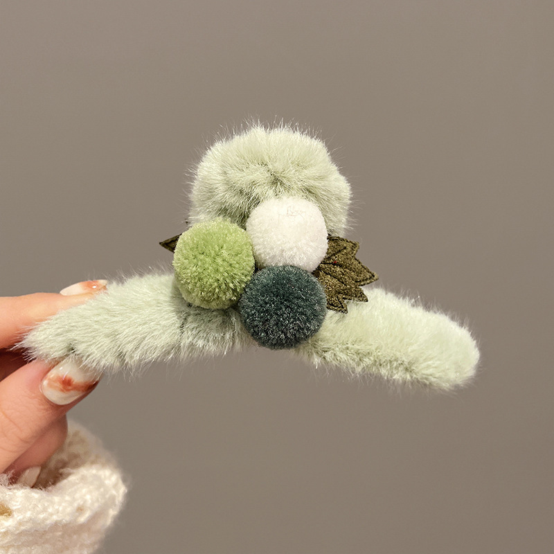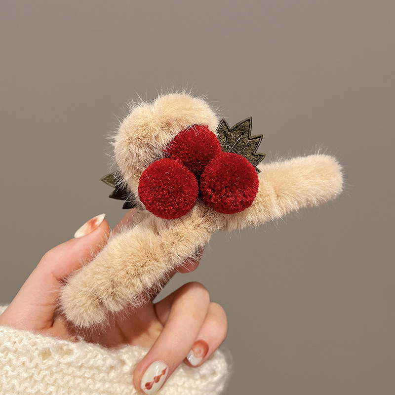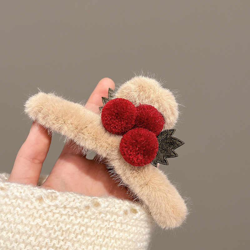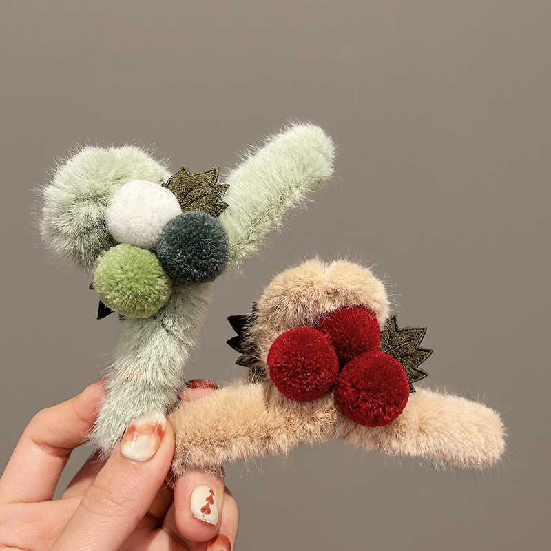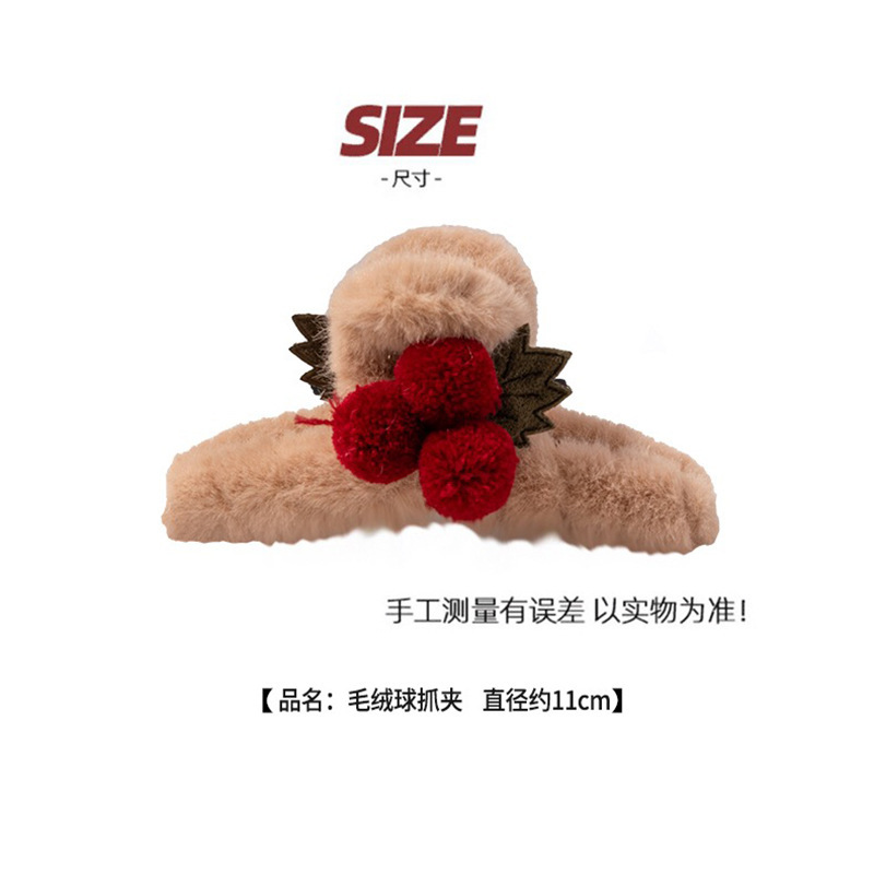 森系少女圣诞毛绒毛球抓夹后脑勺大号夹子复古果子可爱盘发鲨鱼夹