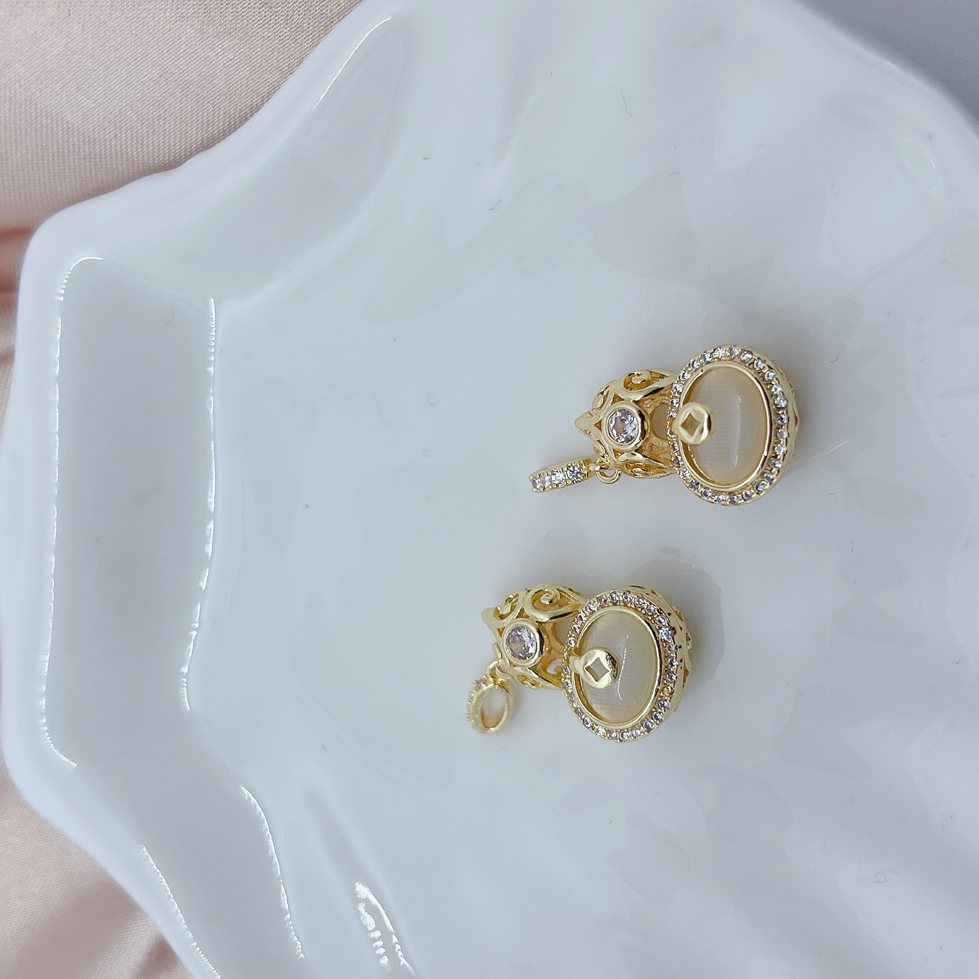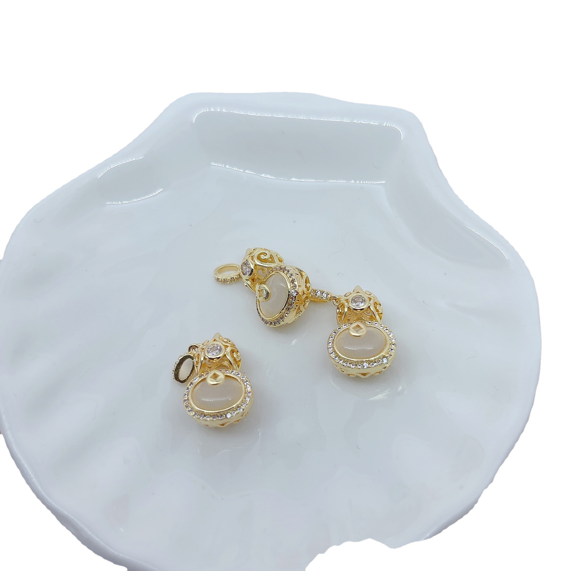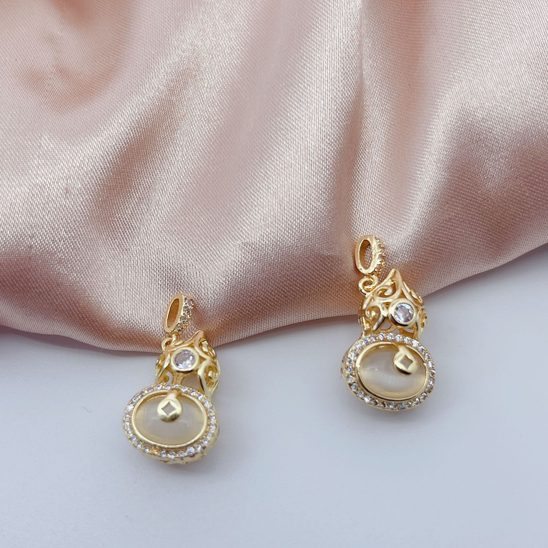 抖音热卖微镶满钻猫眼石葫芦轻奢小众设计感手链项链吊坠DIY挂件