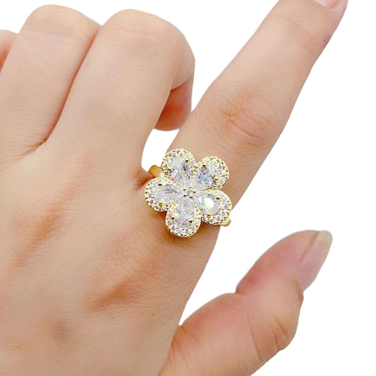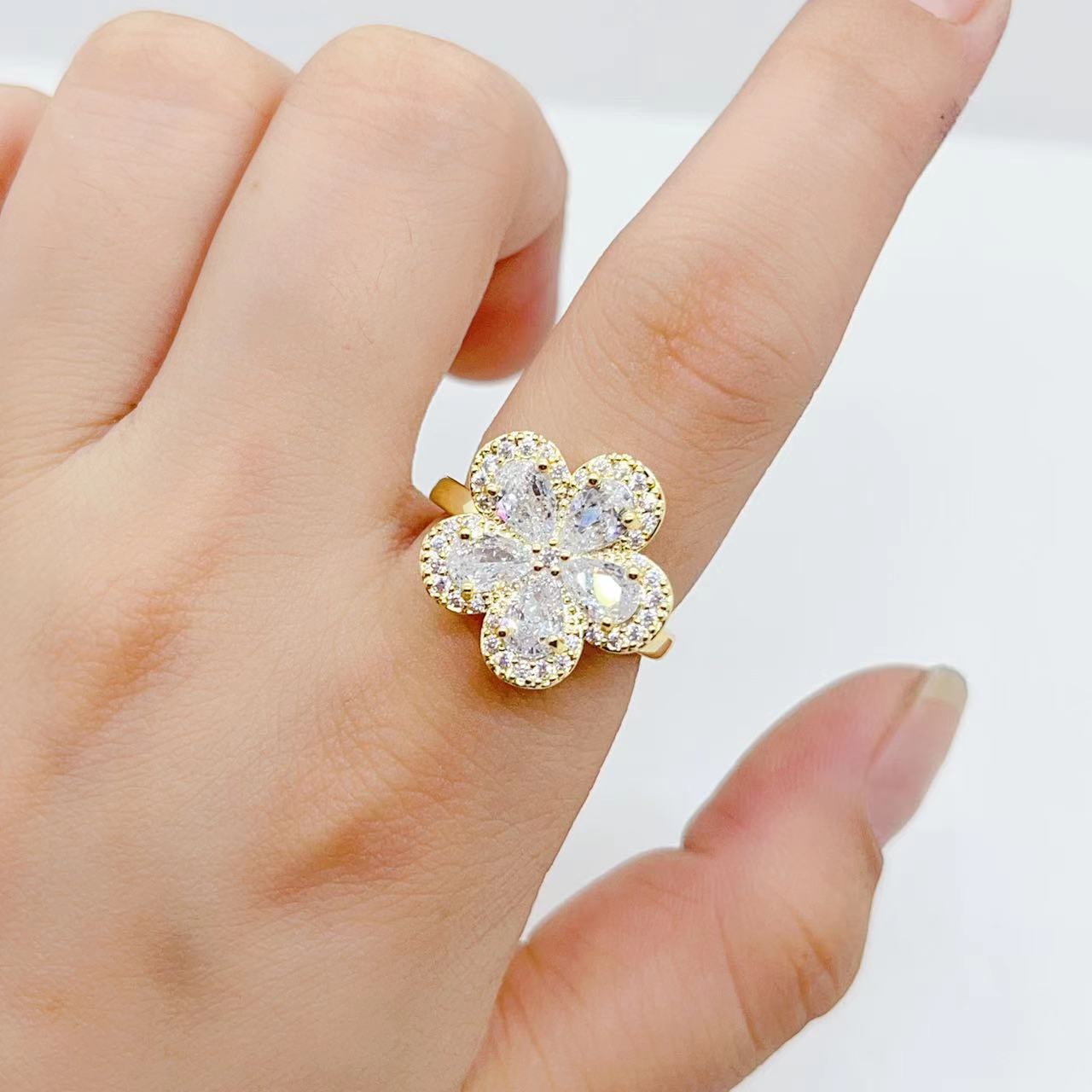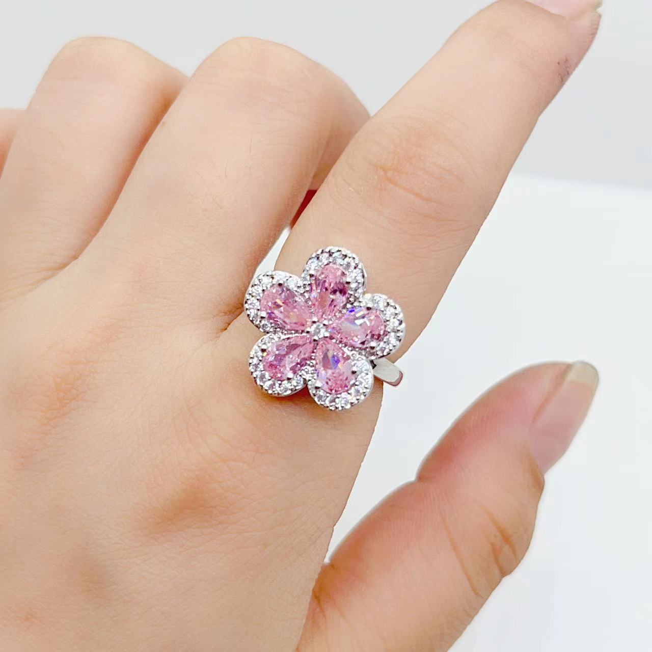 日韩抖音网红同款微镶锆石五瓣花戒指花多开口戒女个性精致ins风