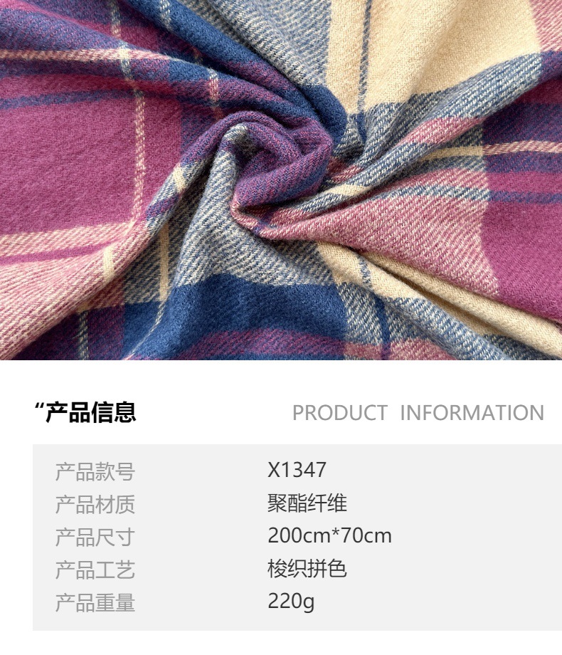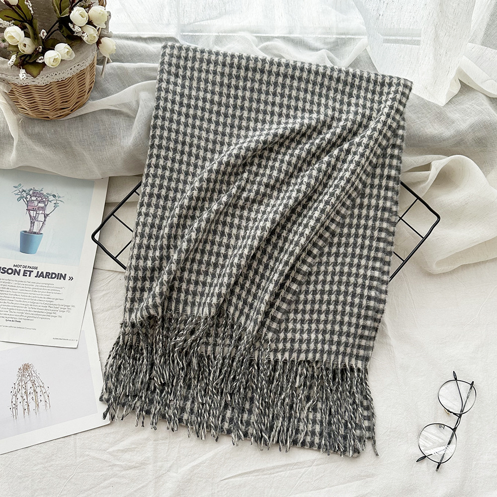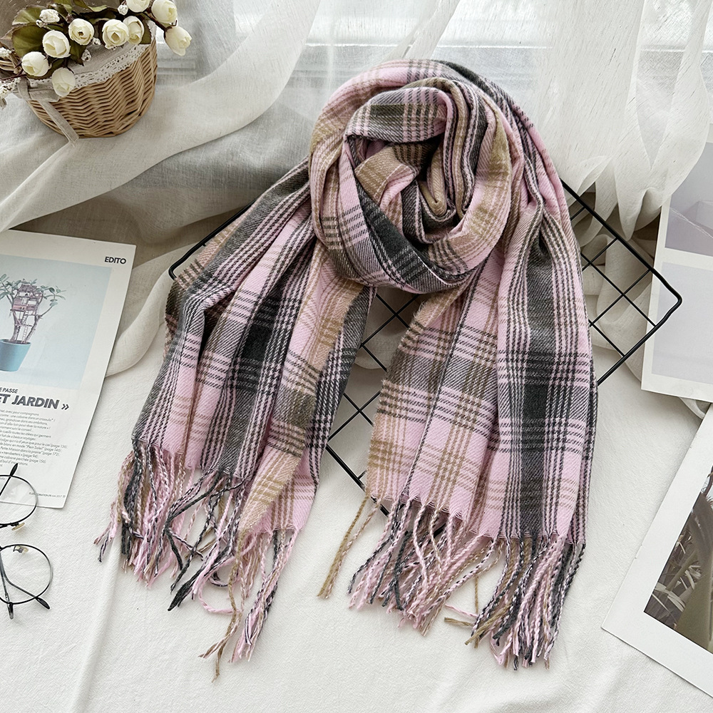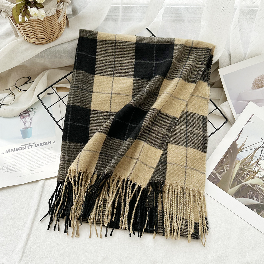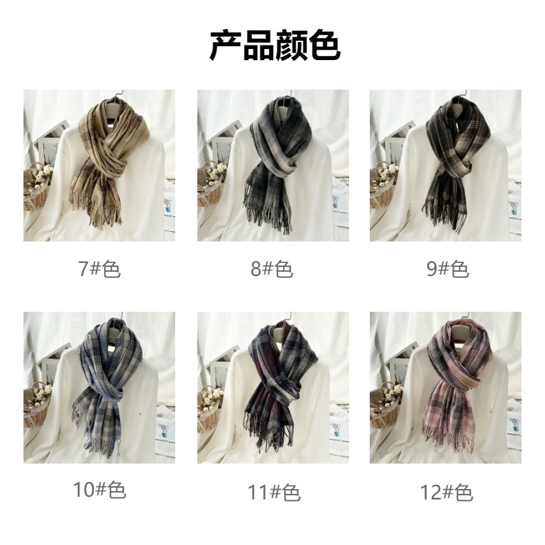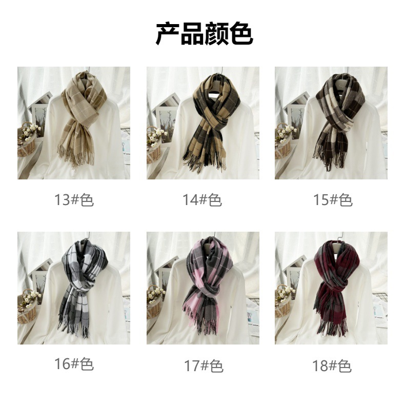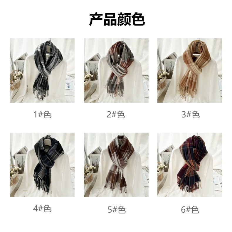 高级感仿羊绒格子围巾冬天爆款跨境定制百搭保暖围脖女士流苏披肩