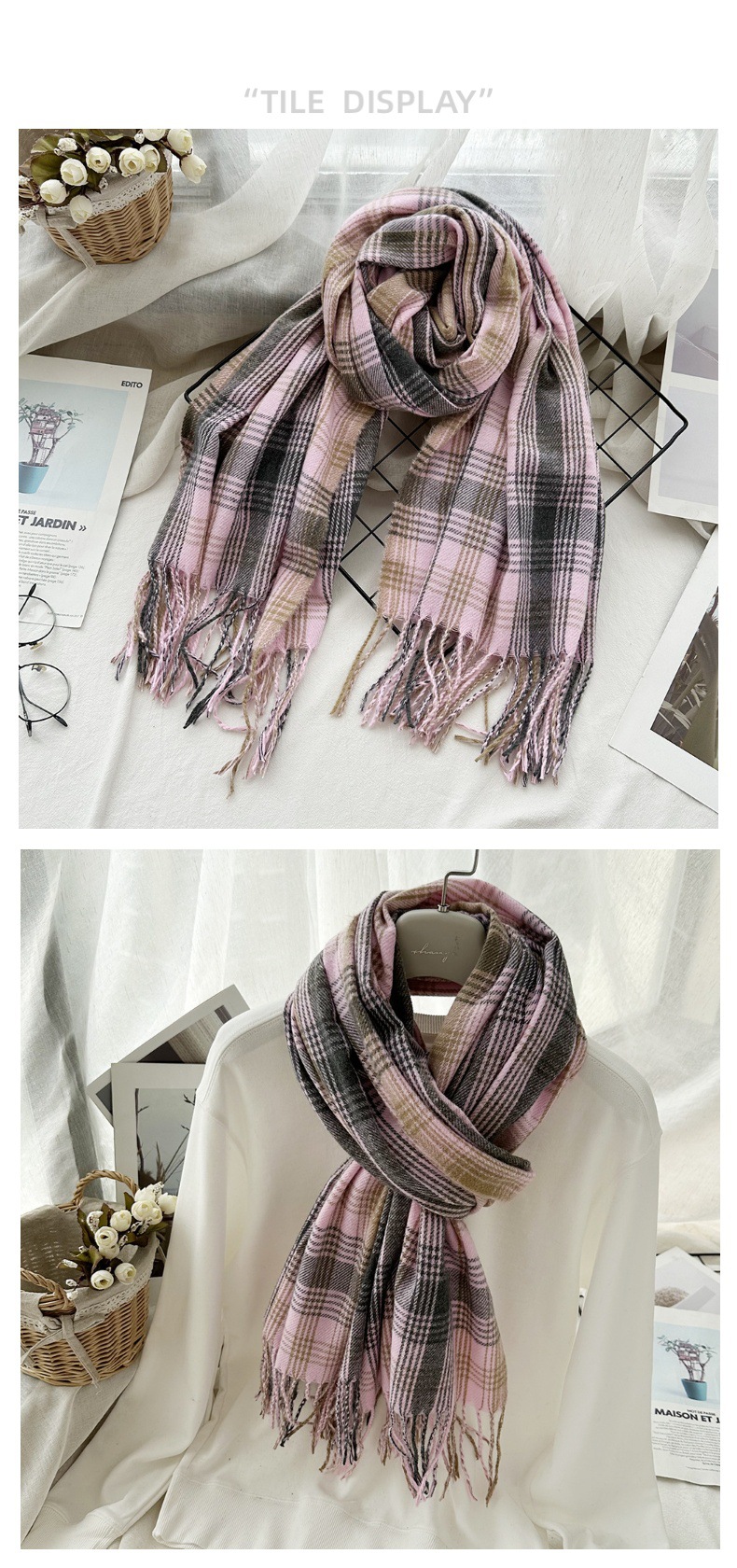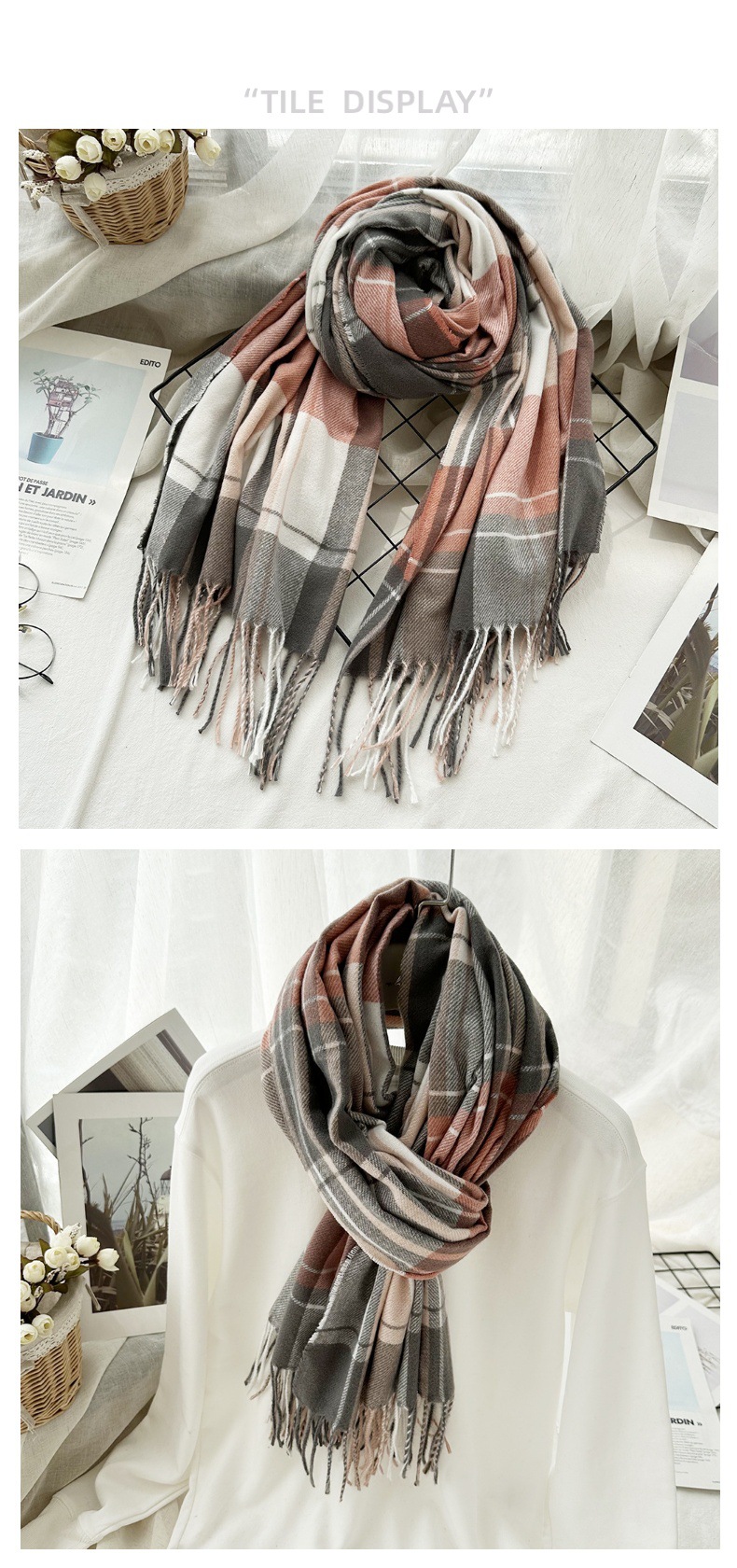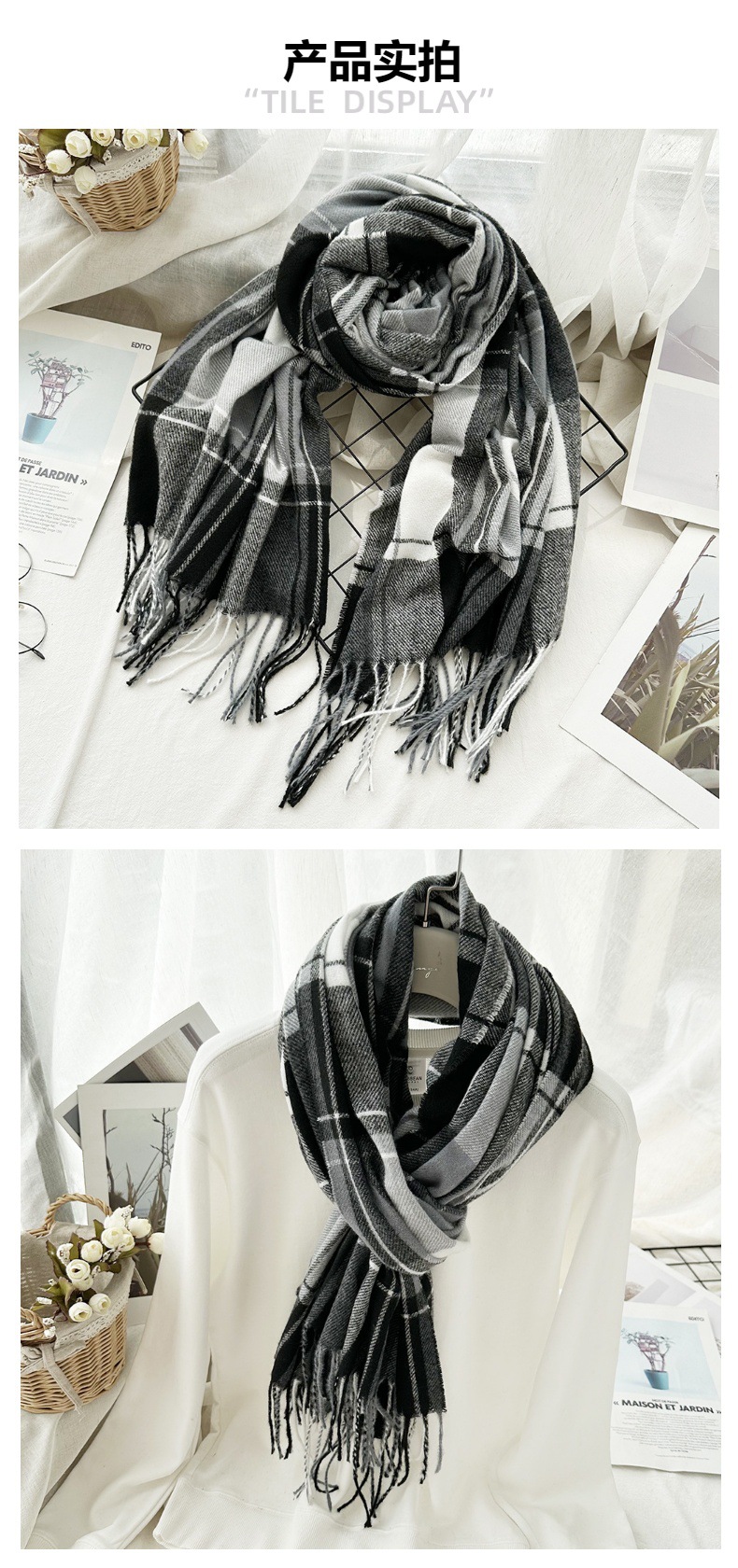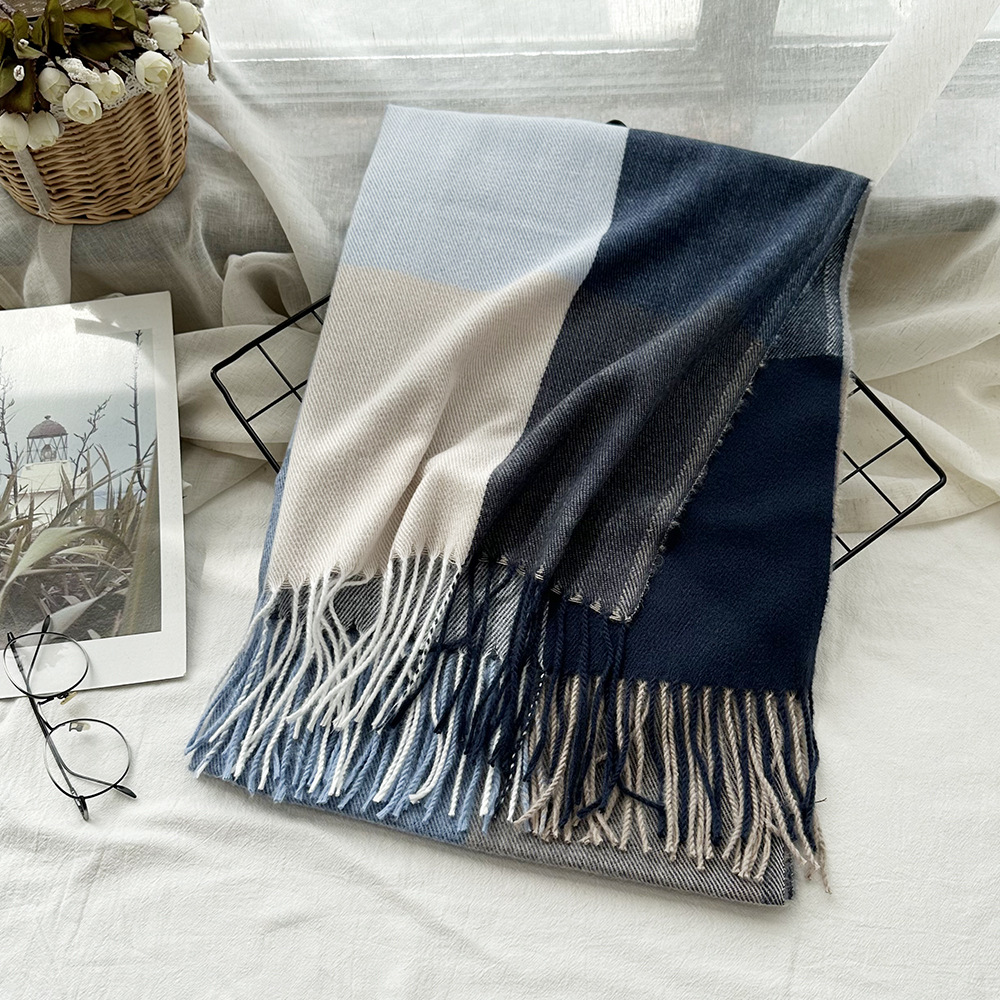 高级感仿羊绒格子围巾冬天爆款跨境定制百搭保暖围脖女士流苏披肩
