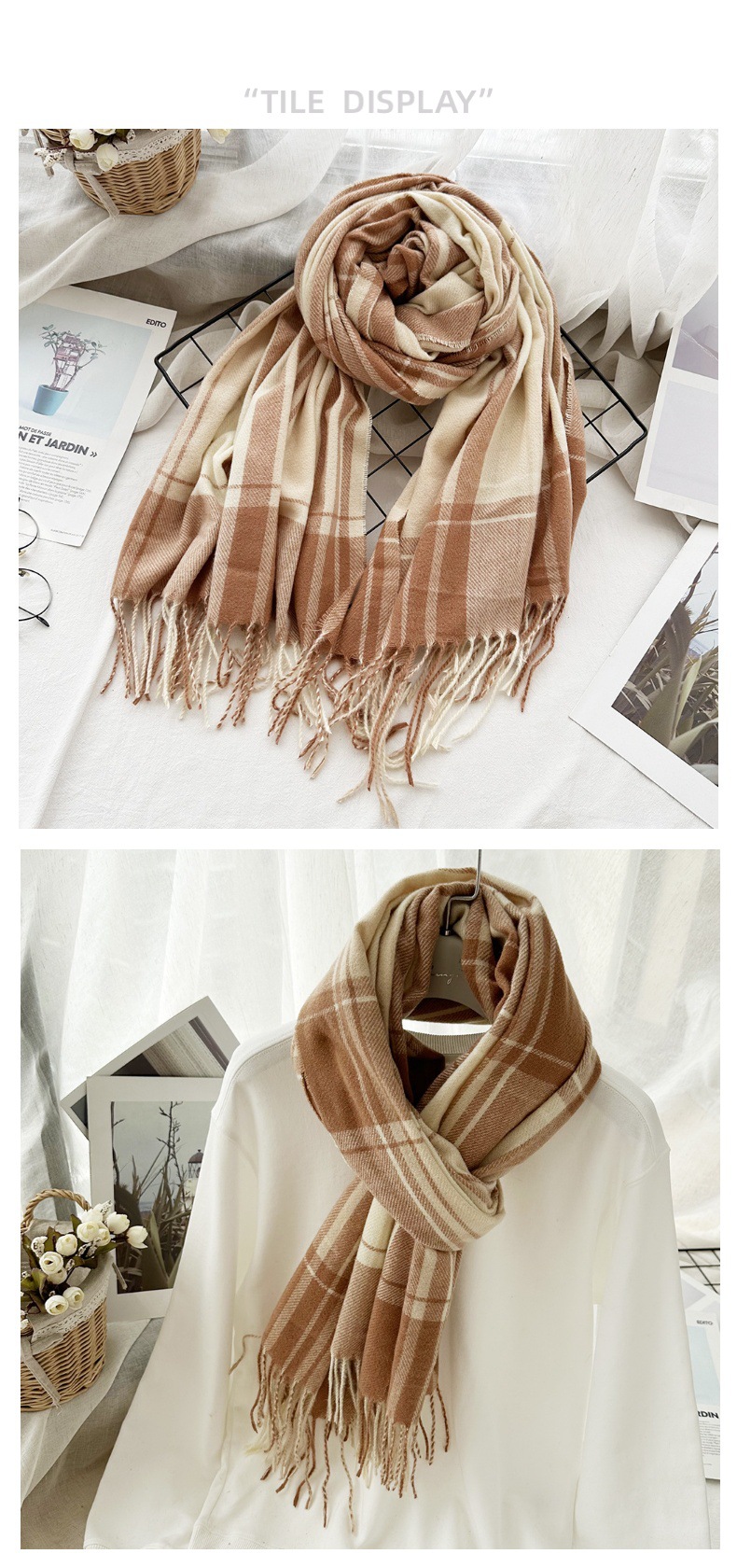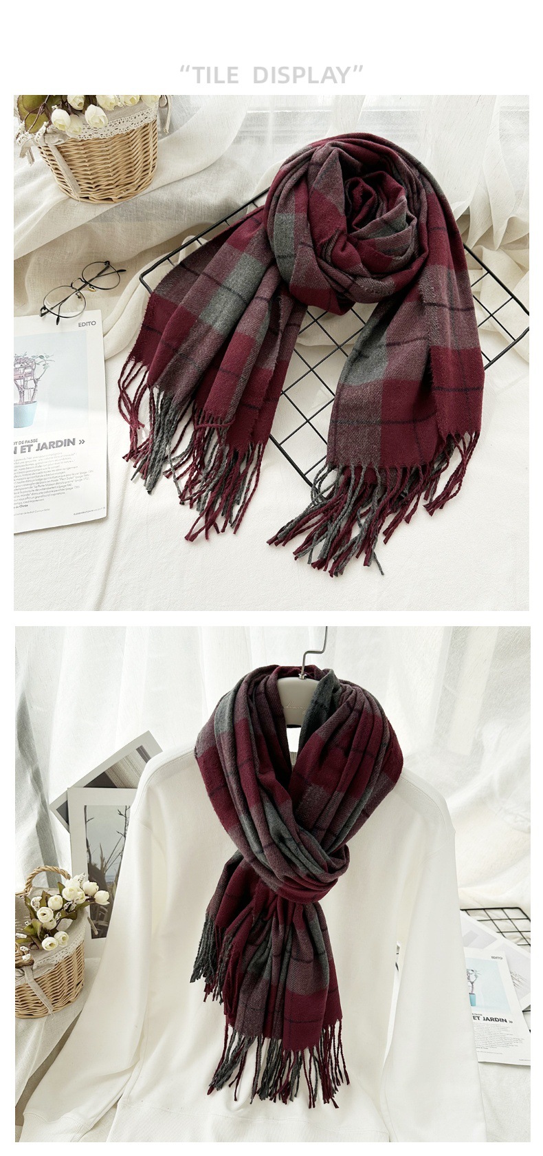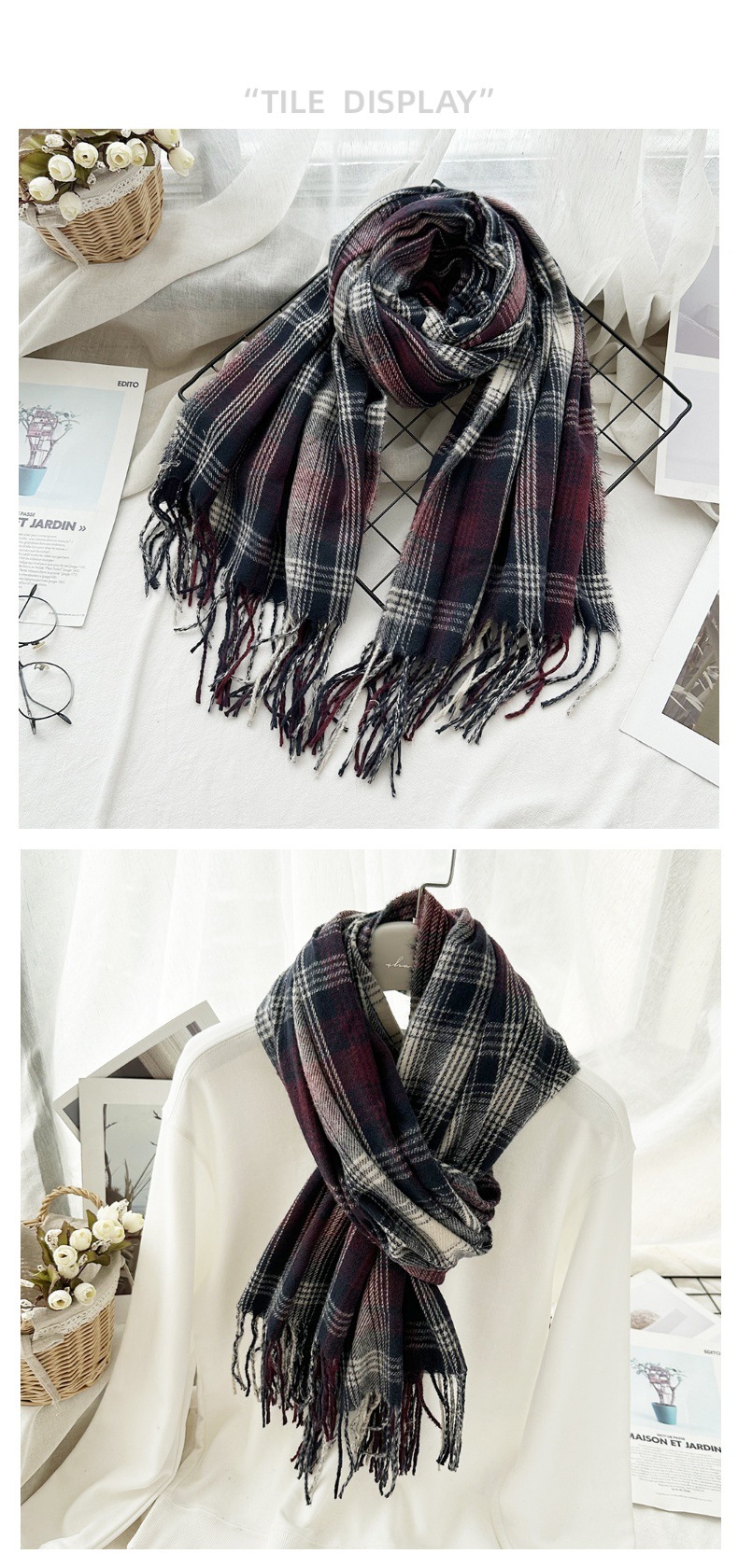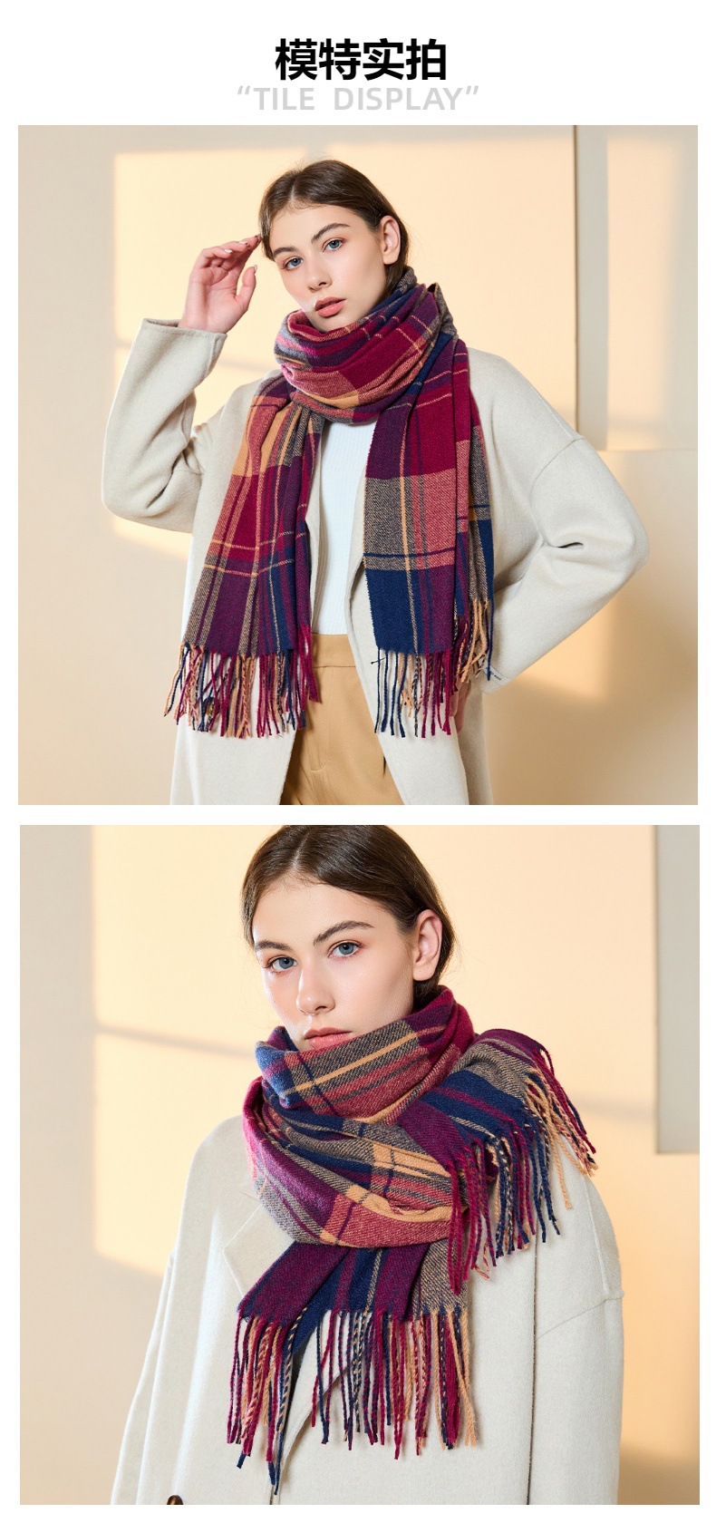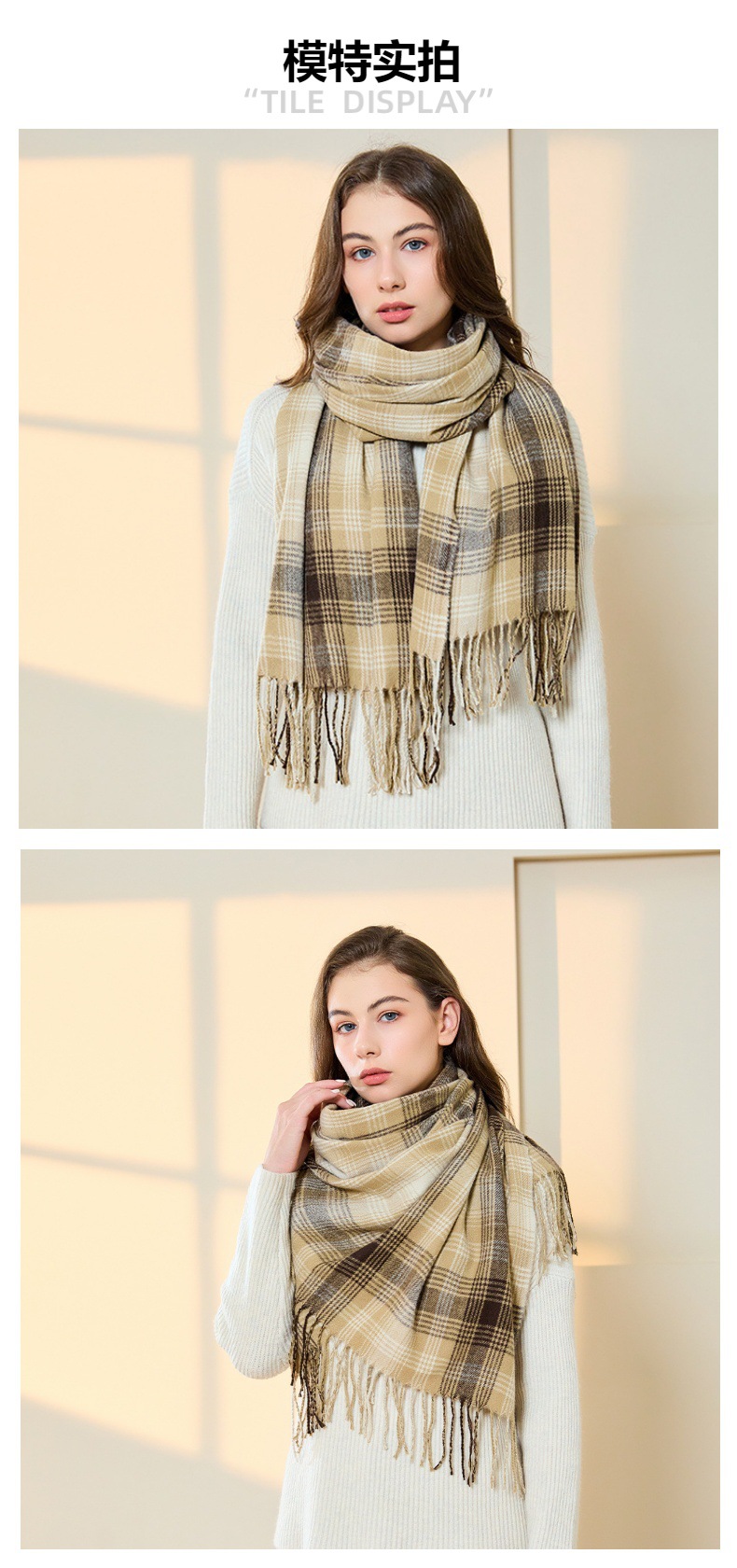 高级感仿羊绒格子围巾冬天爆款跨境定制百搭保暖围脖女士流苏披肩
