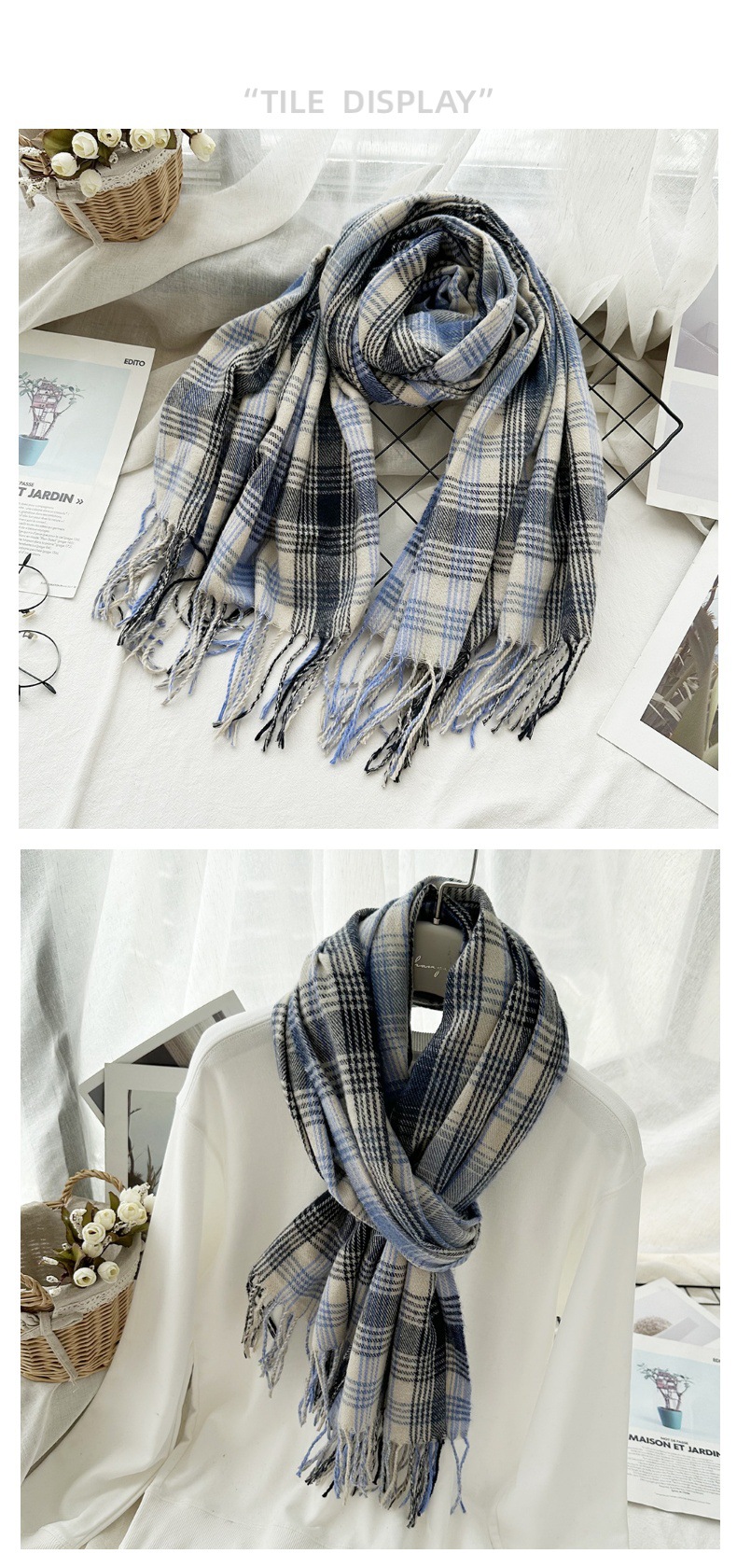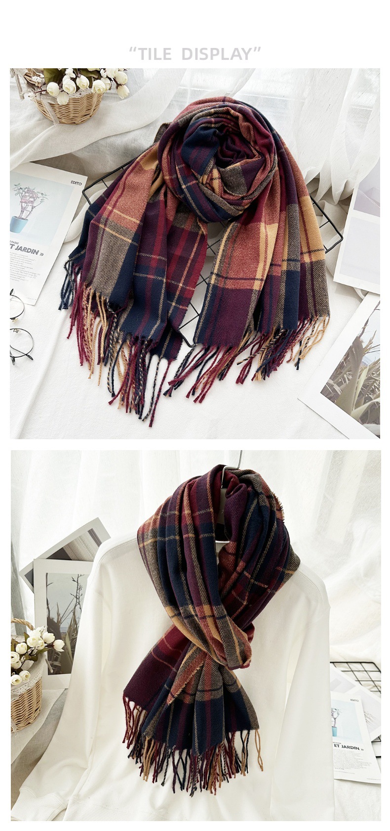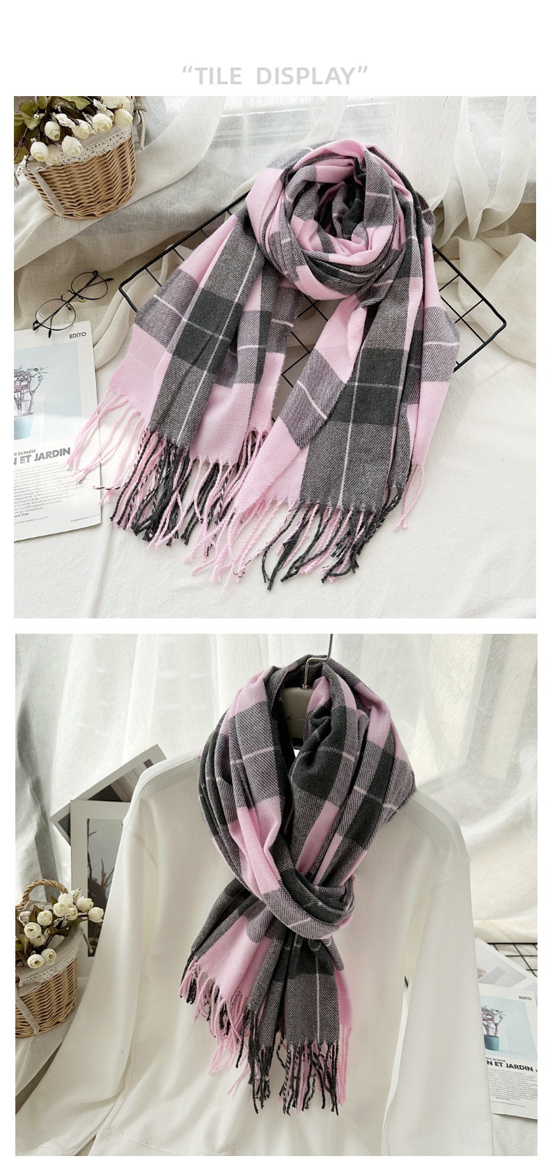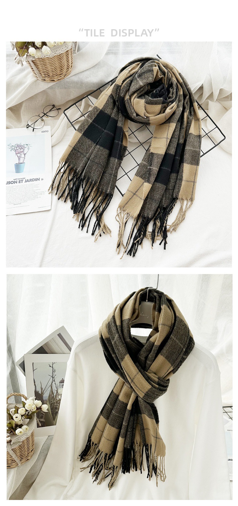 高级感仿羊绒格子围巾冬天爆款跨境定制百搭保暖围脖女士流苏披肩