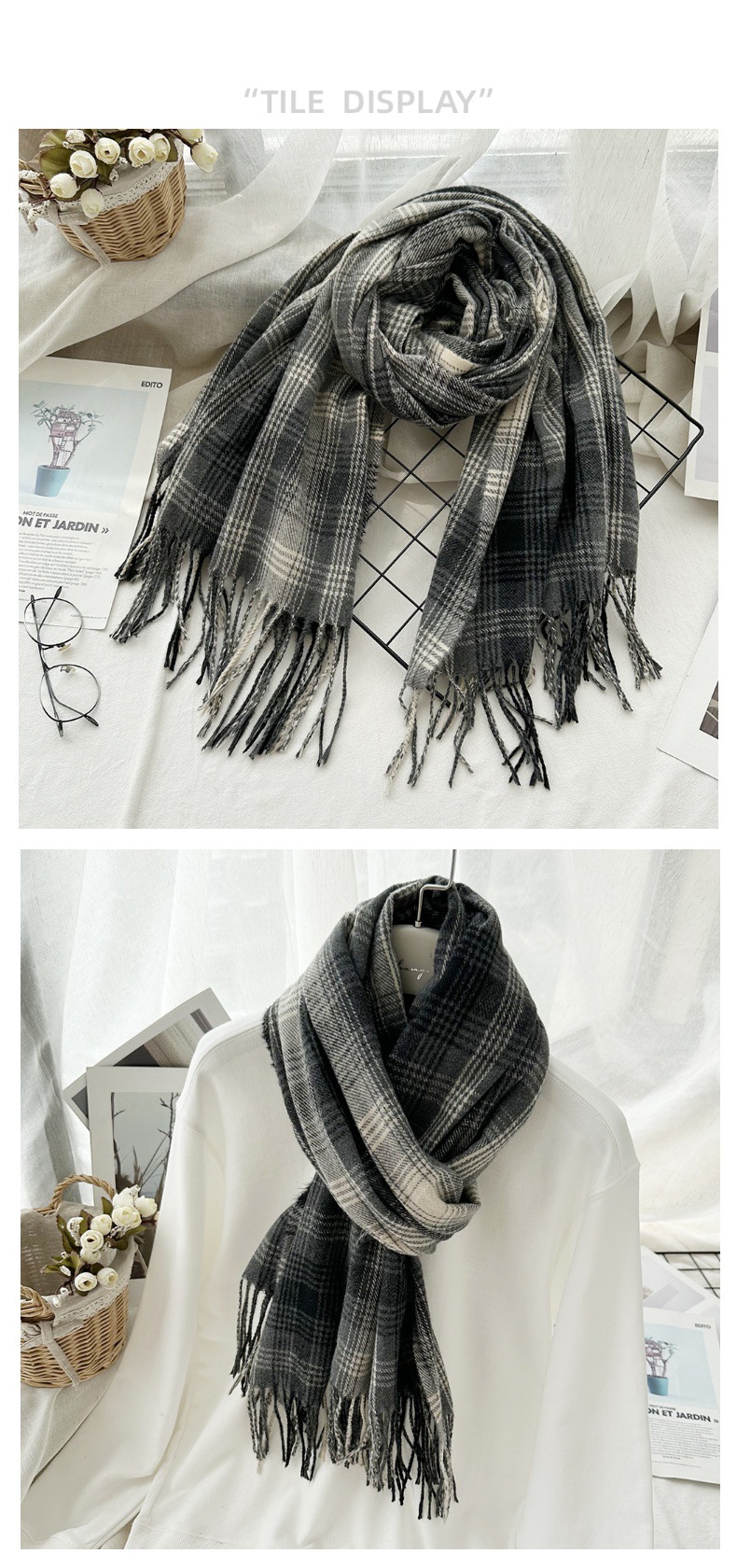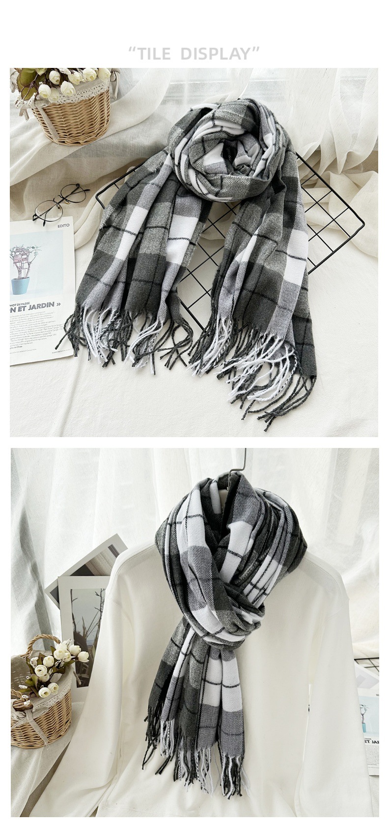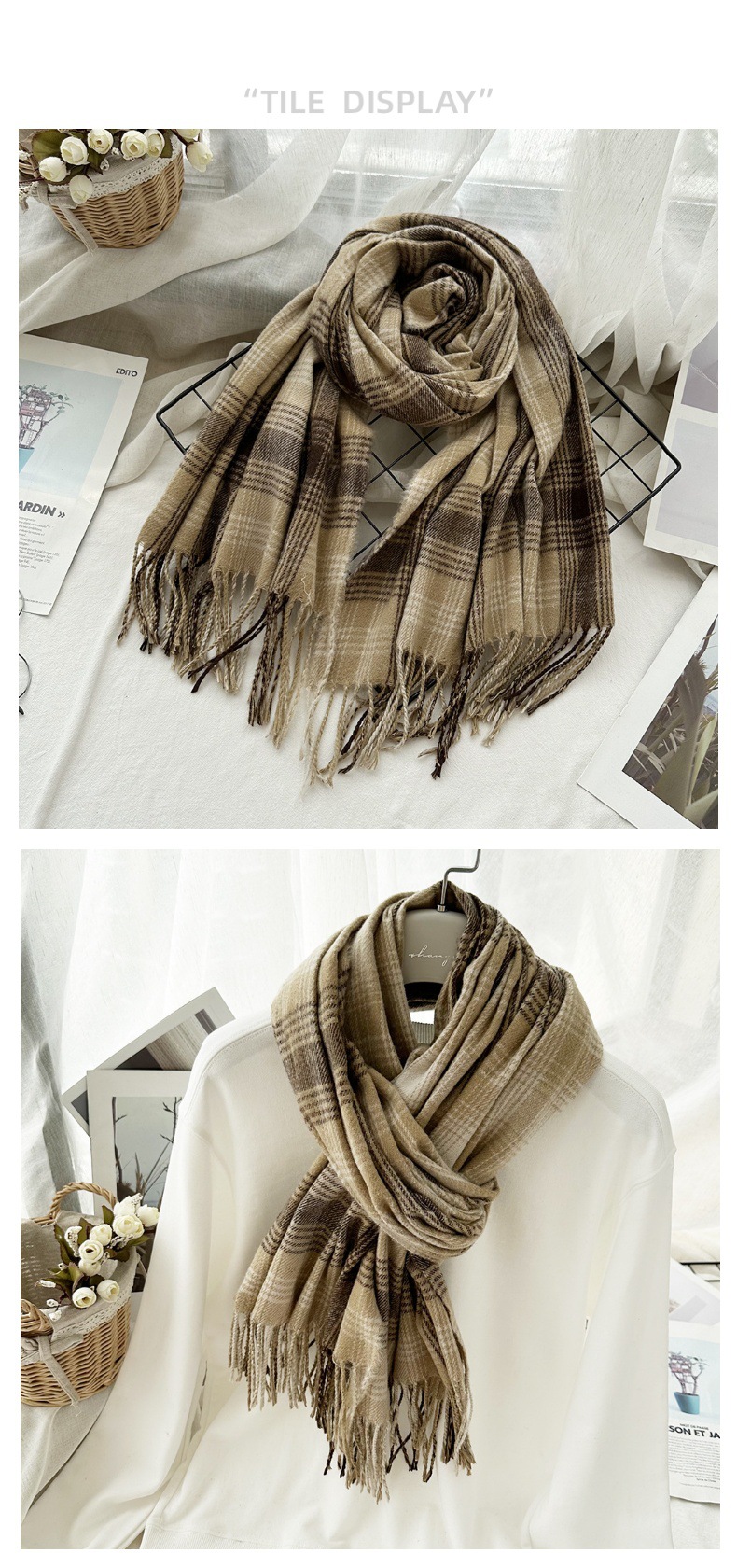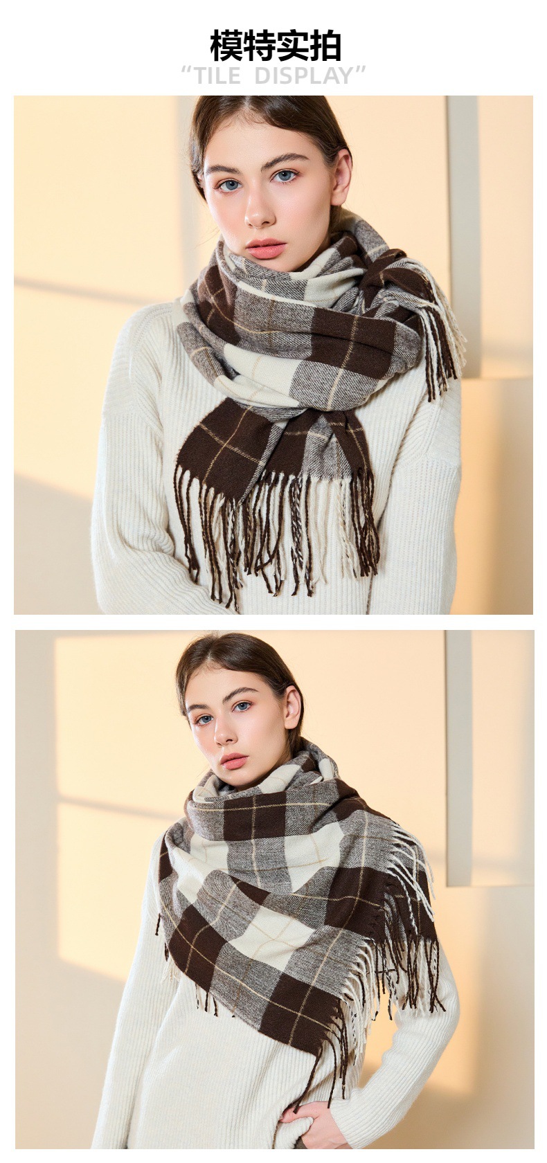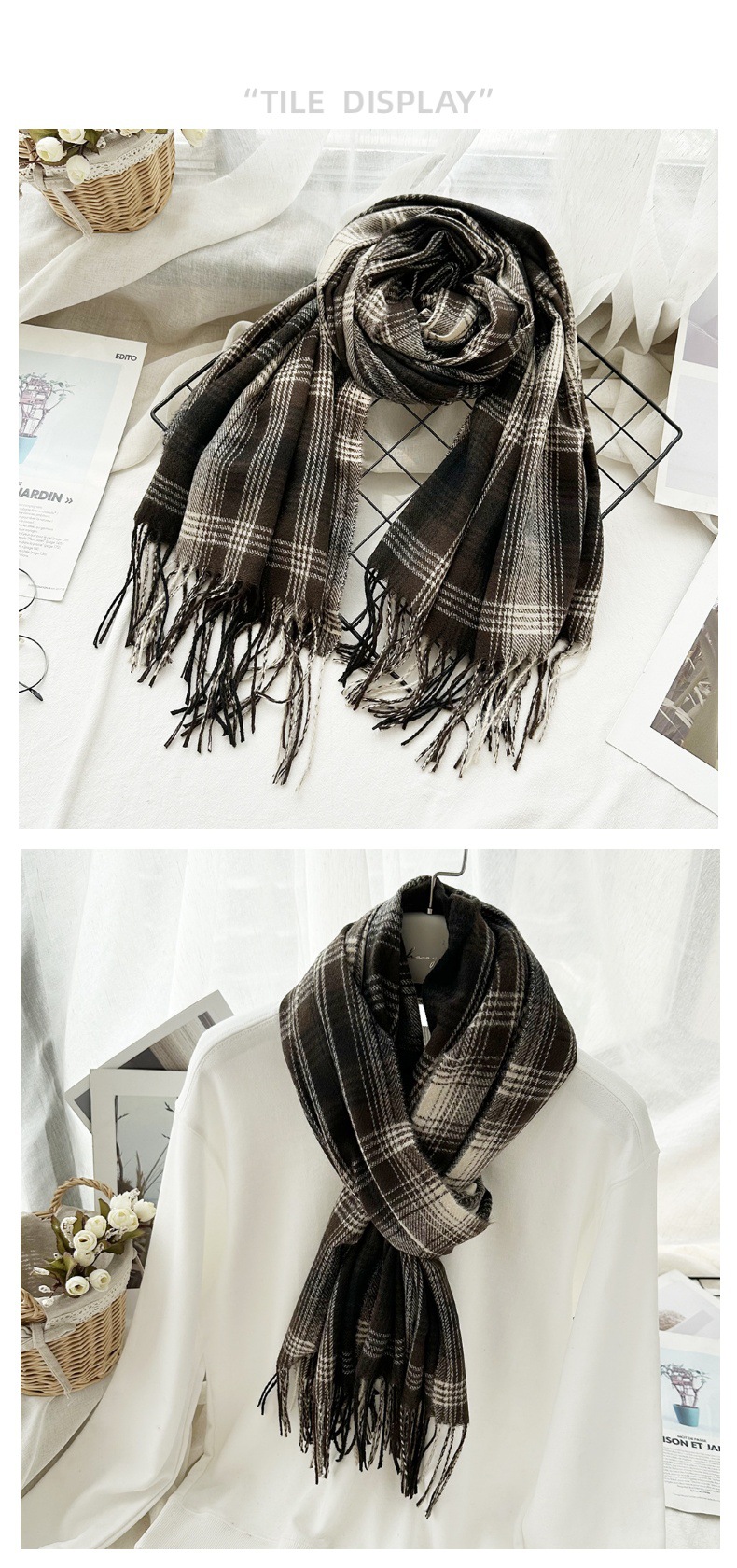 高级感仿羊绒格子围巾冬天爆款跨境定制百搭保暖围脖女士流苏披肩