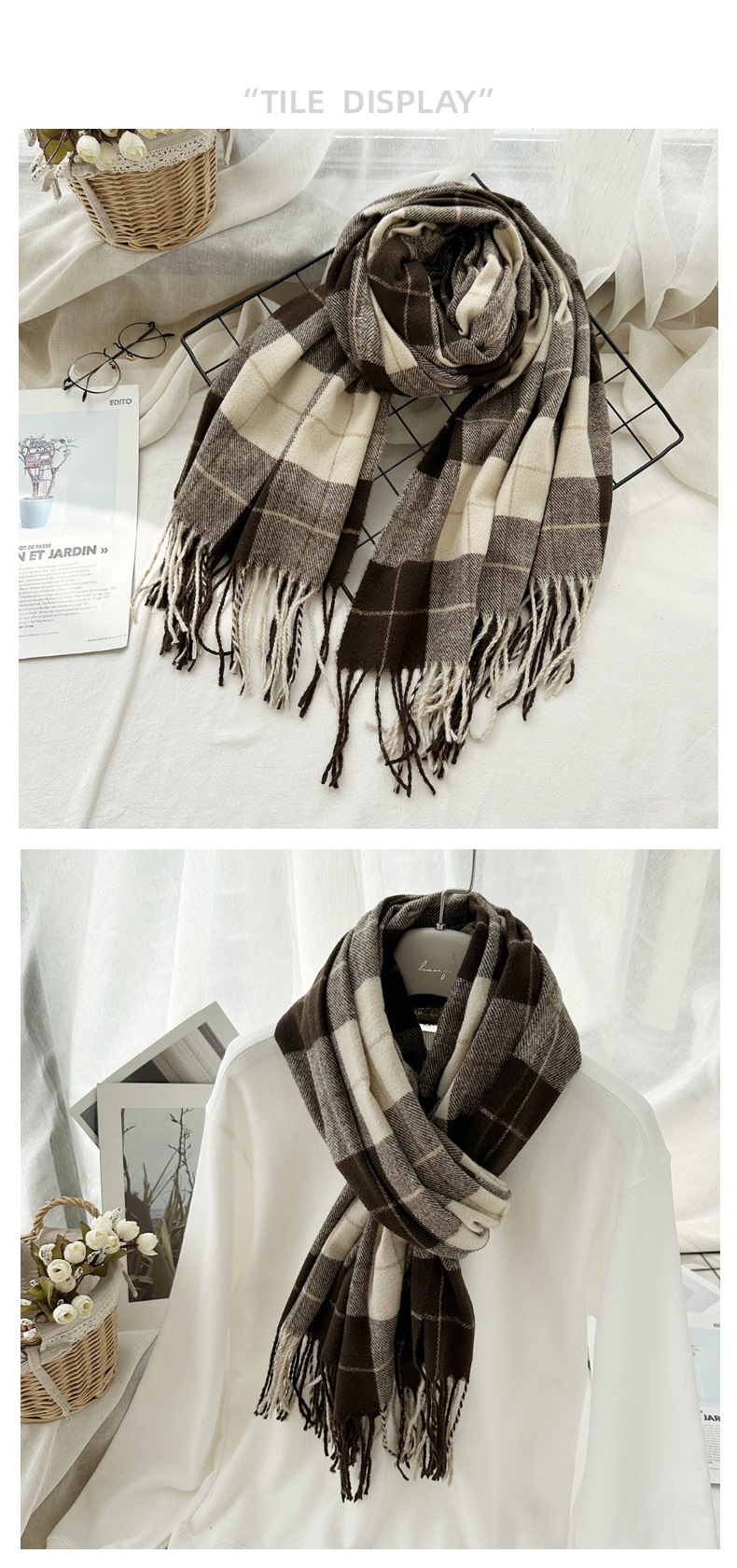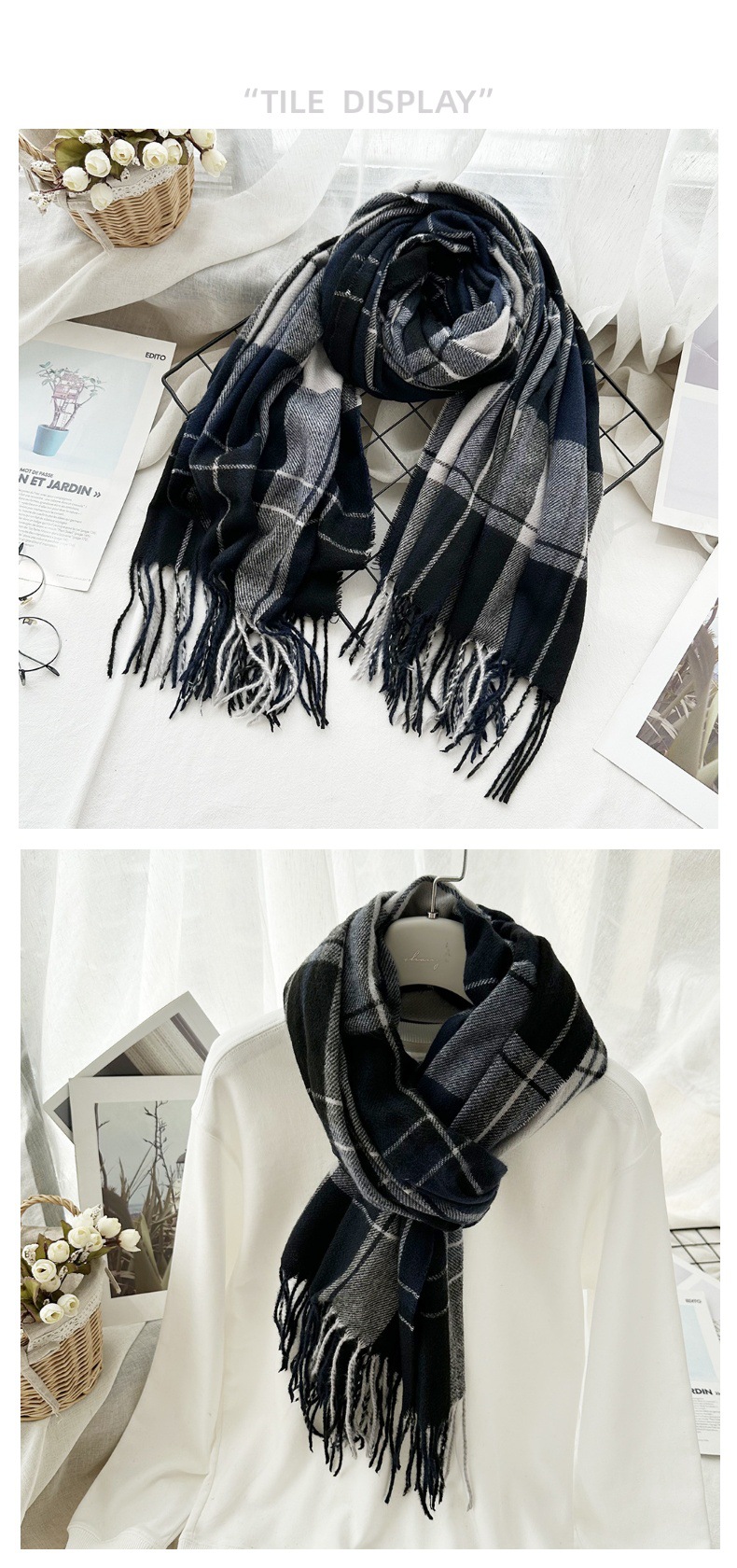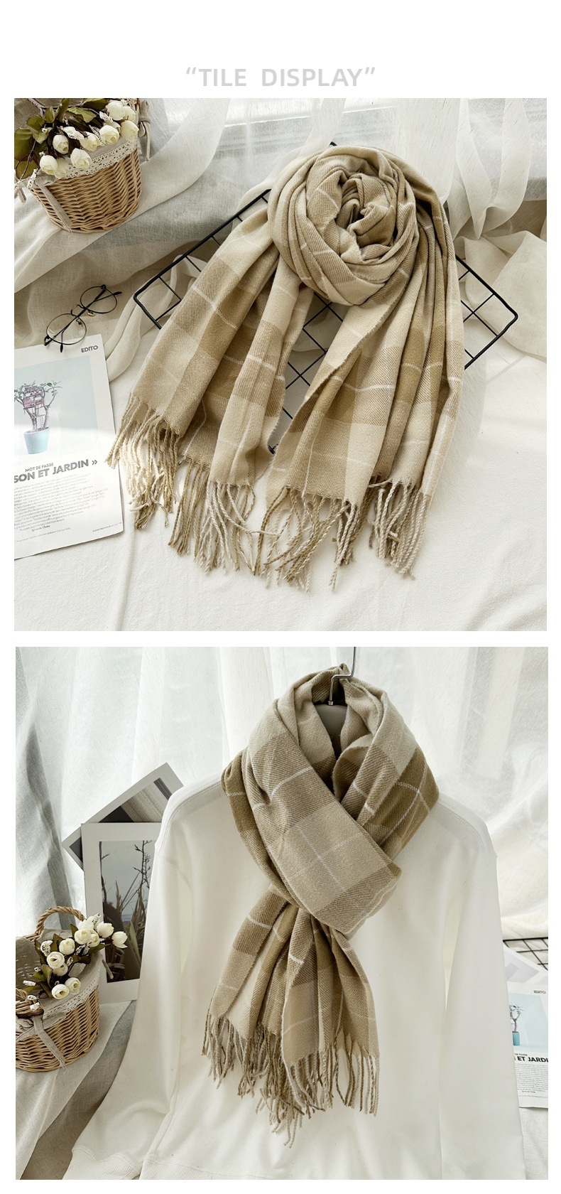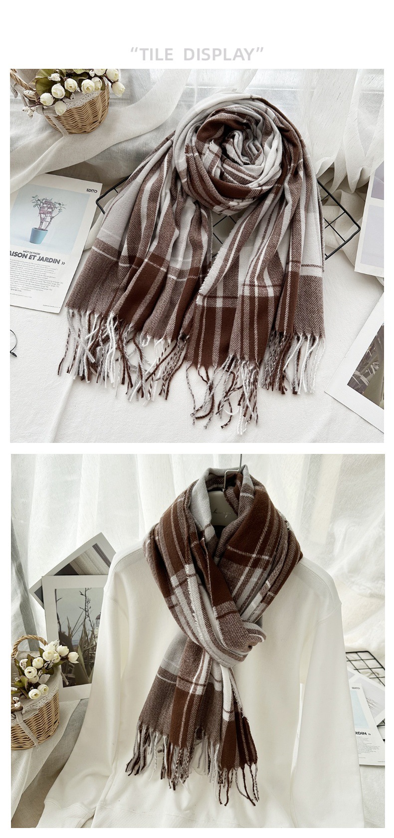 高级感仿羊绒格子围巾冬天爆款跨境定制百搭保暖围脖女士流苏披肩