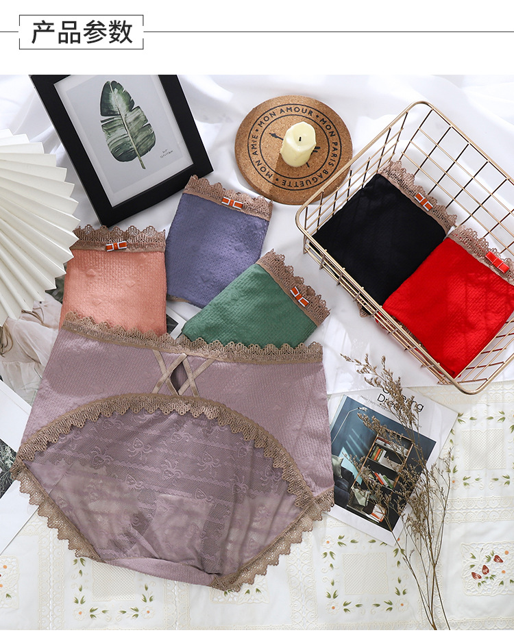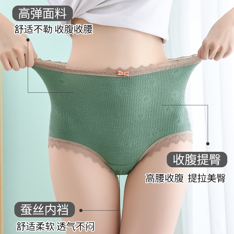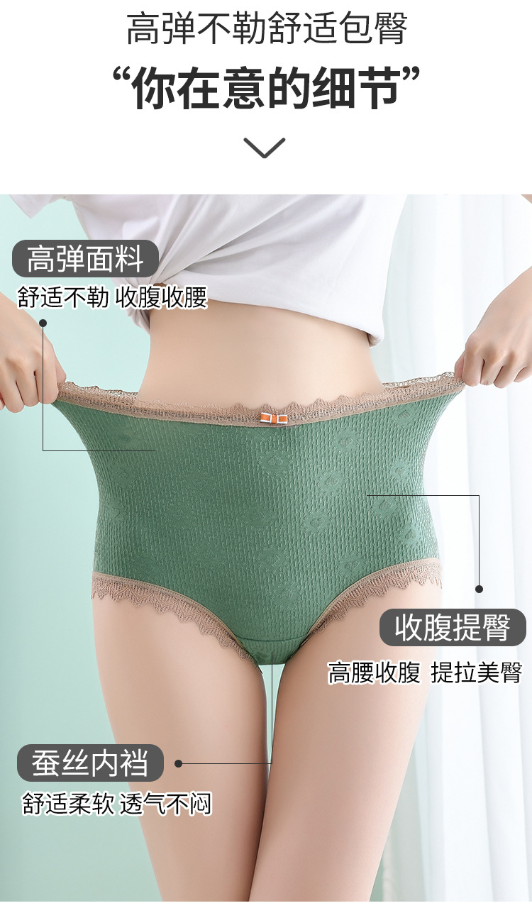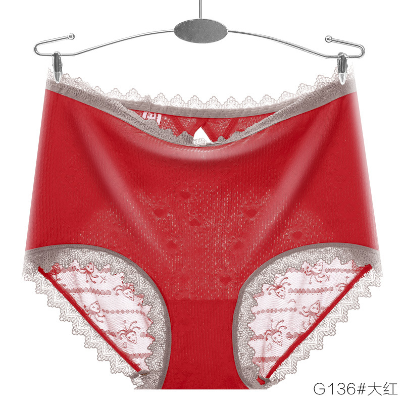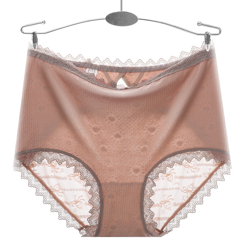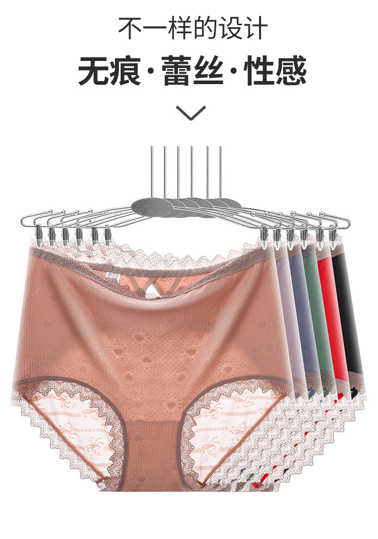 爆款性感大码蕾丝内裤女无痕加大高腰透气网纱蚕桑底裆女士三角裤