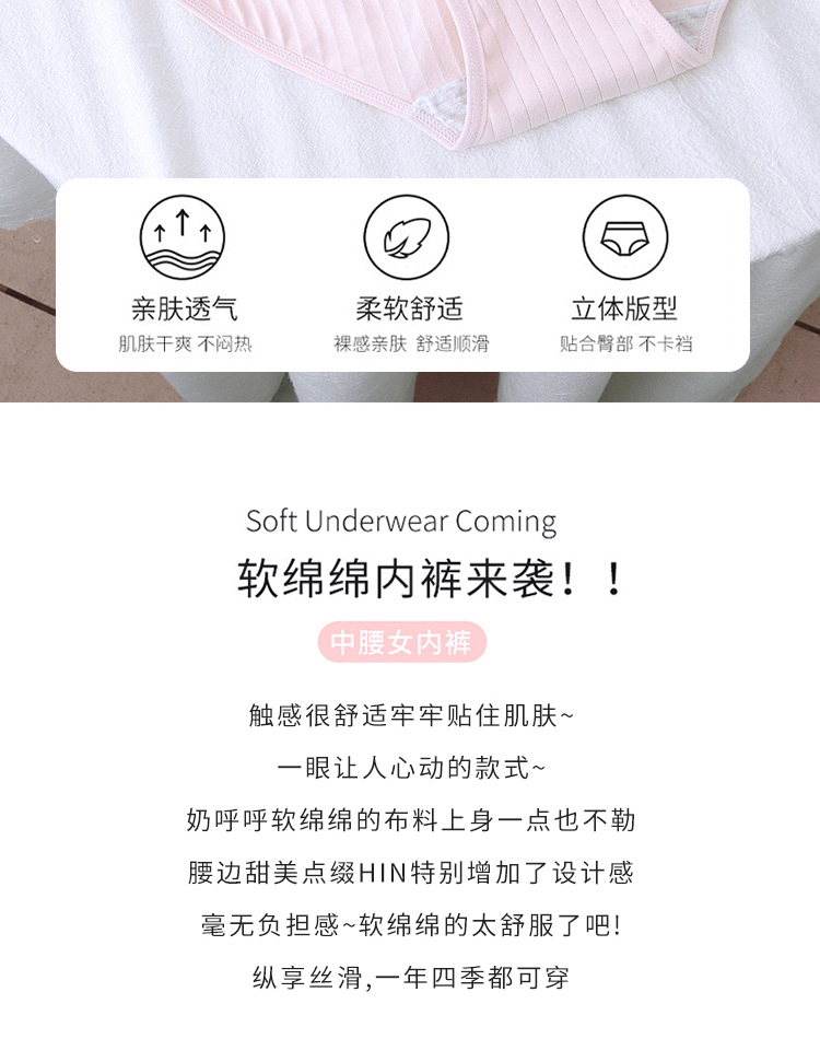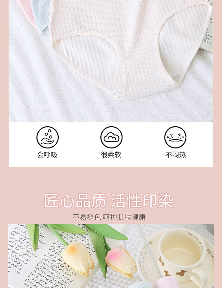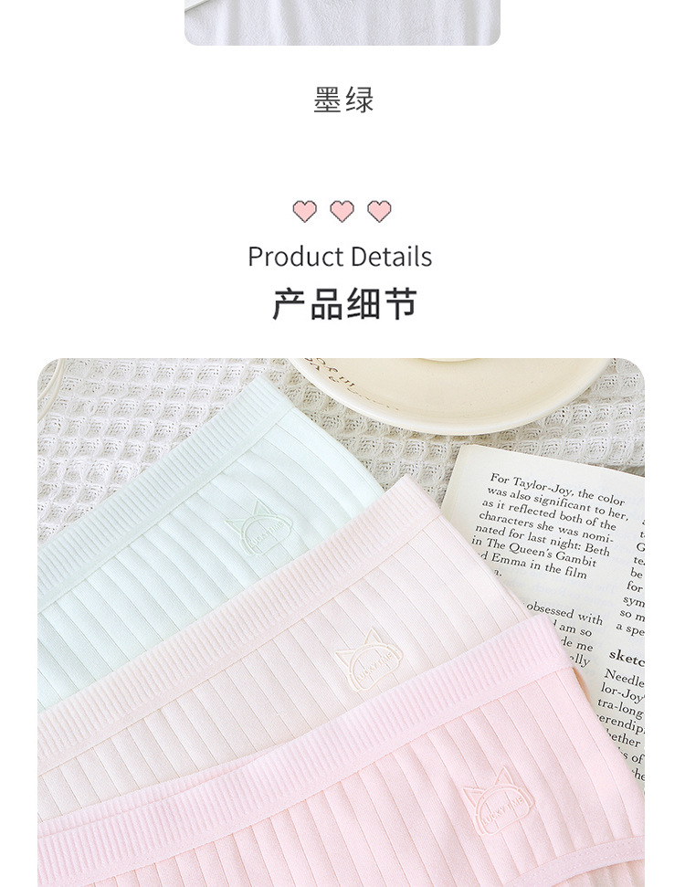 螺纹纯棉印花少女内裤包臀设计纯棉裆部少女可爱糖果色系三角裤