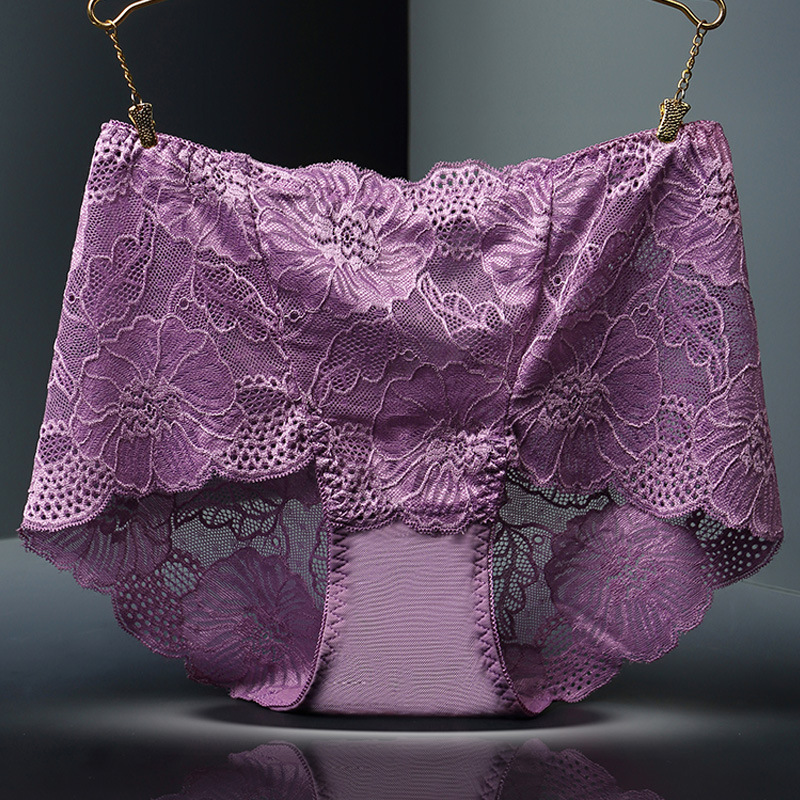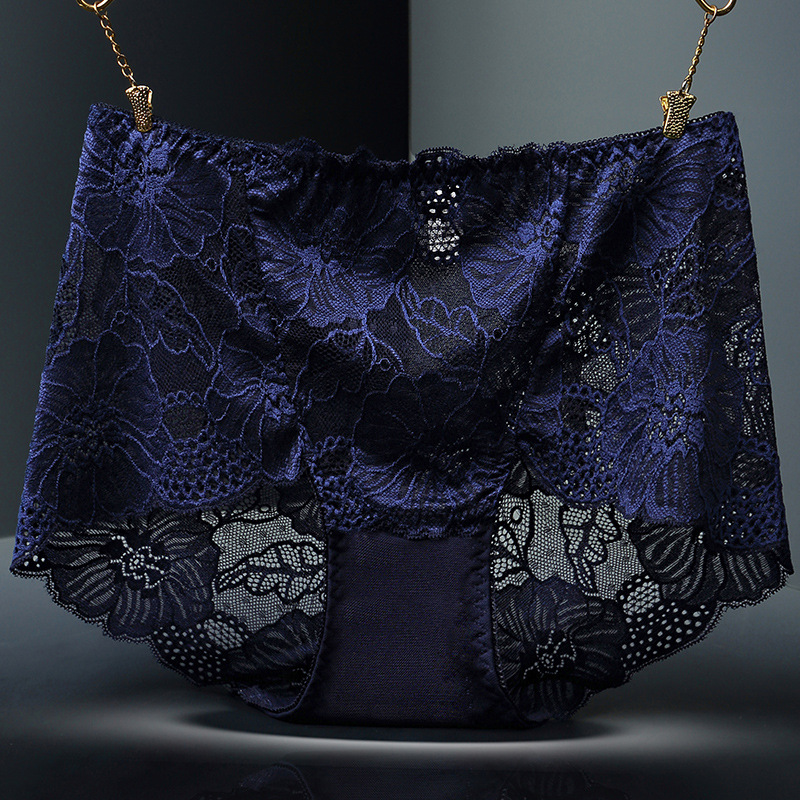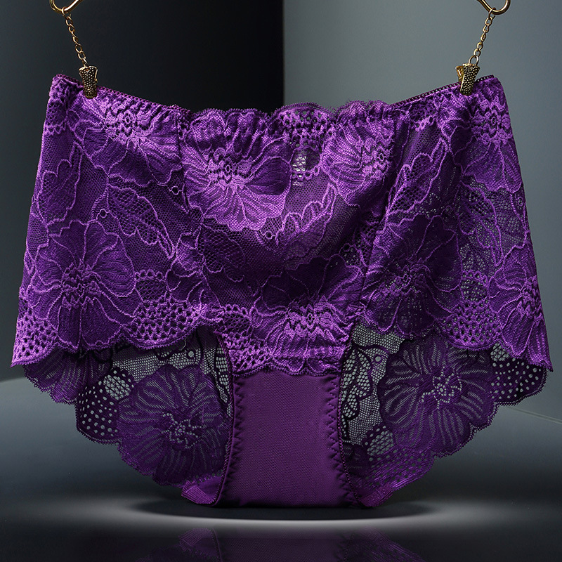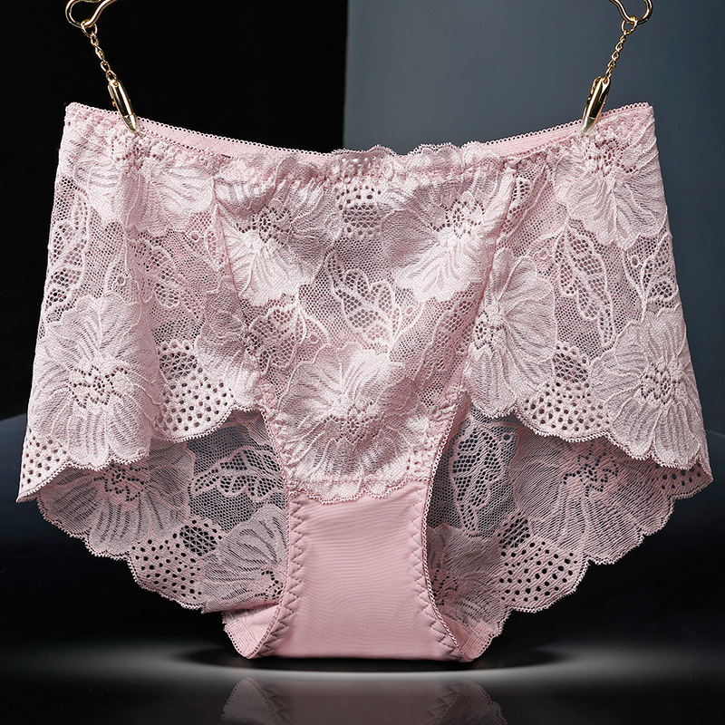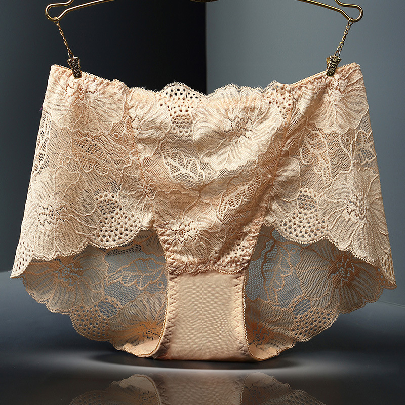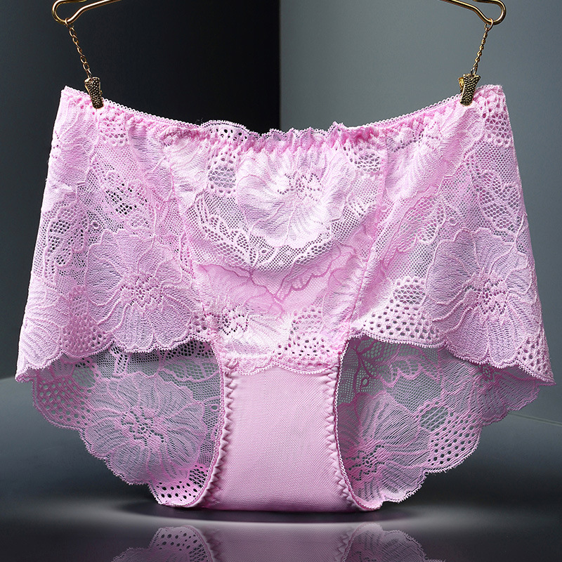 跨境欧美大码女士性感内裤女蕾丝透明裤头无痕诱惑网纱三角裤批发