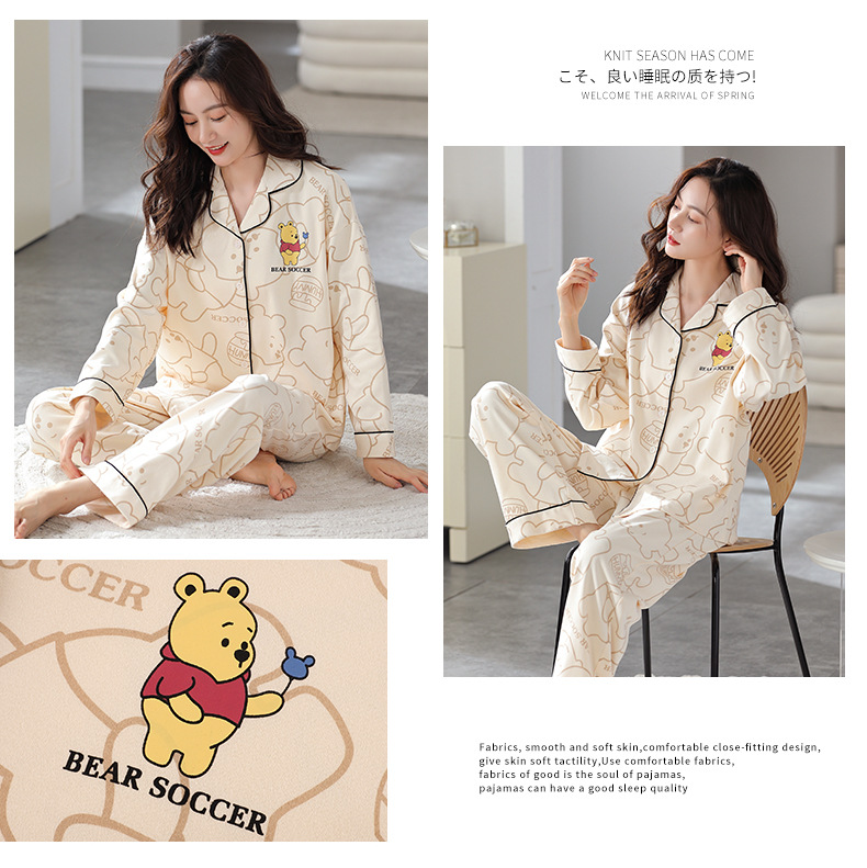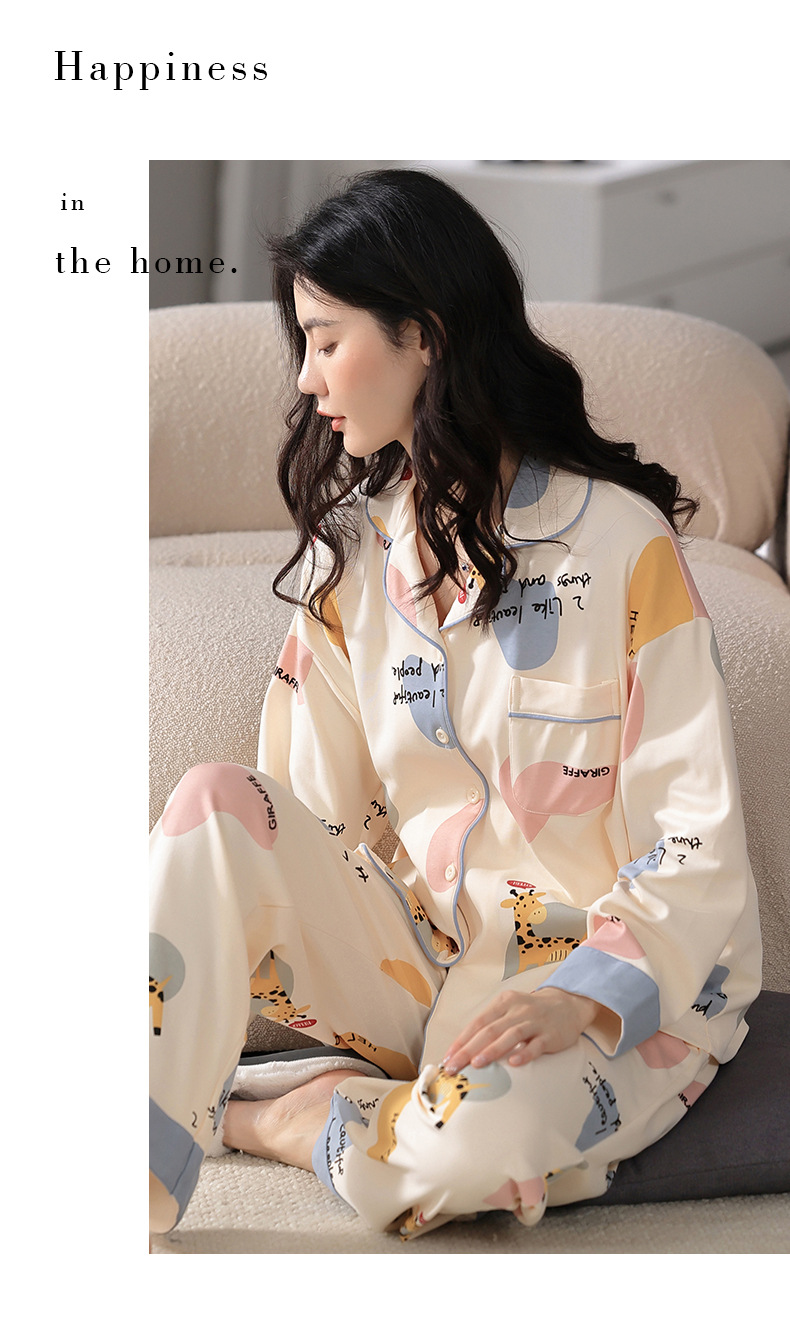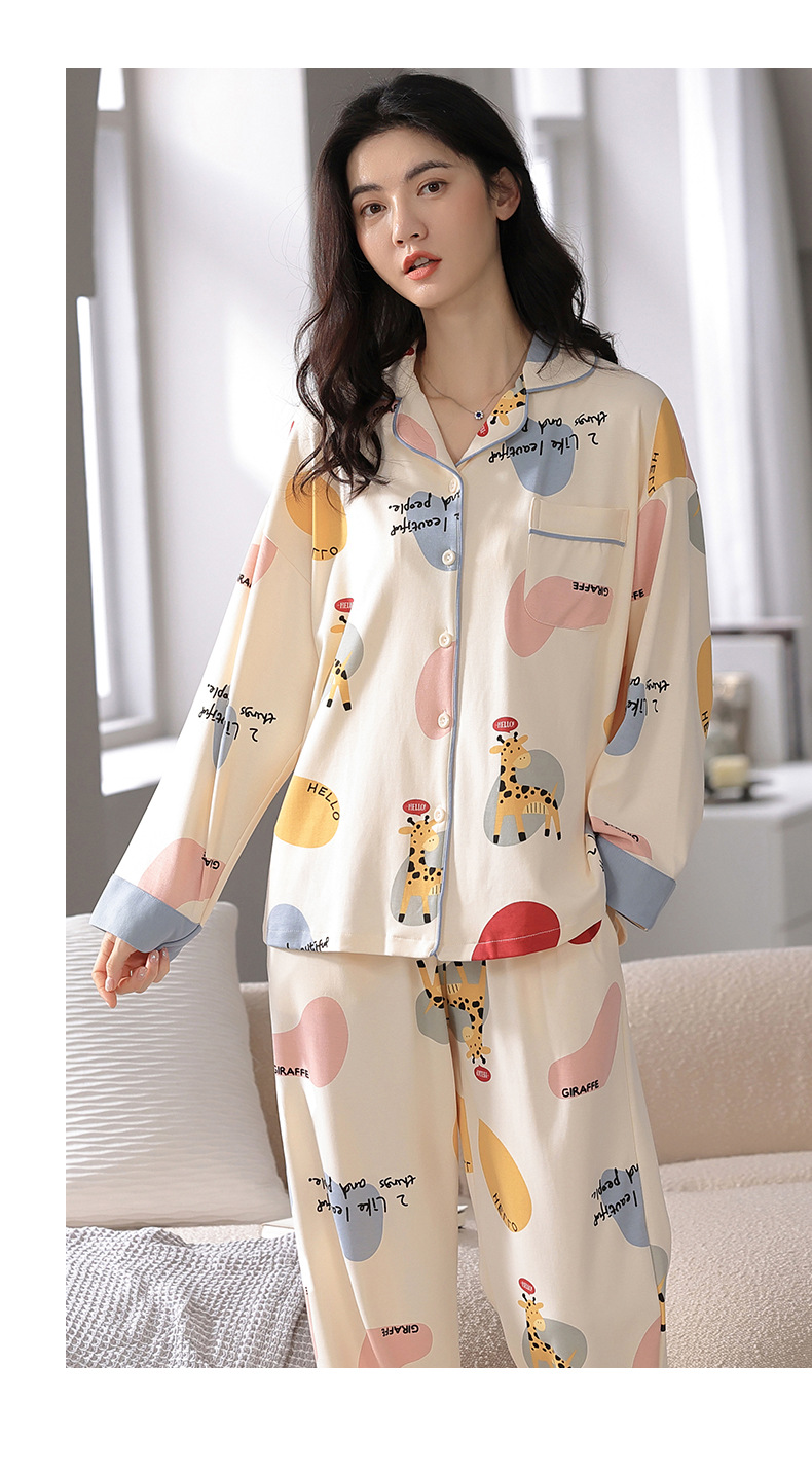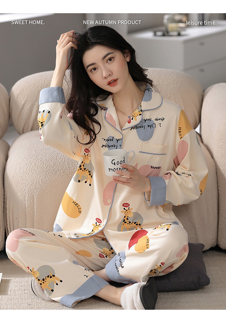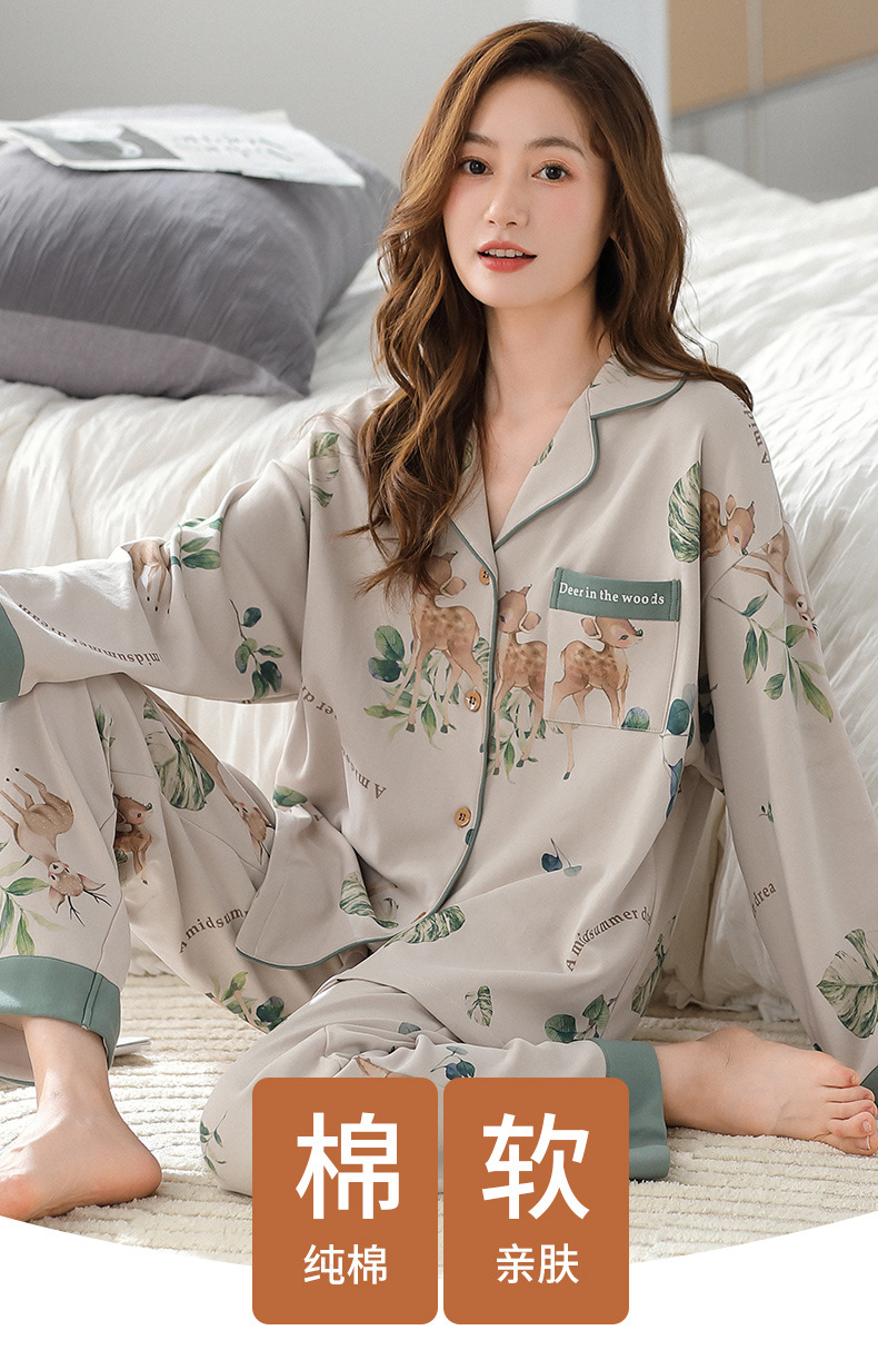 睡衣女纯棉春秋季长袖长裤开衫套装新款卡通秋季时尚可外穿家居服