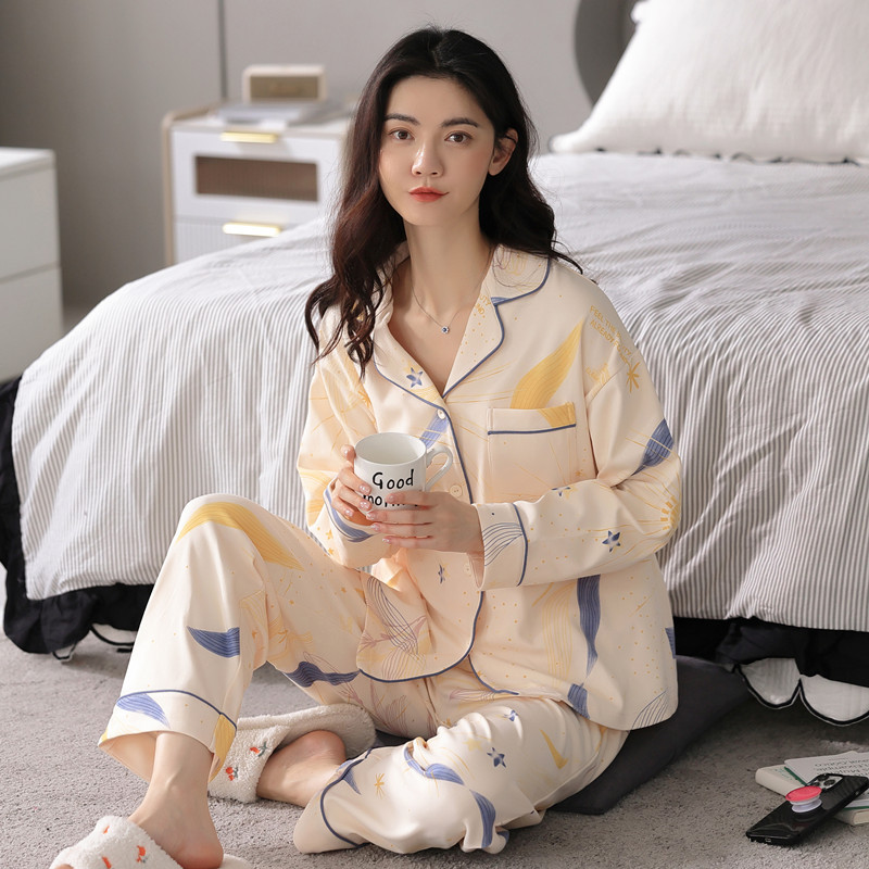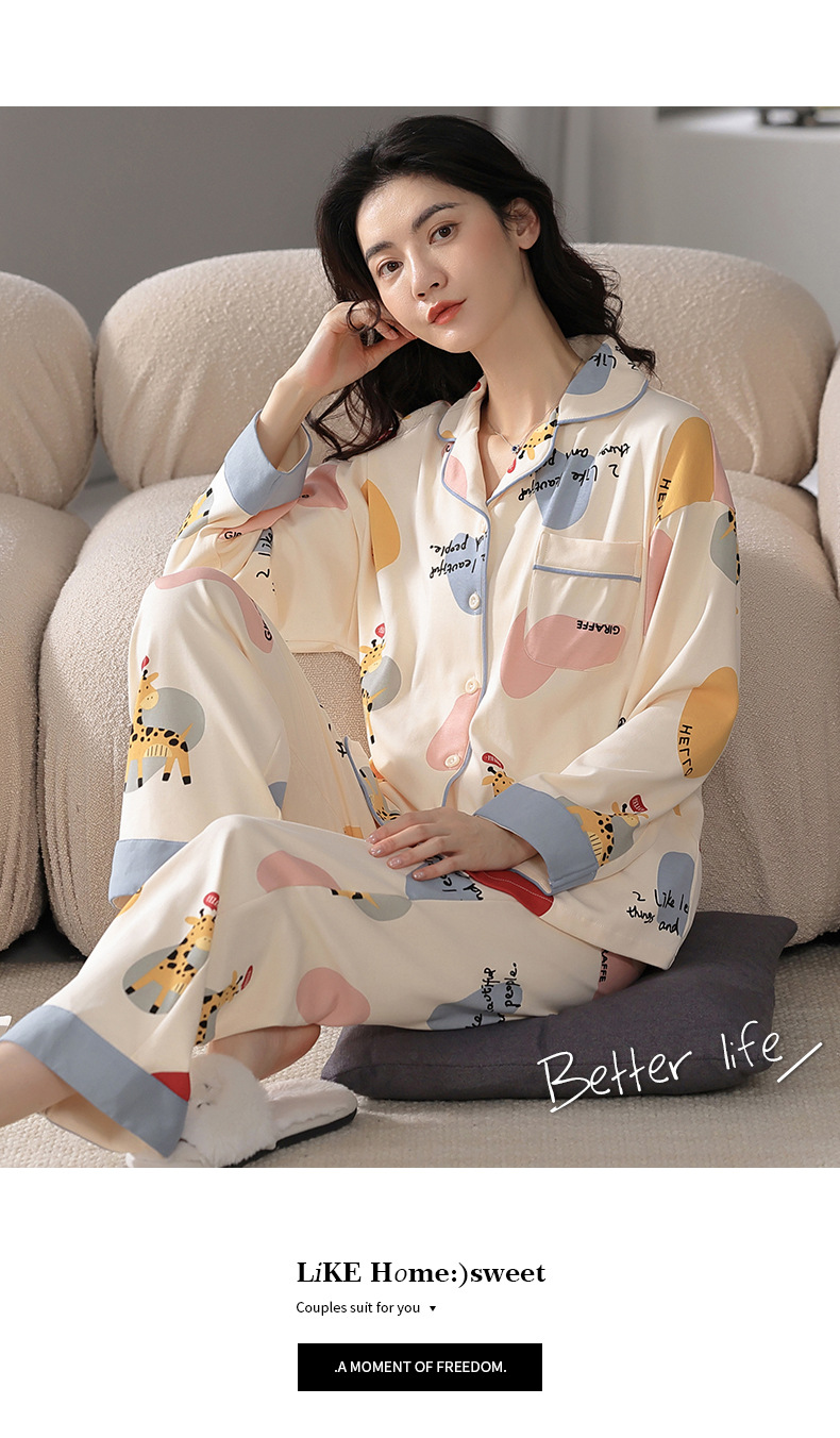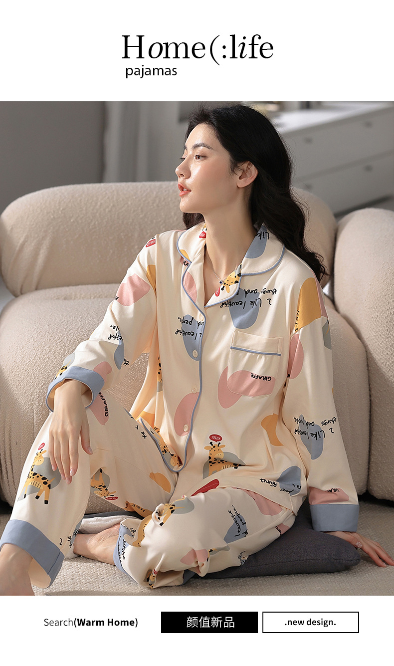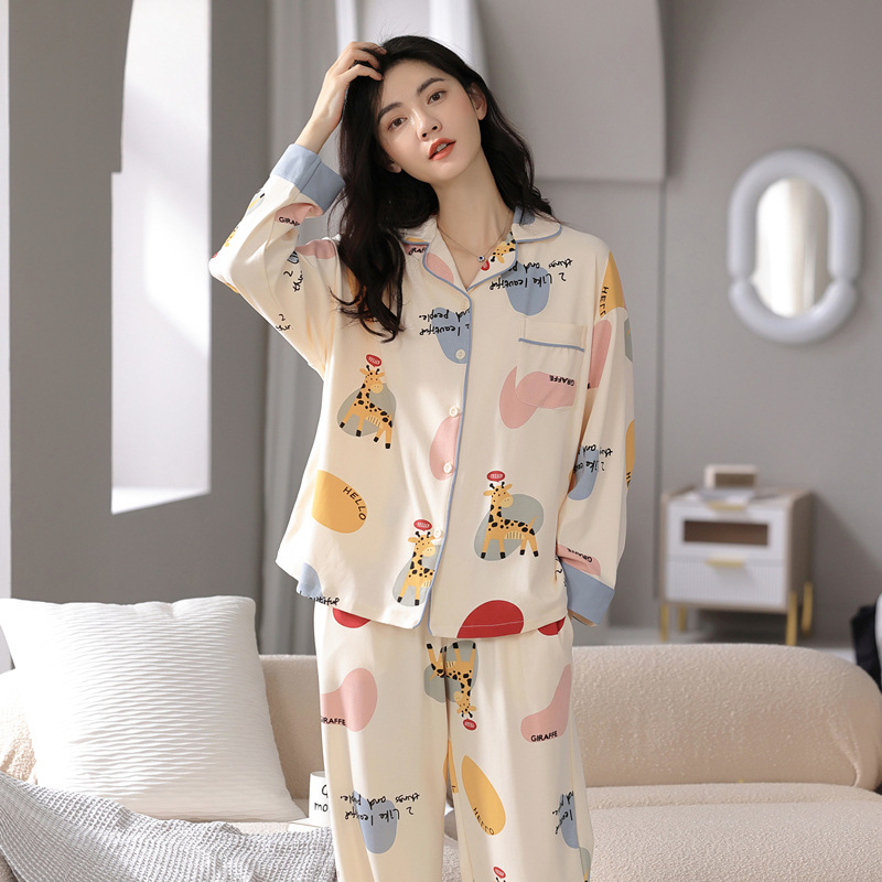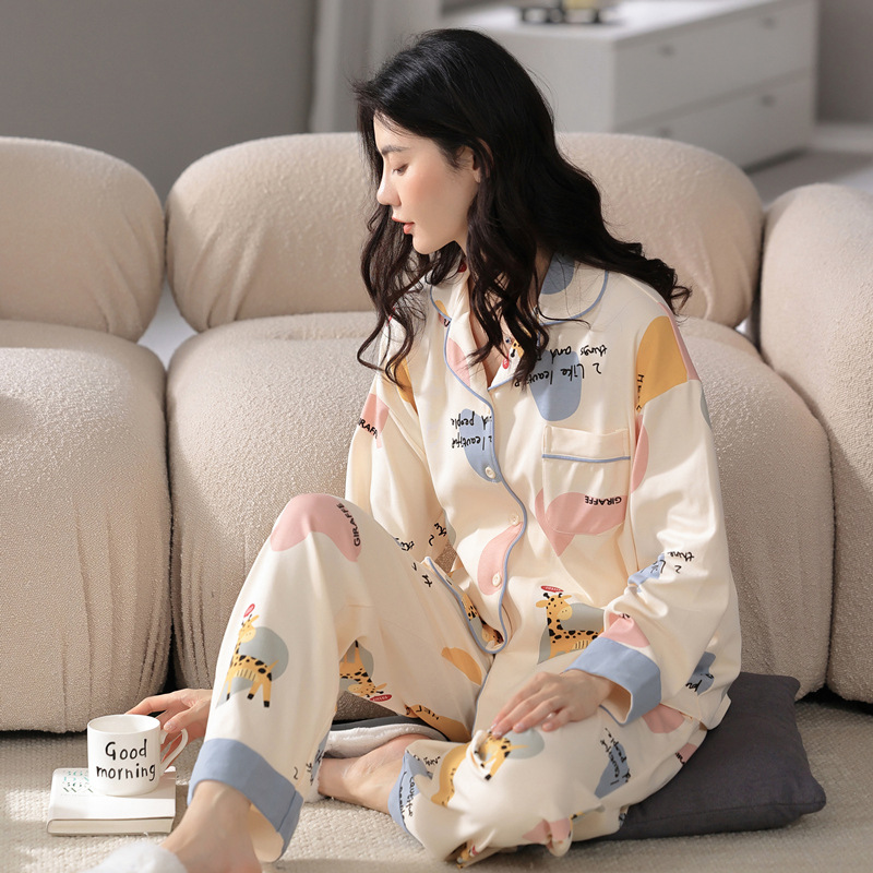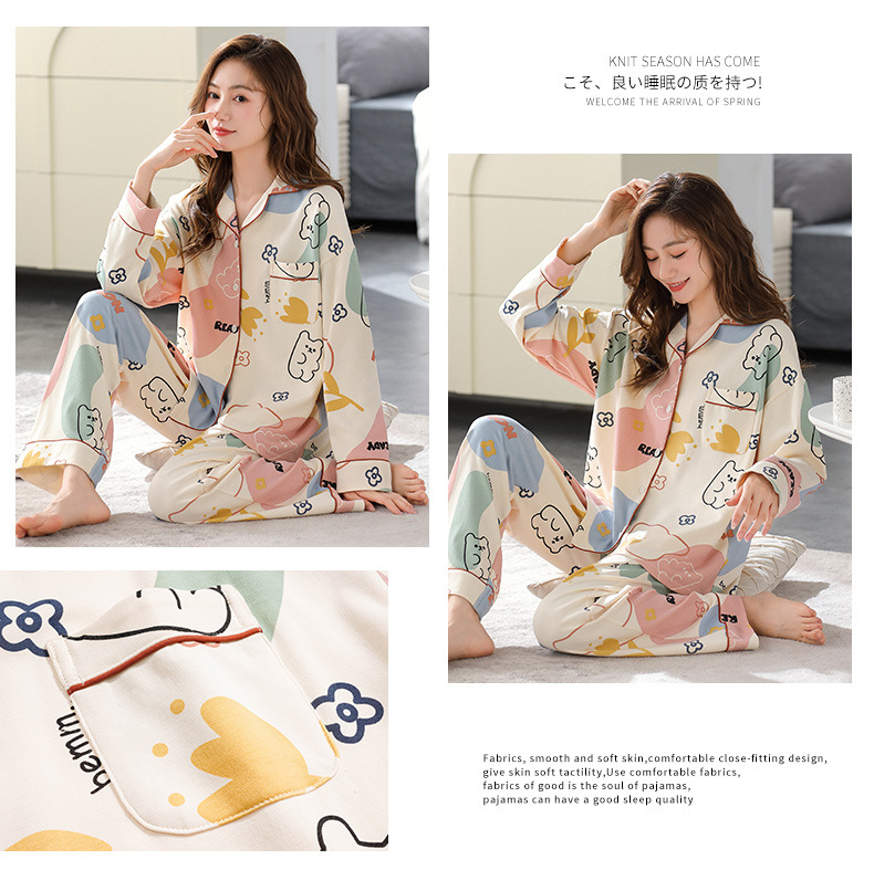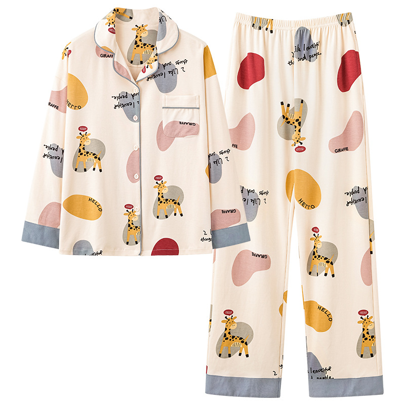 睡衣女纯棉春秋季长袖长裤开衫套装新款卡通秋季时尚可外穿家居服