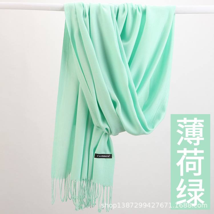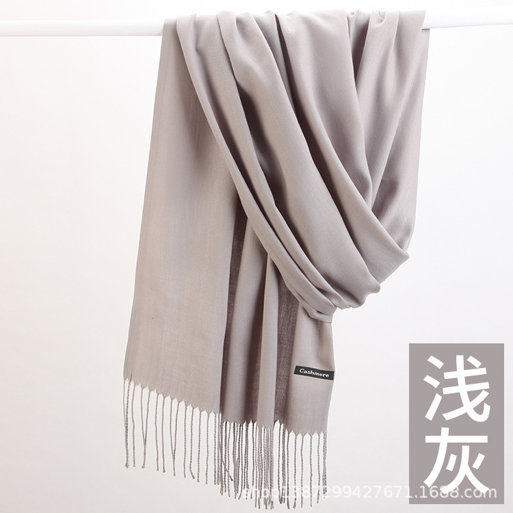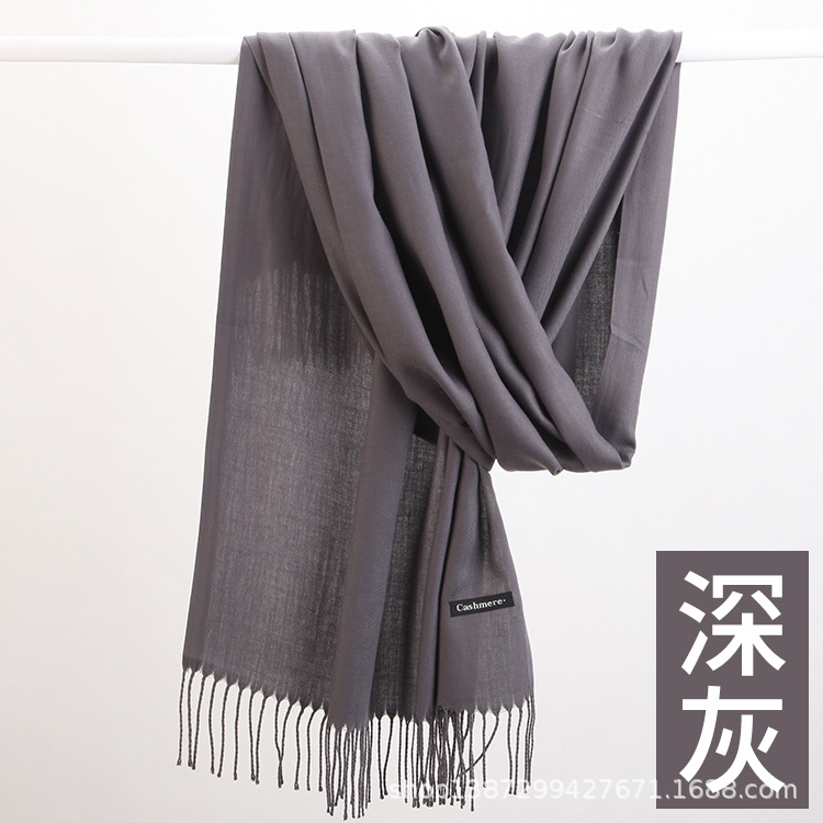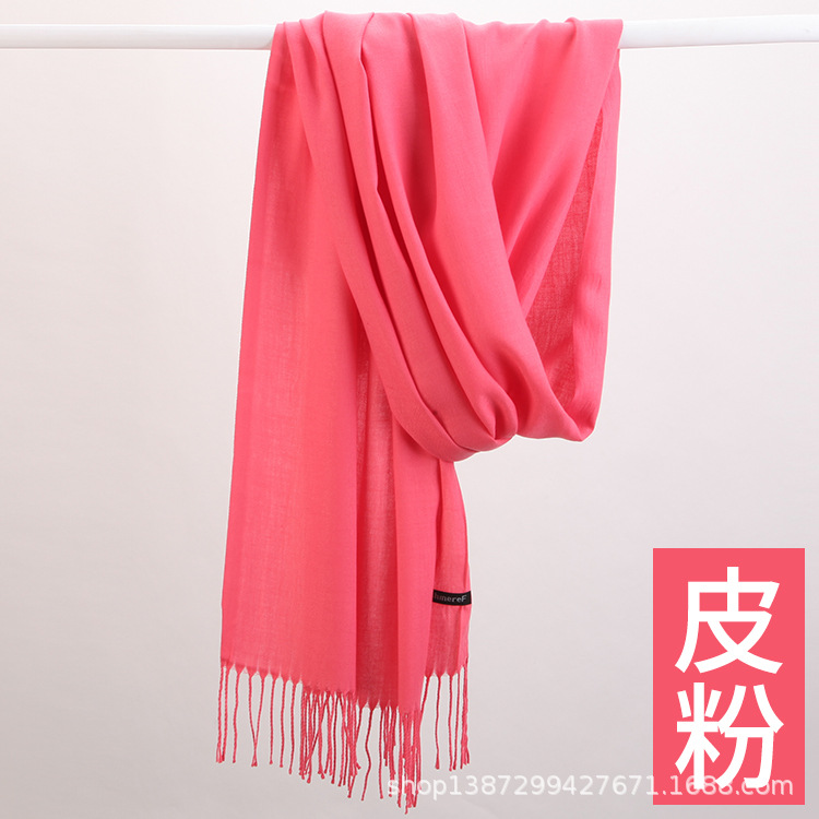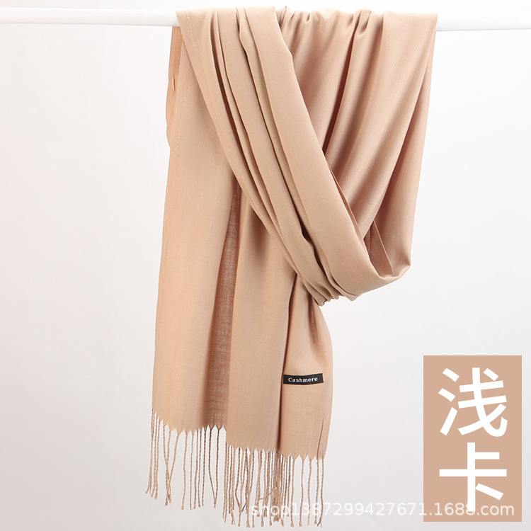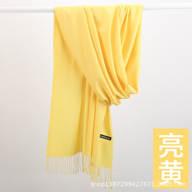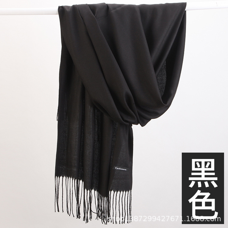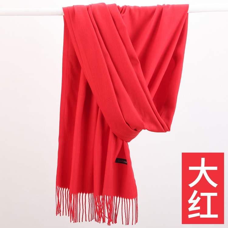 仿羊绒围巾女韩版秋冬保暖纯色年会大红羊绒围巾流苏披肩厂家批发