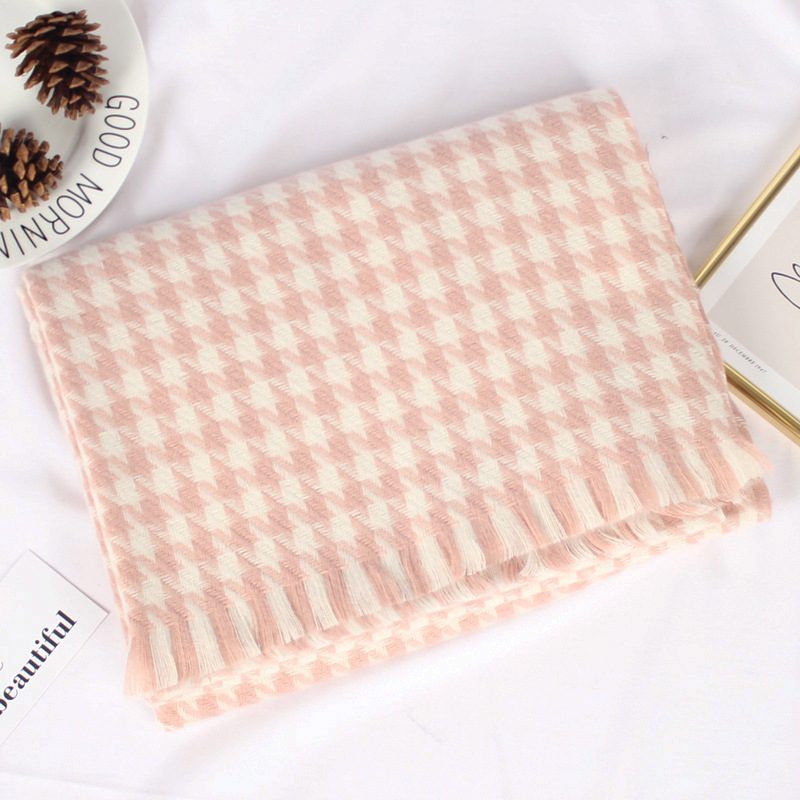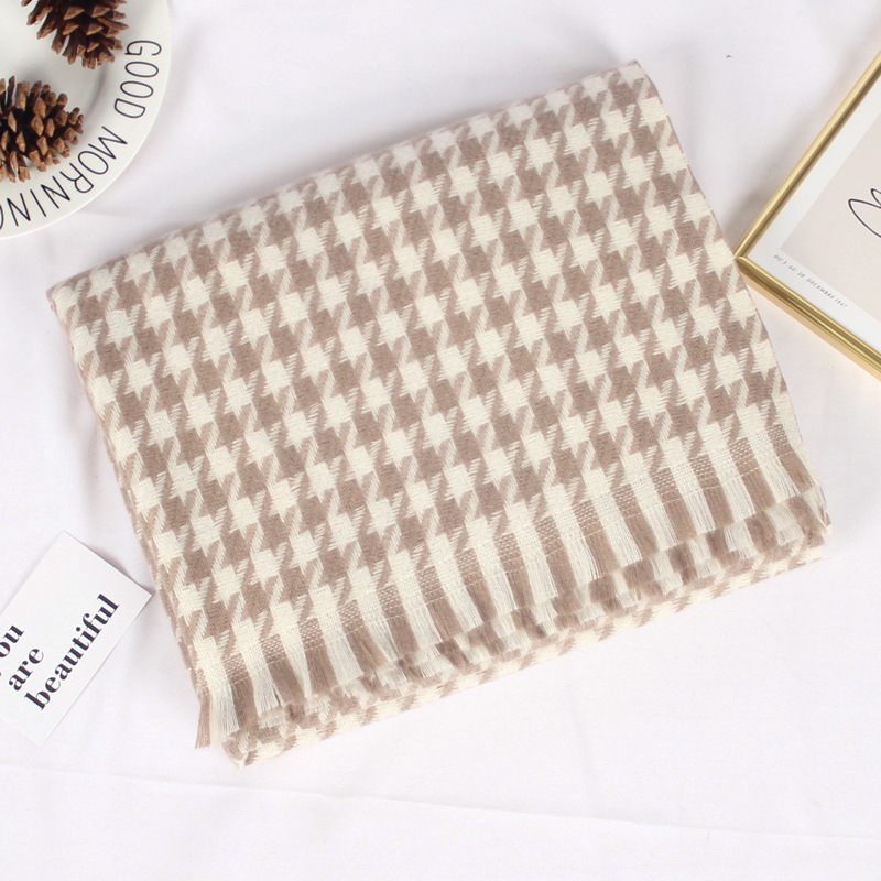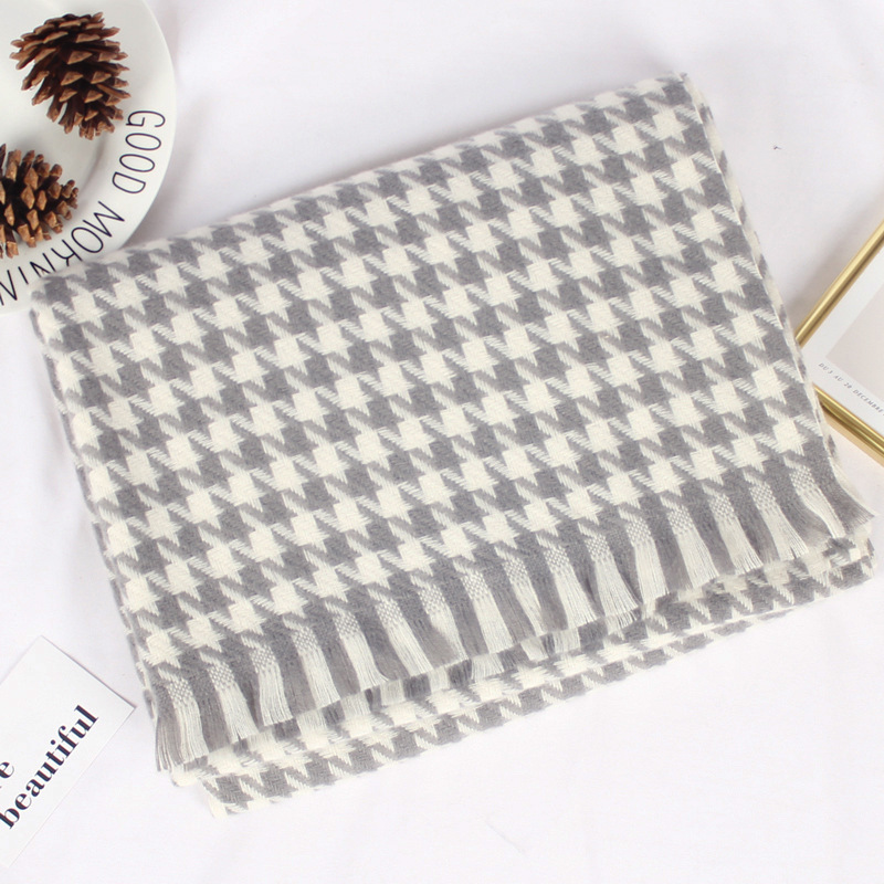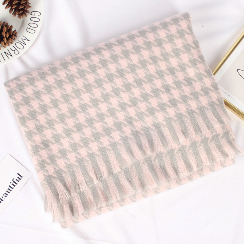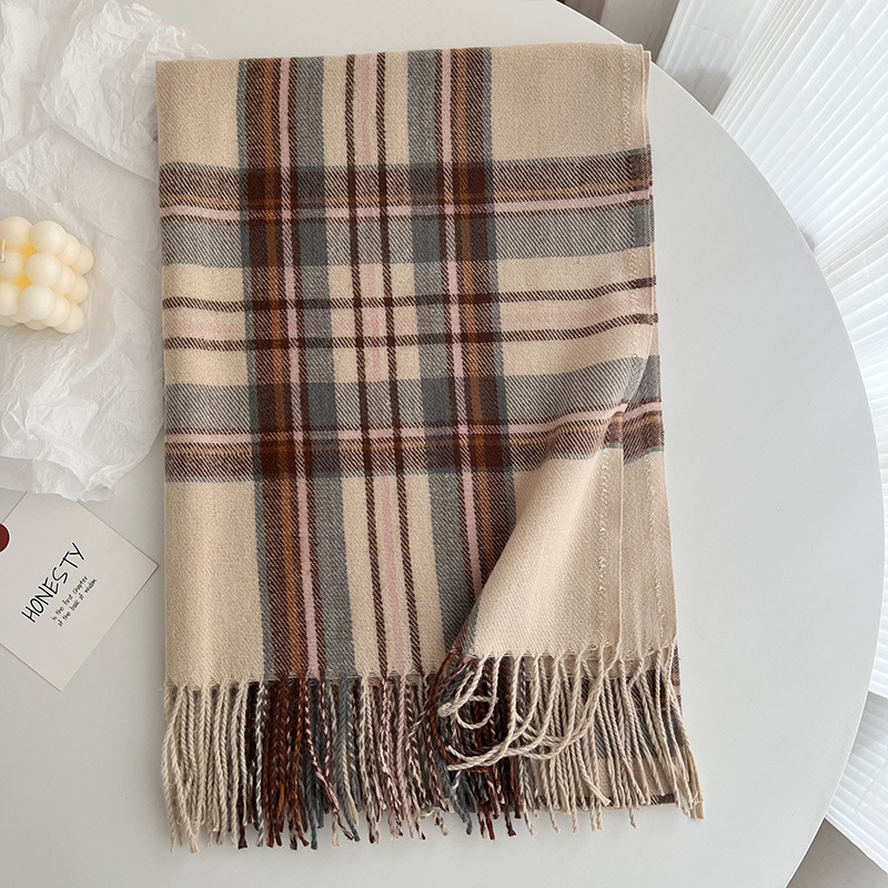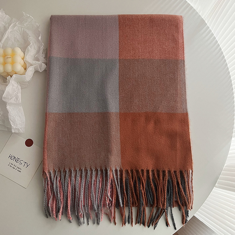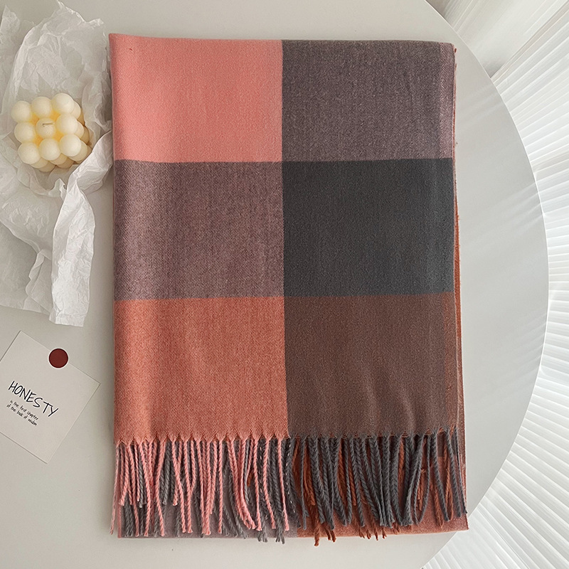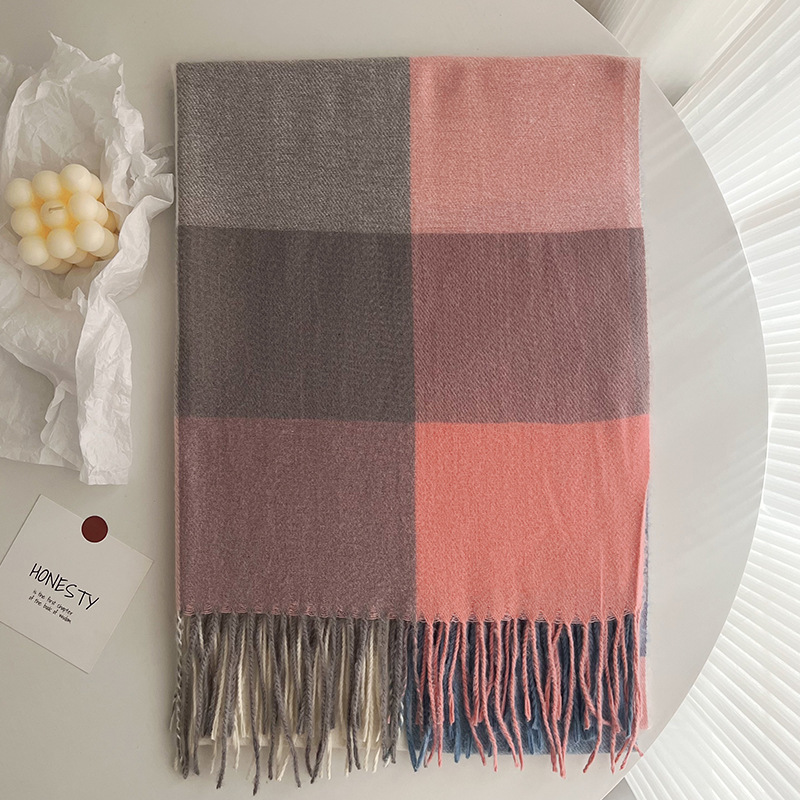 围巾批发新款仿羊绒彩格围巾女跨境韩版秋冬格子围巾流苏披肩围脖