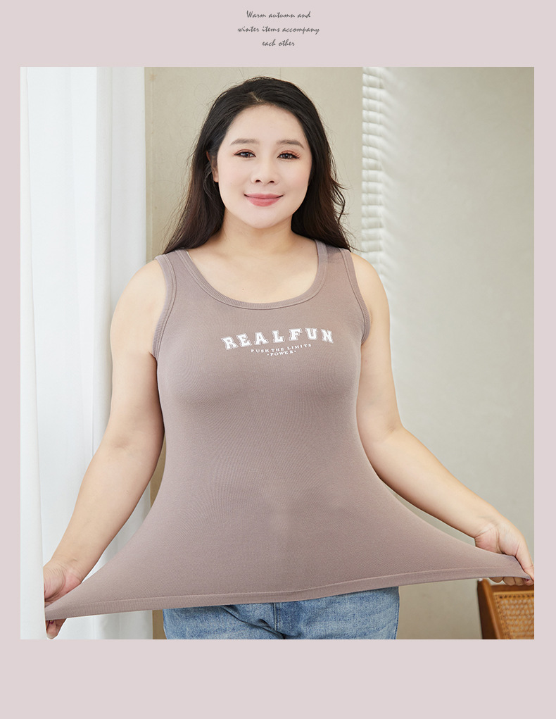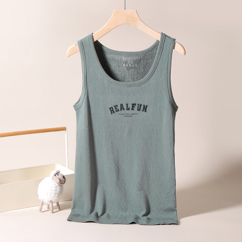 秋冬日系纯色圆领保暖背心 女士修身加绒加厚复合柔软圆领打底衫