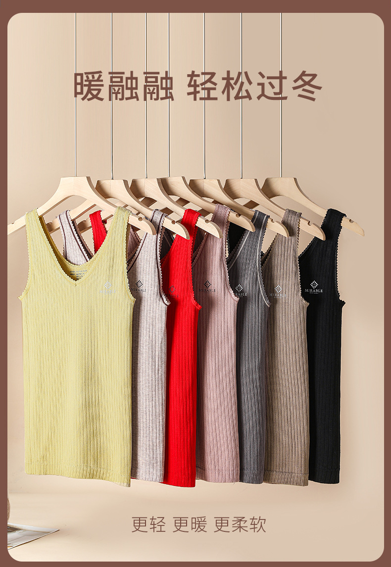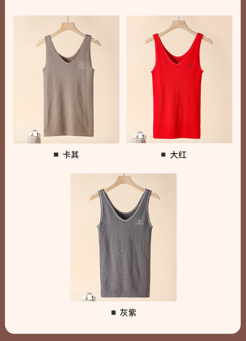 保暖内衣女2023秋冬新款女士保暖背心秋衣女上衣前后低领毛圈背心
