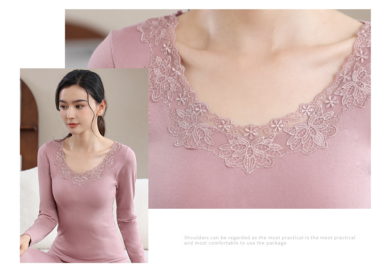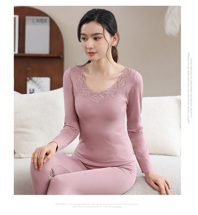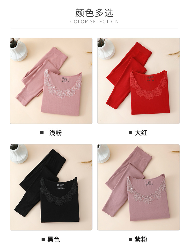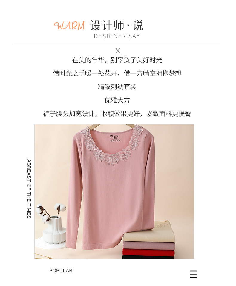 女士无缝套装美体内衣秋衣秋裤套装净色光板刺绣保暖套装秋冬打底