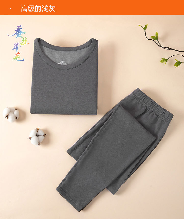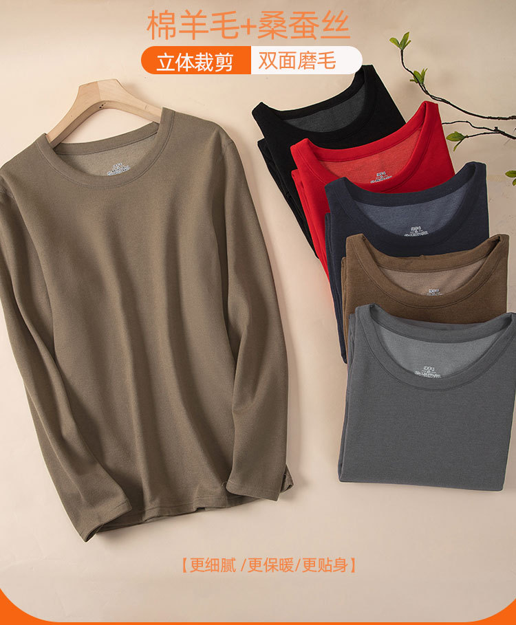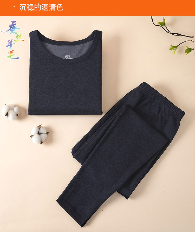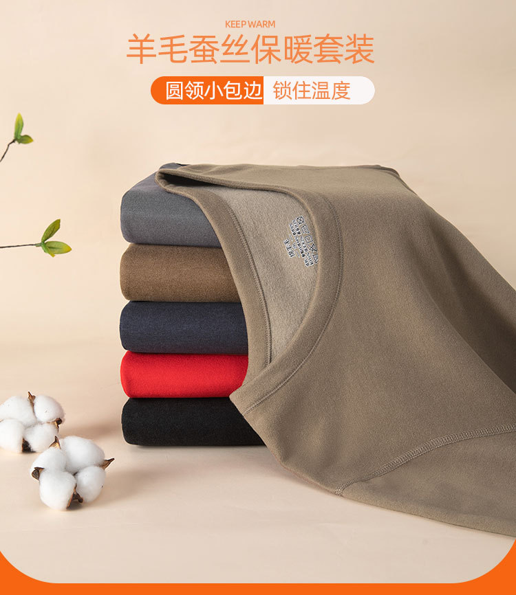 秋冬新品羊毛蚕丝套装男士保暖内衣套装长袖秋衣秋裤套装磨毛打底